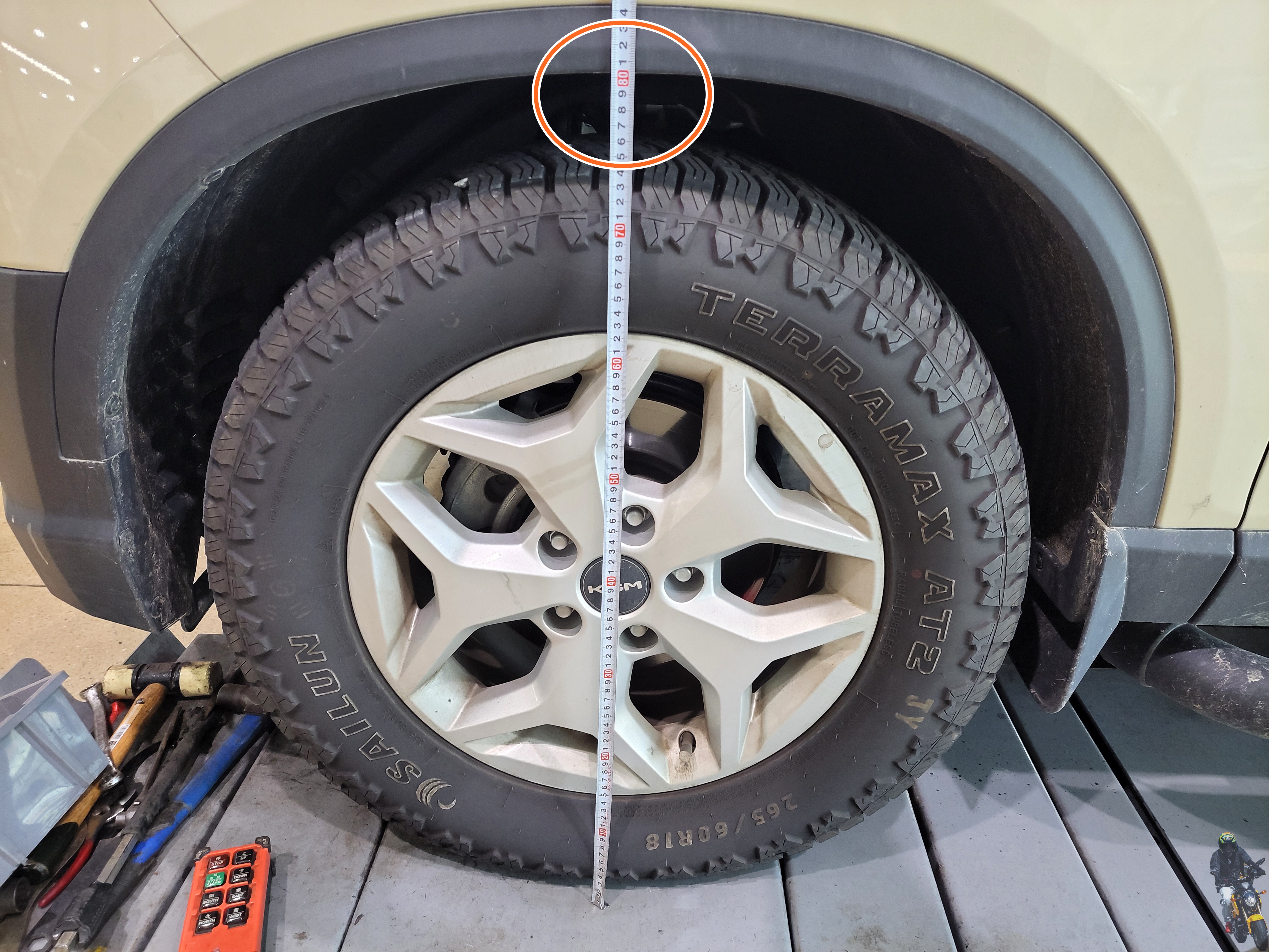 쇼바 쪽에 마커펜으로 표시를 해두었습니다