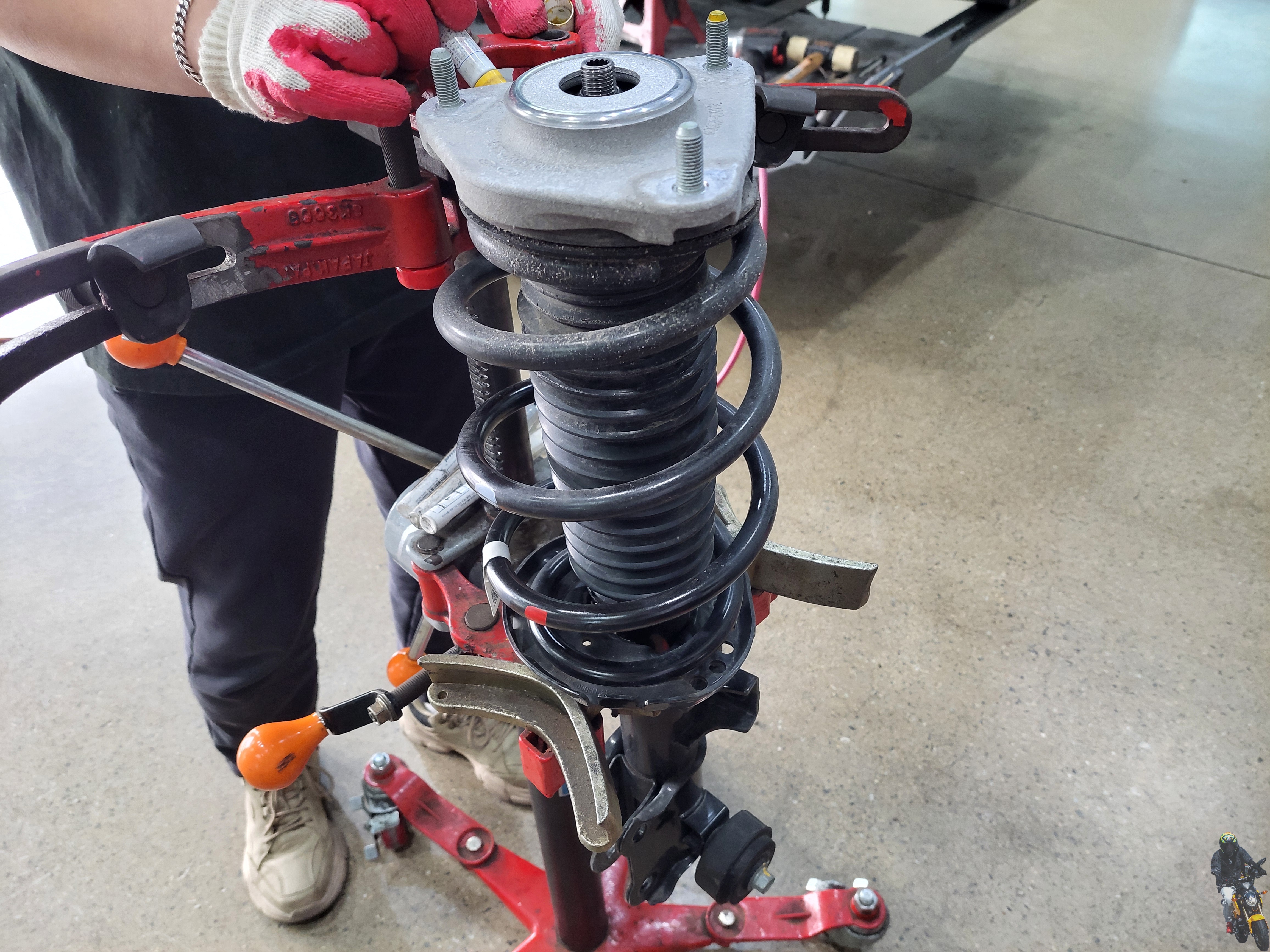 프런트 순정 쇼바스프링을 스프링 압축기에 고정을 하고