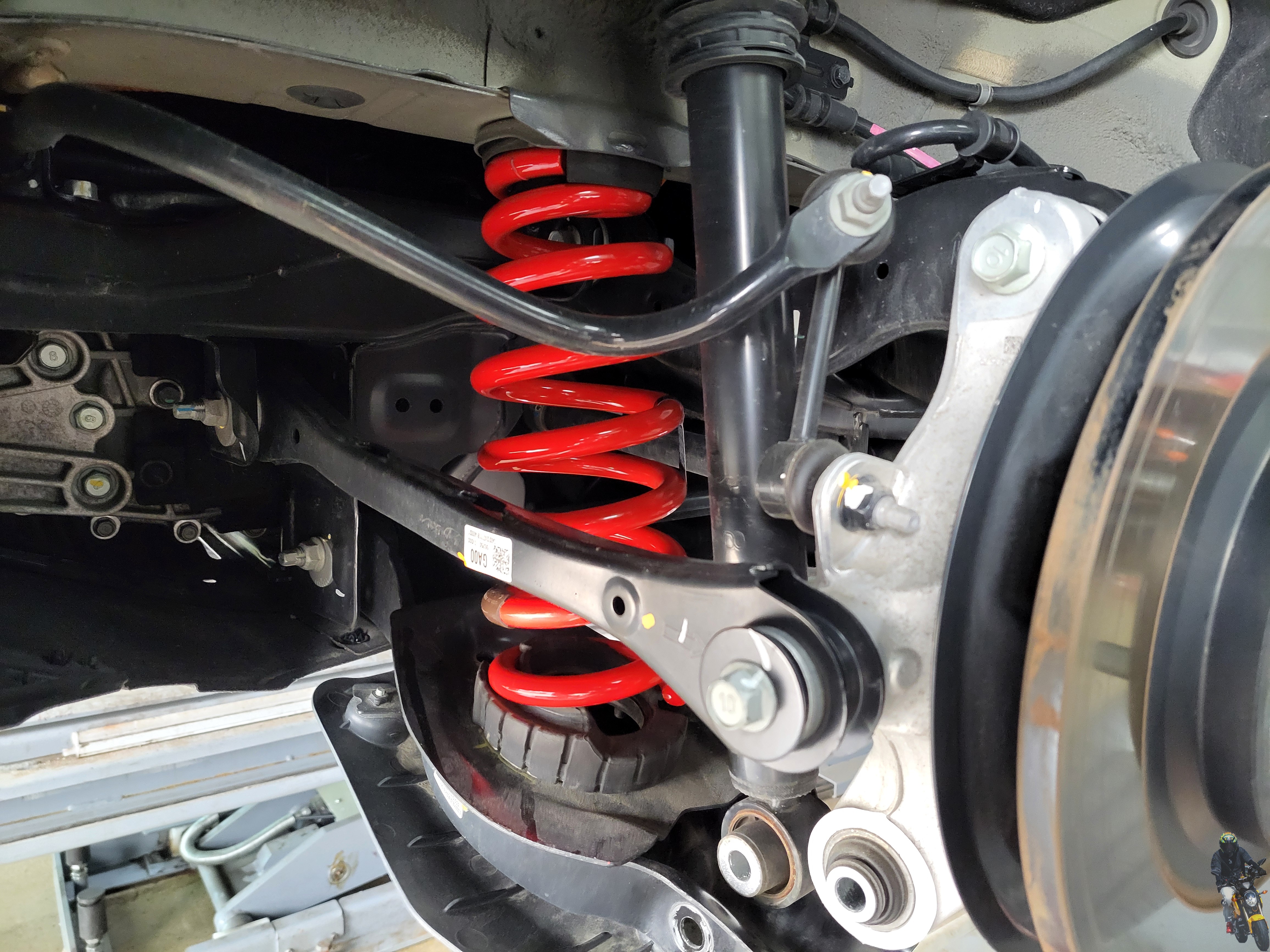 프런트 순정쇼바에 스톰다운스프링을 조립하고 차량에 장착하였습니다