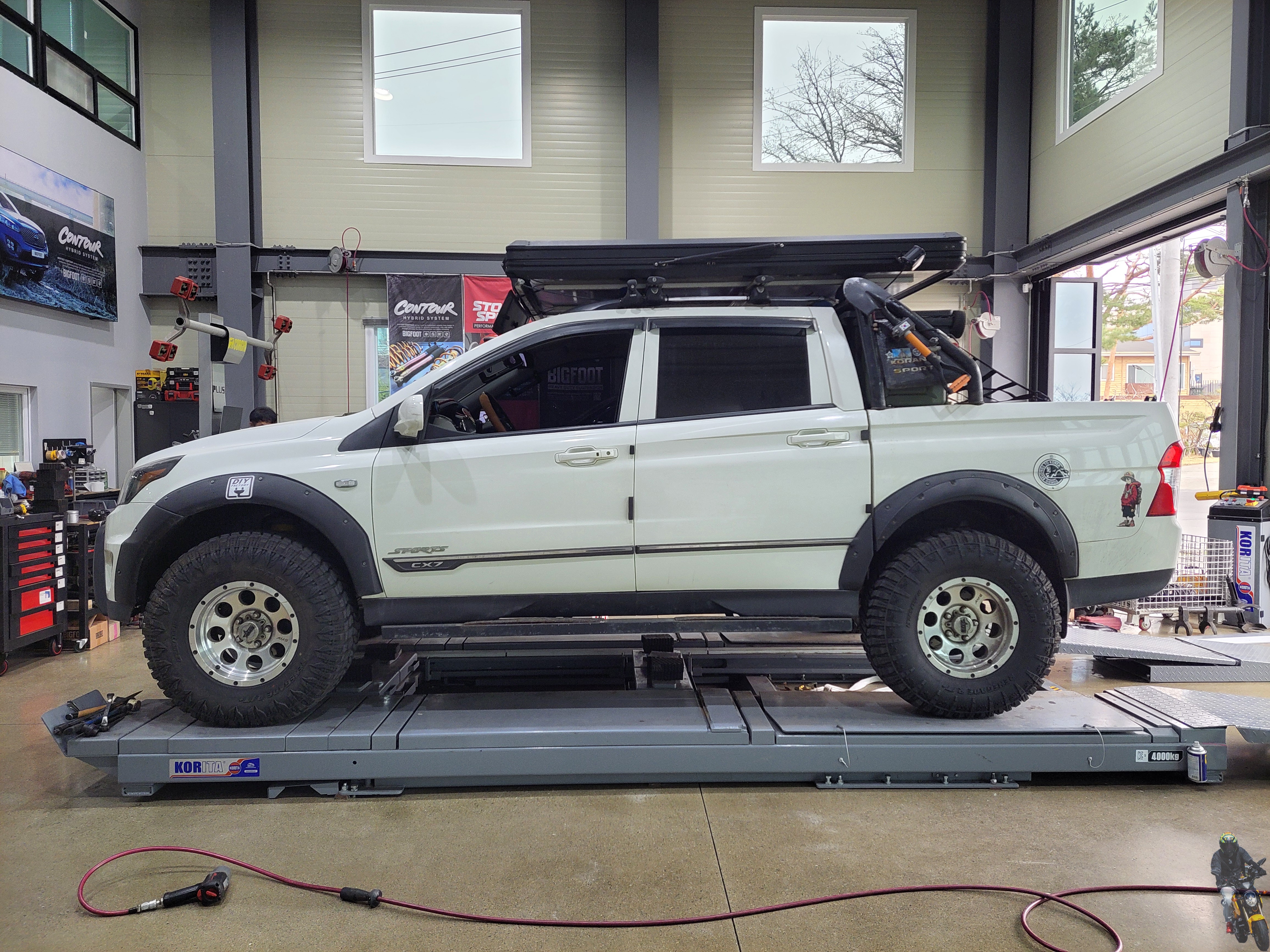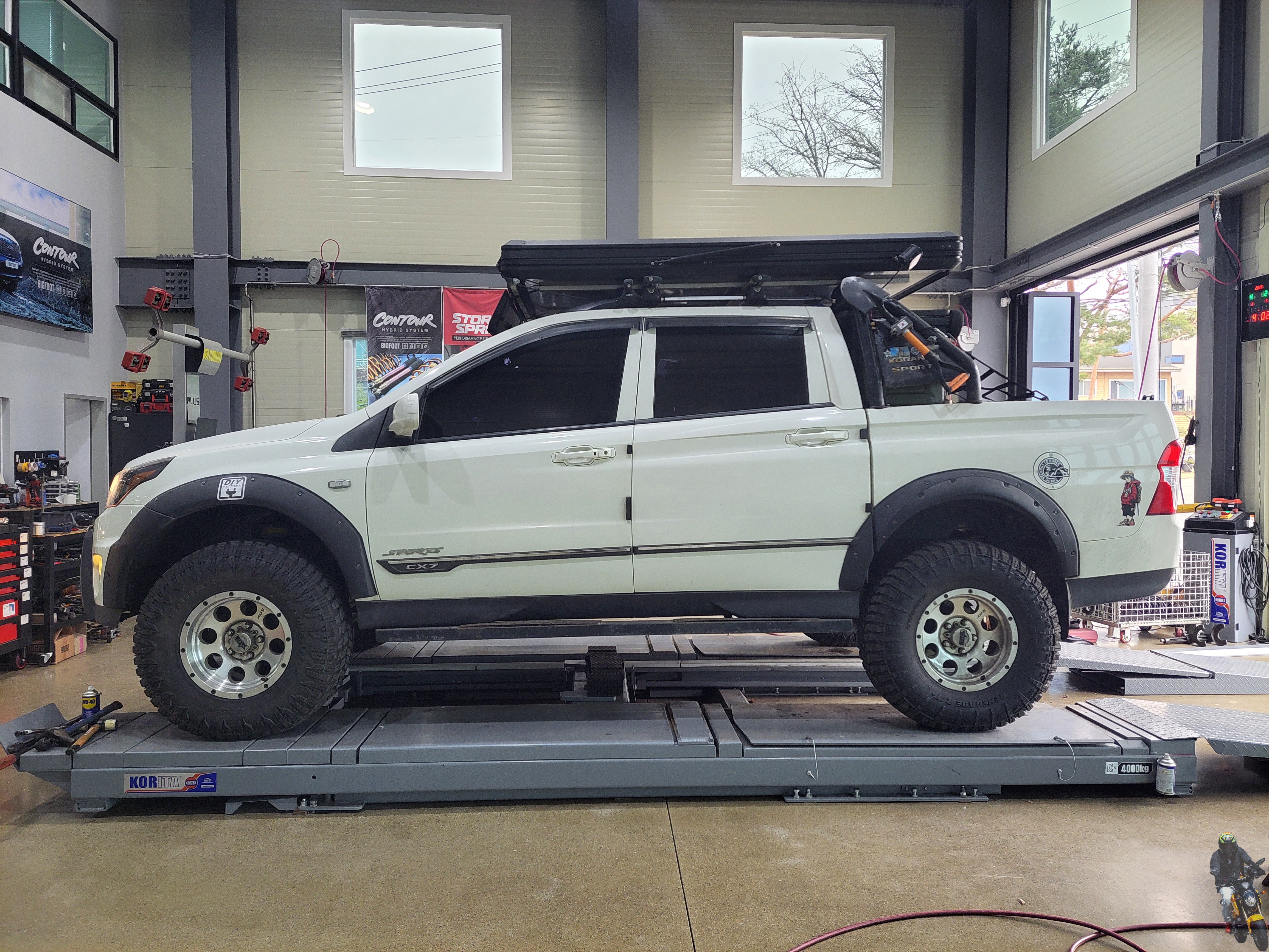 쌍용 코란도스포츠 차량은 이미 AT타이어에 리프트업 튜닝이 되어