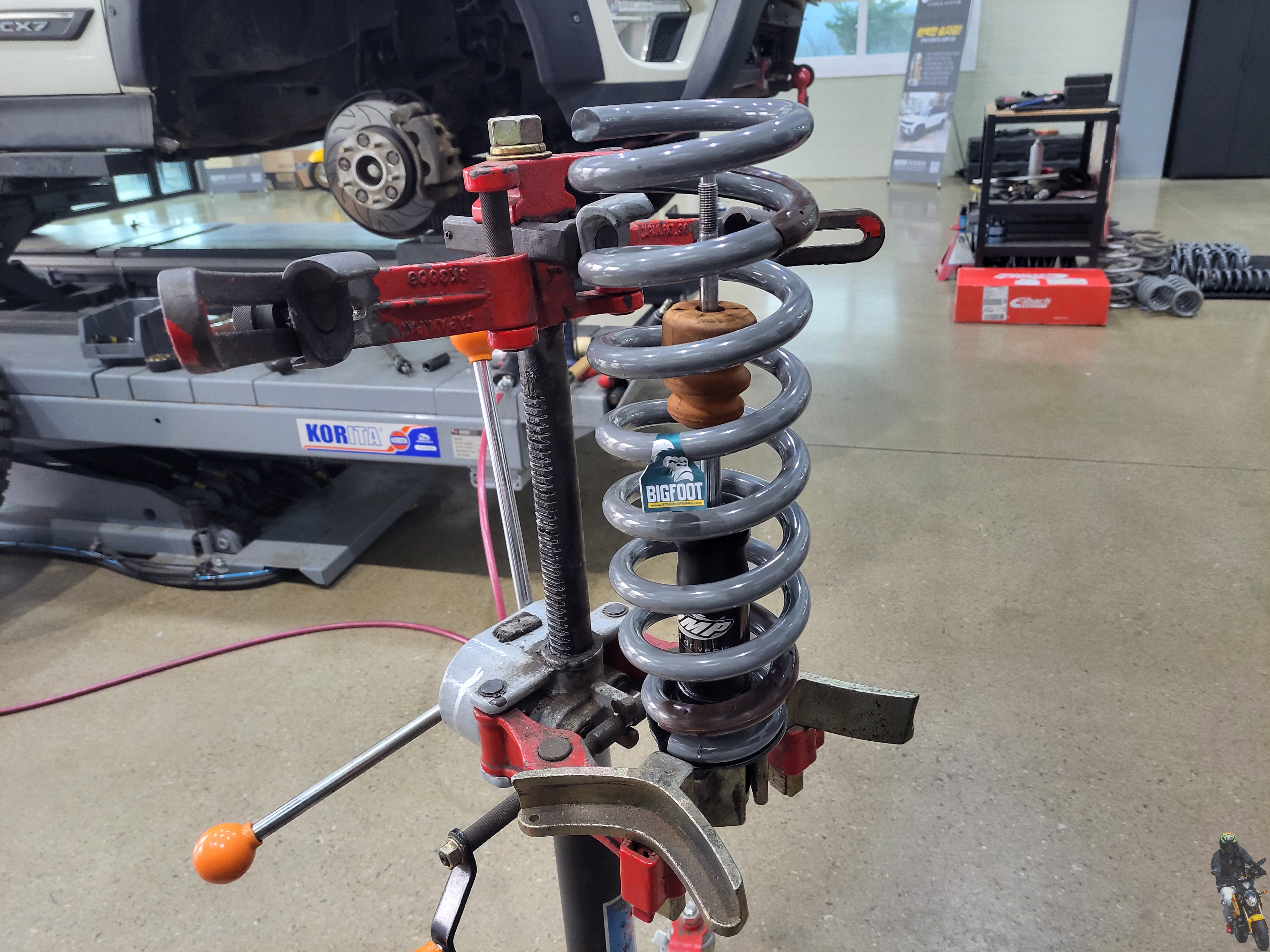 차주분께서 구매해 오신 프로콤프 쇼바와 같이 스프링 압축기에