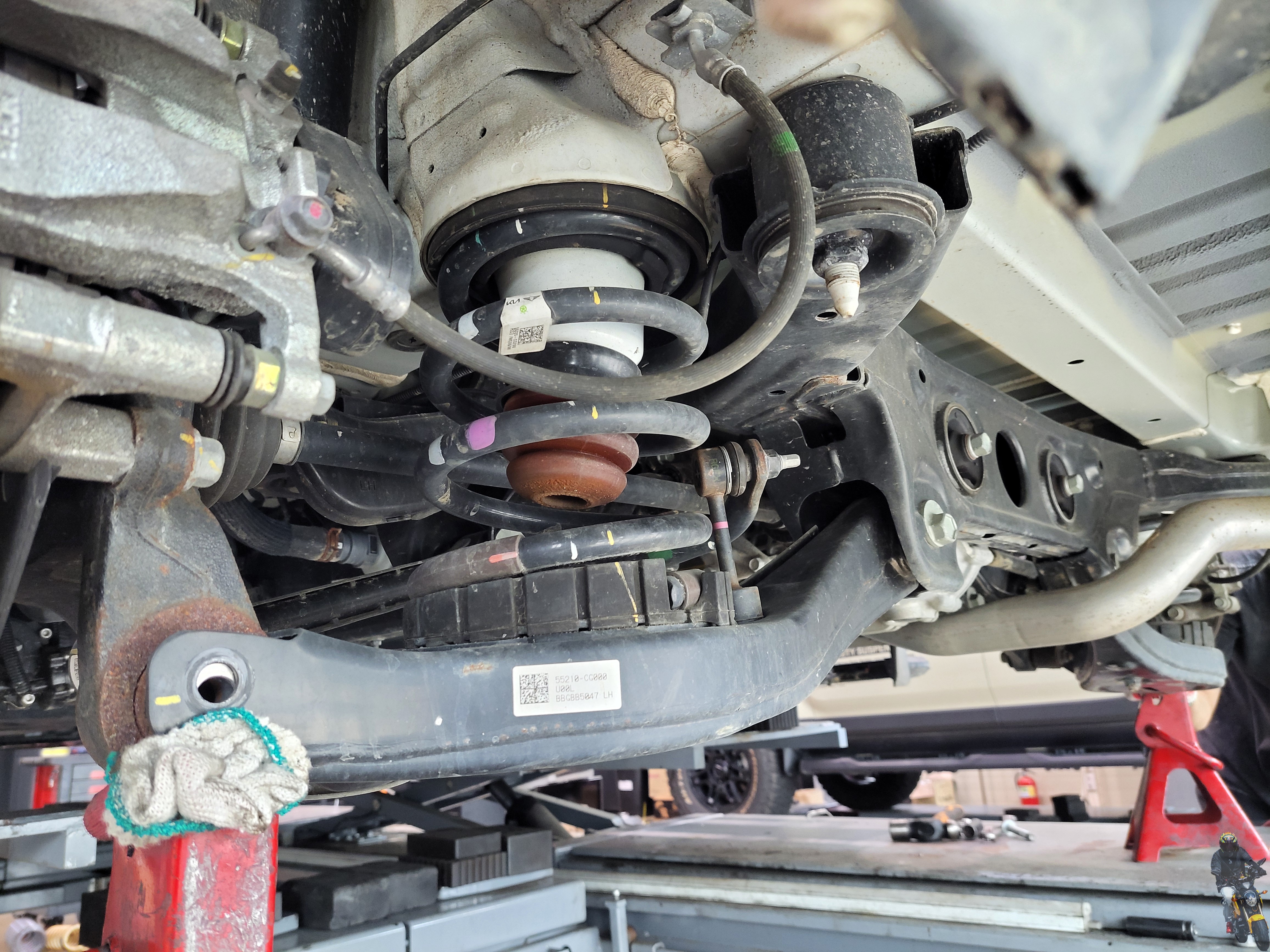 너클과 로우암의 연결부의 볼트너트를 탈거하였습니다