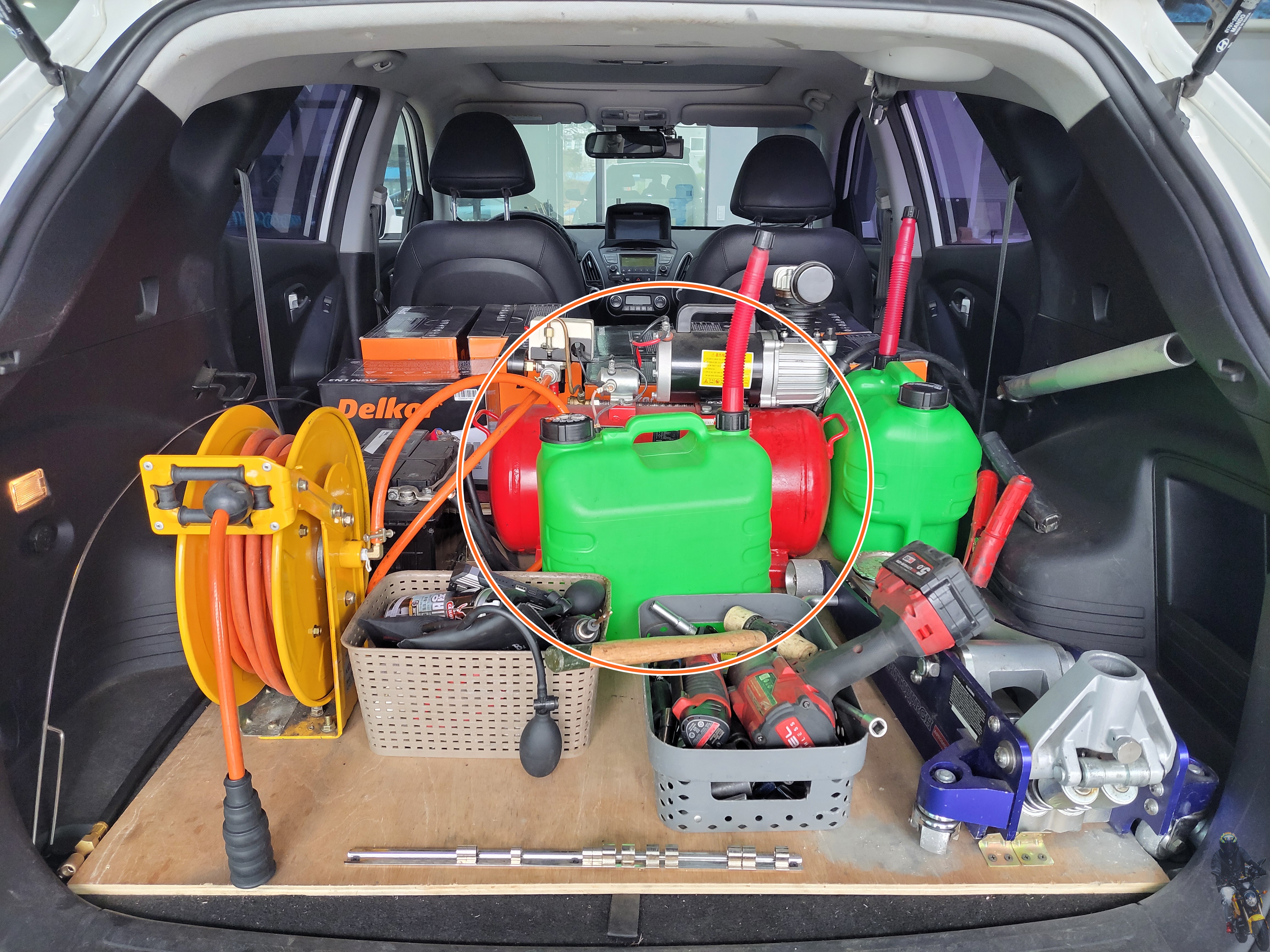 현대자동차 투싼IX 보험 긴급 출동 차량의 트렁크 공간입니다