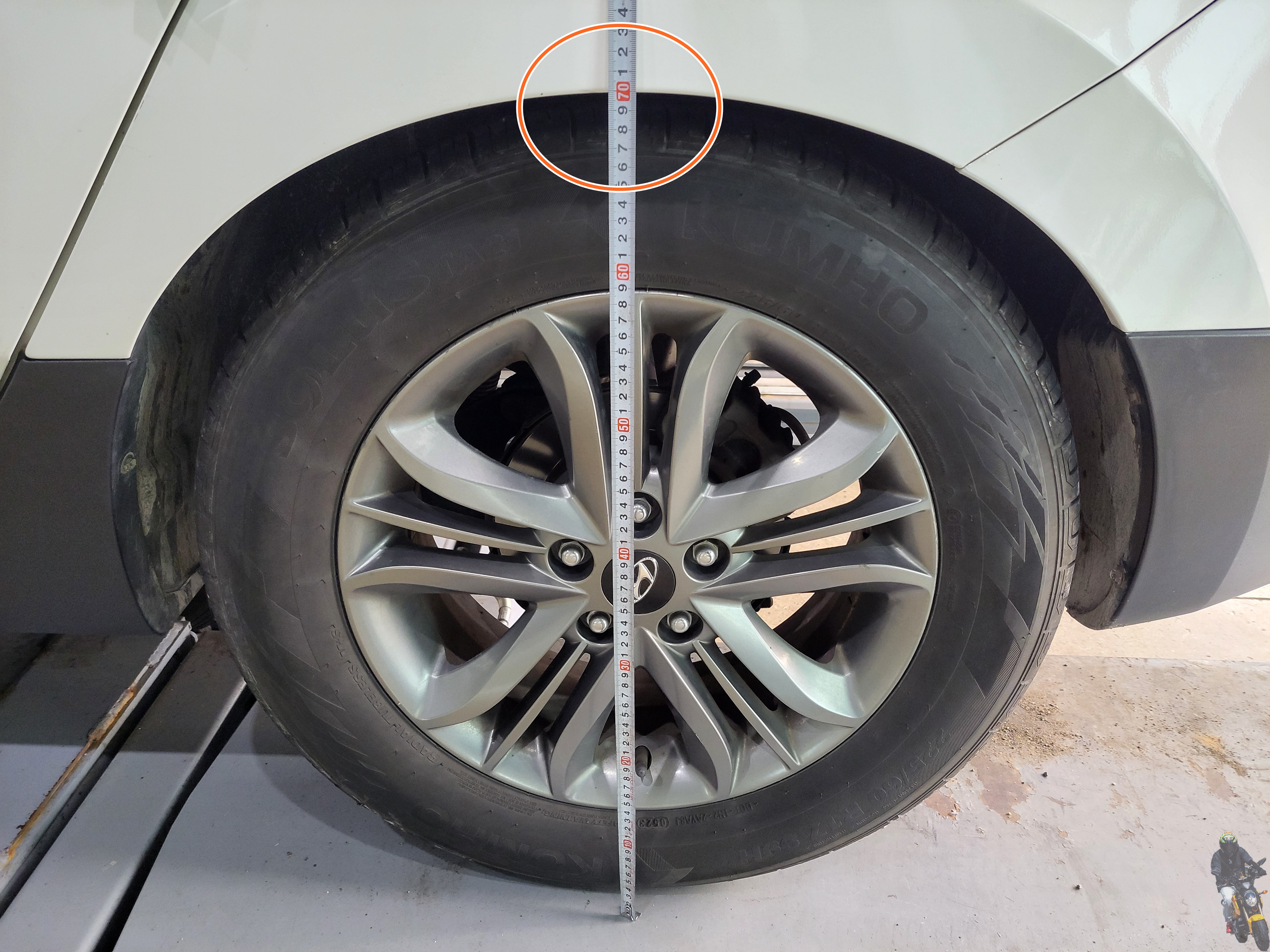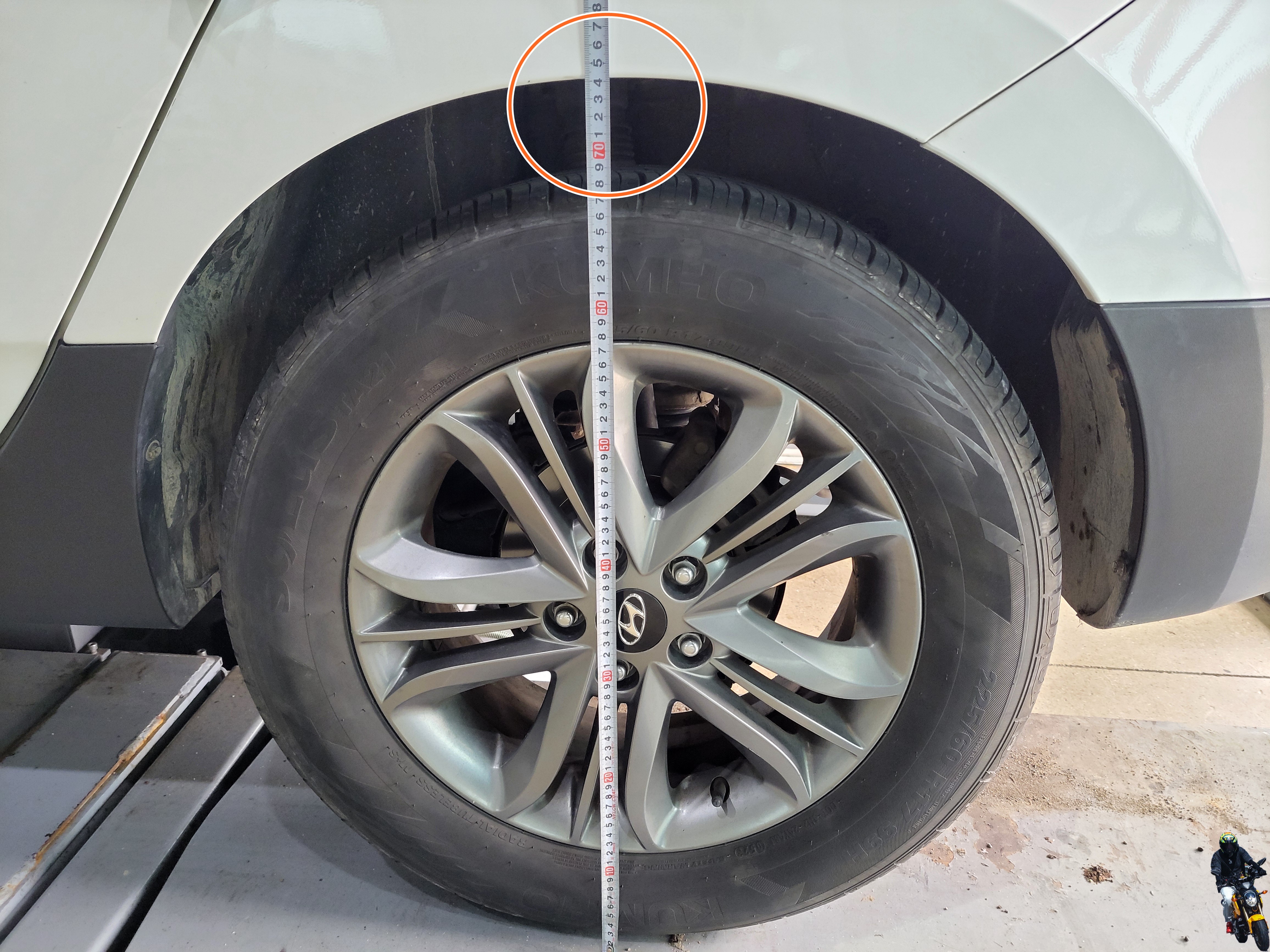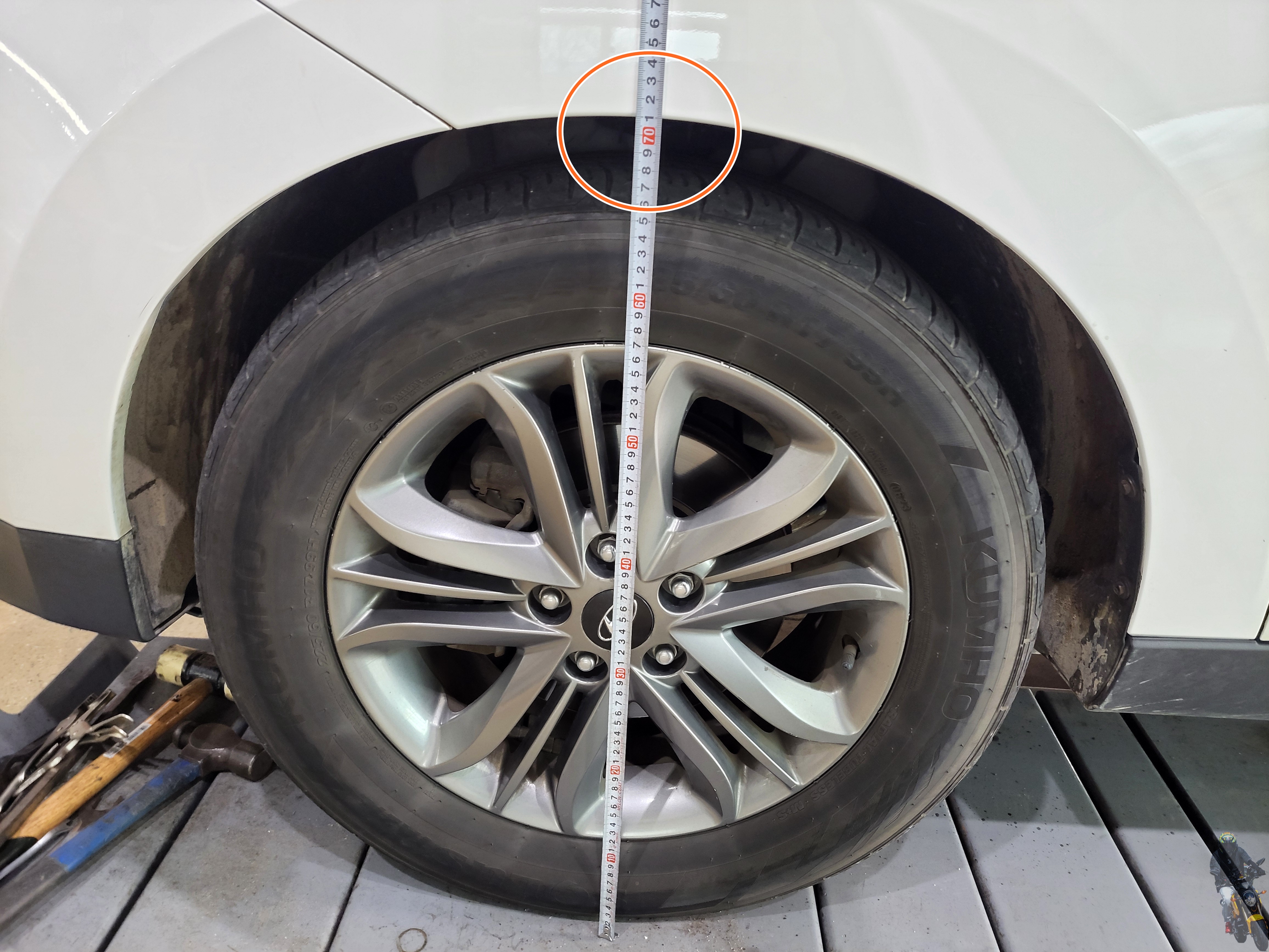 입고된 투싼IX 보험 출동 차량의 리어 차고가 낮아져 있습니다