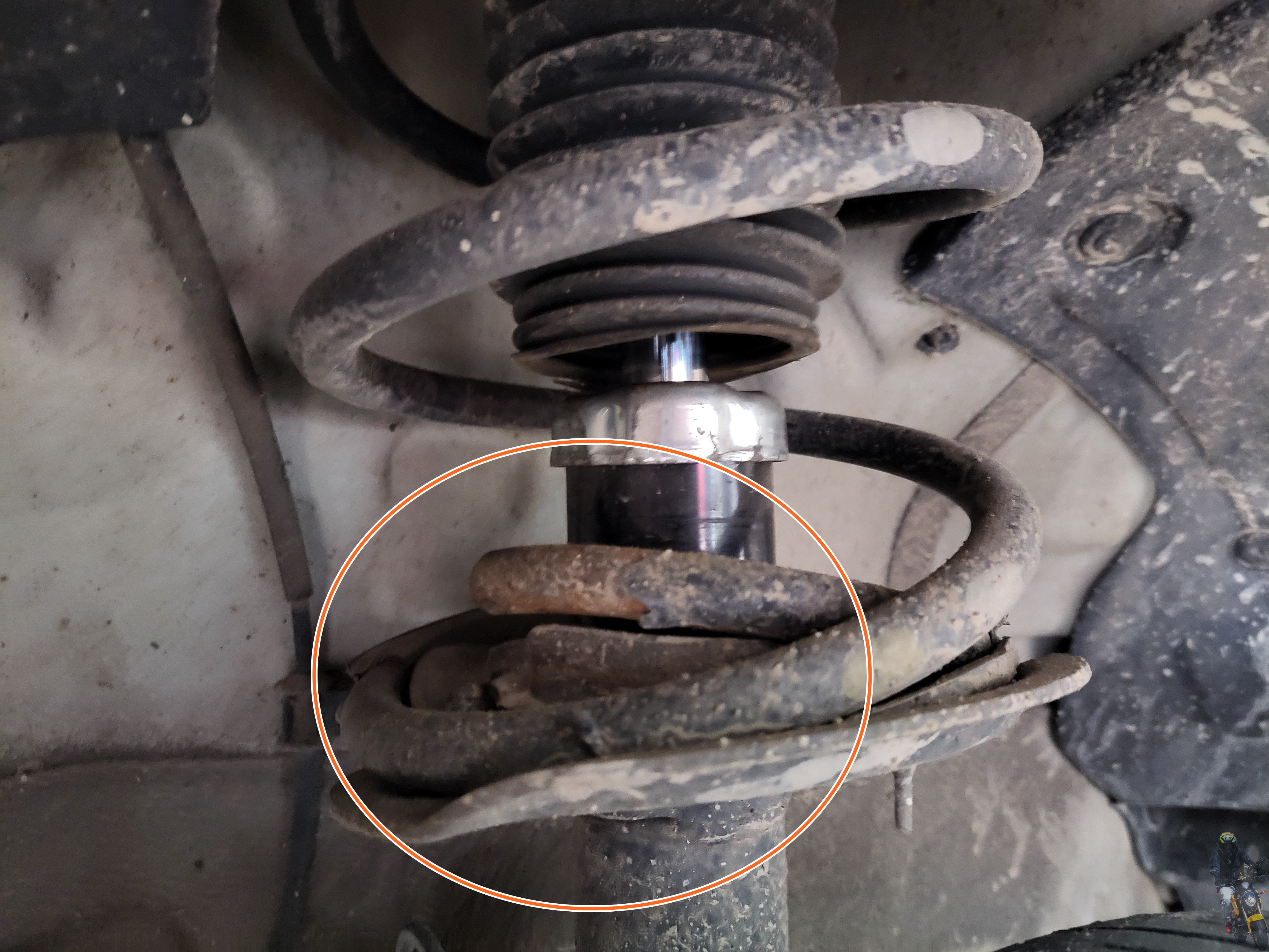 보았는데 순정 스프링 하단부가 부식에 의해 절손이 되어있었습니다