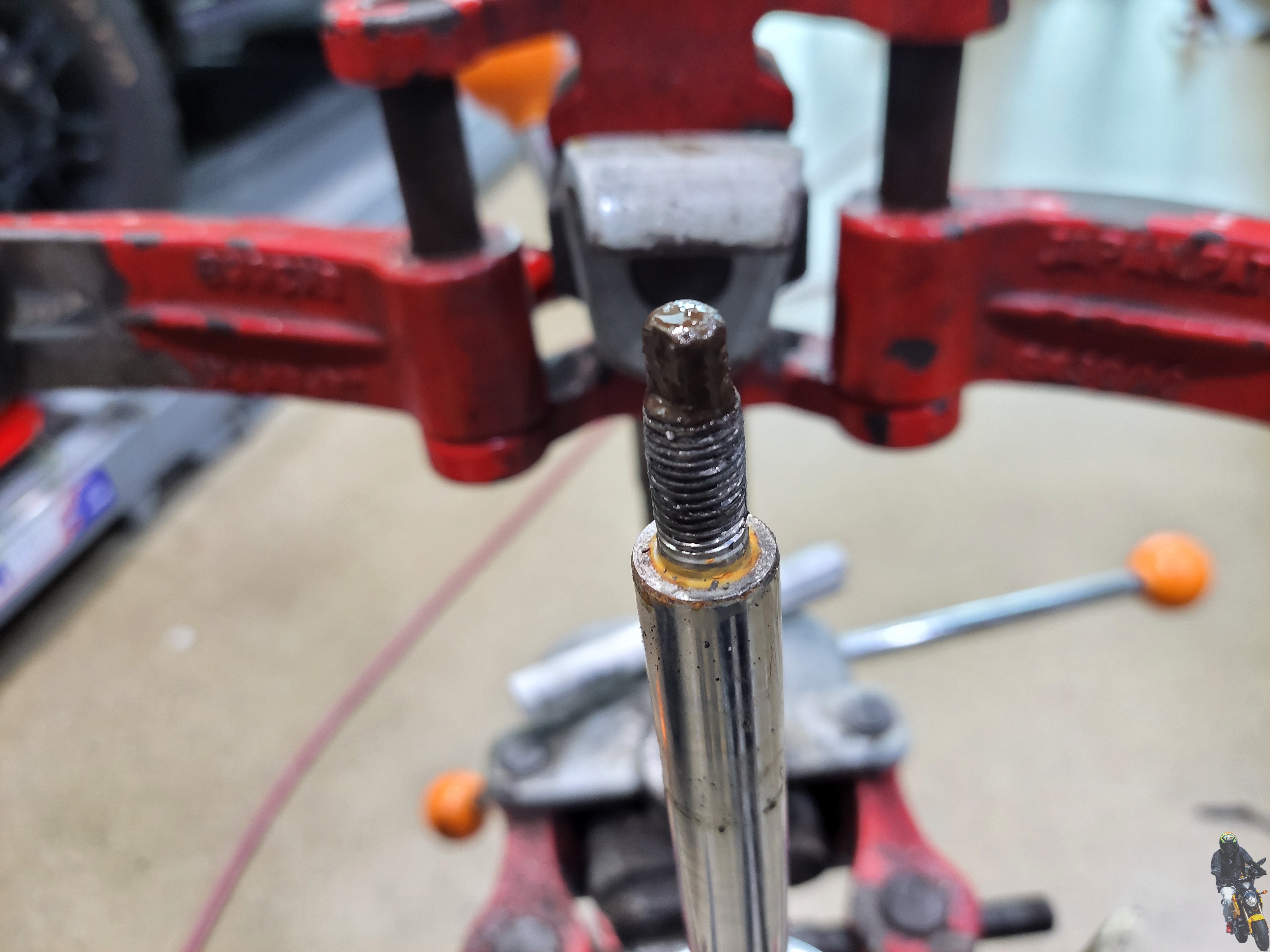 쇼바마운트 고정을 하고 구리스를 많이 도포했습니다