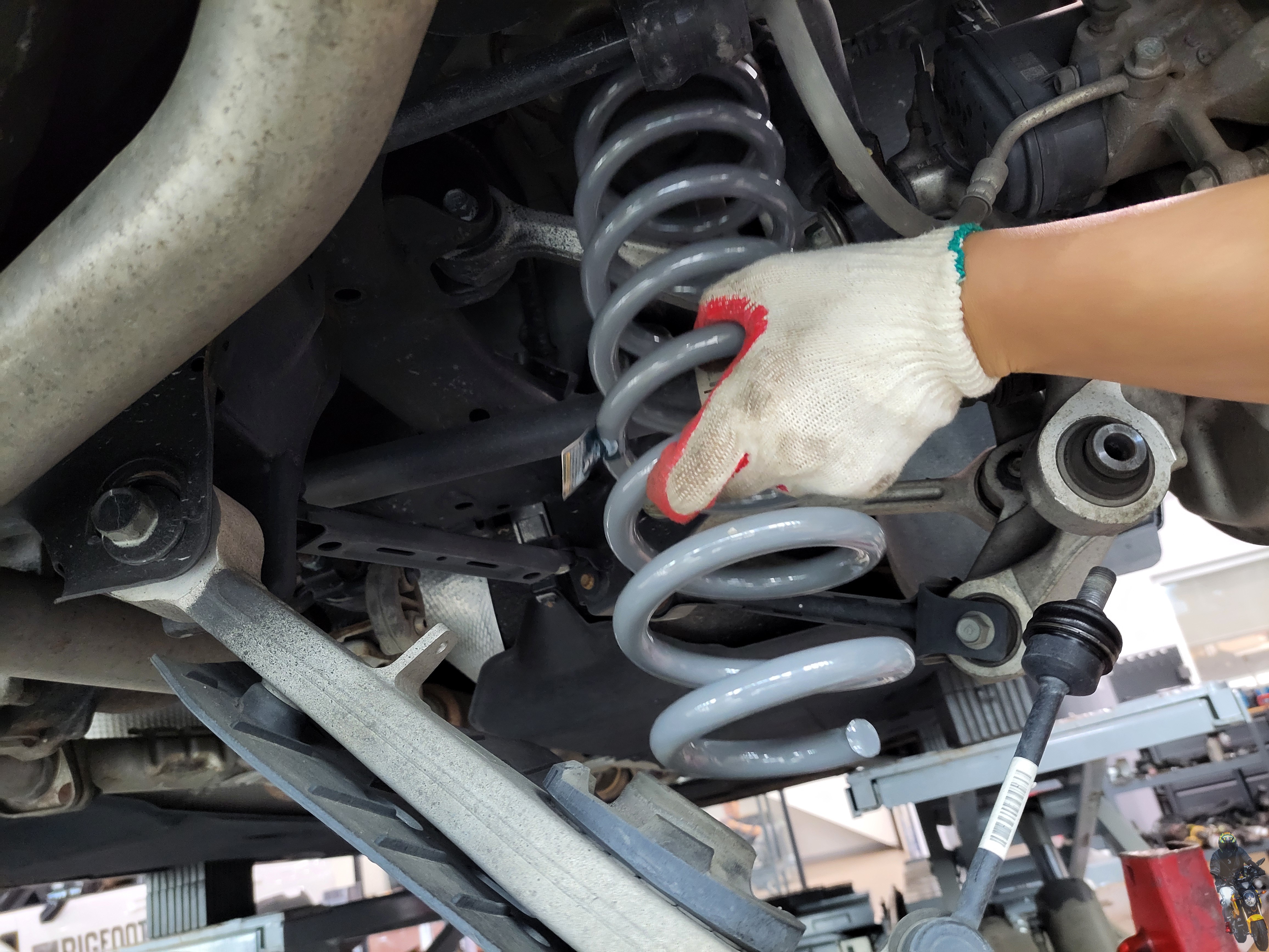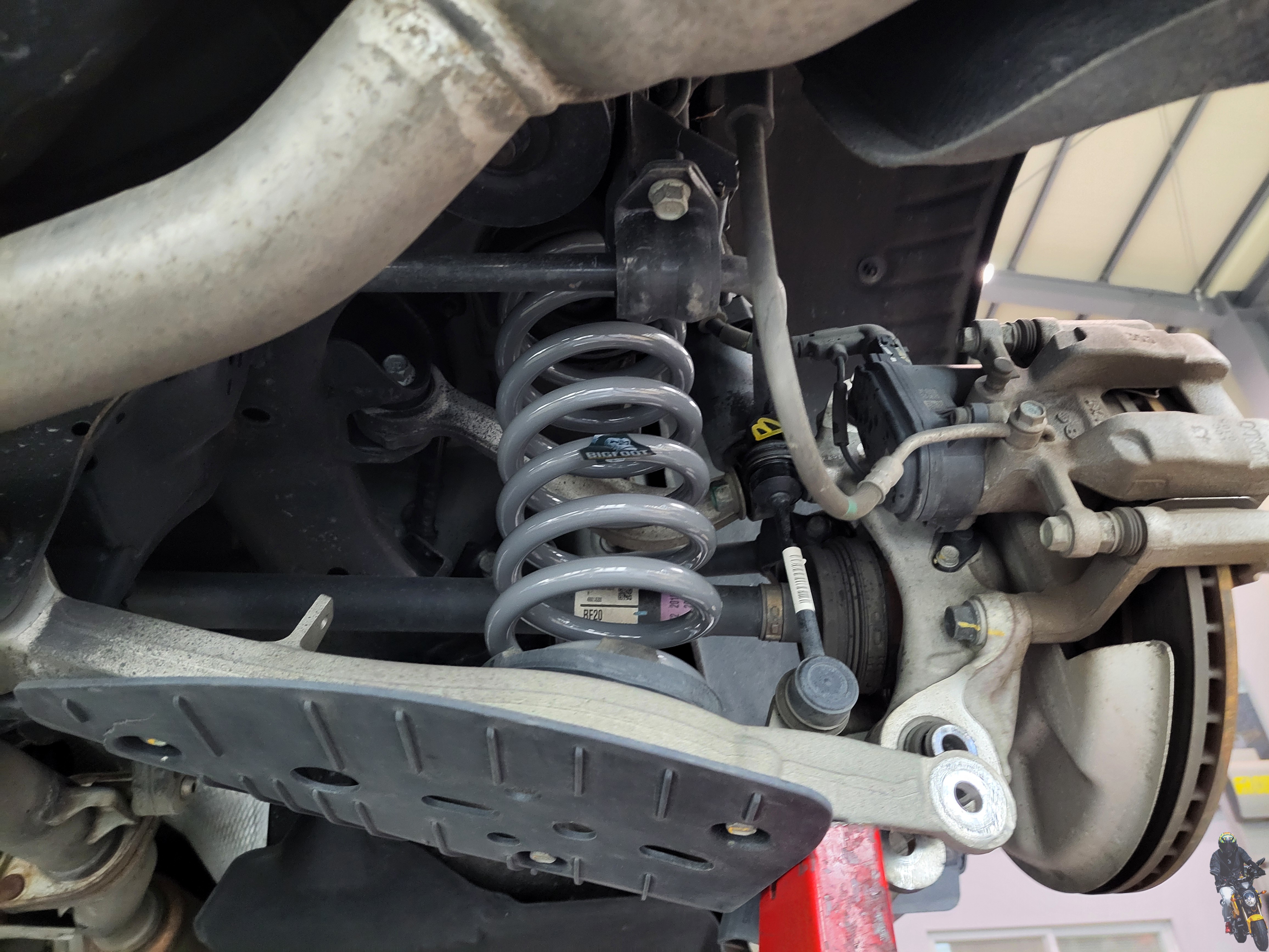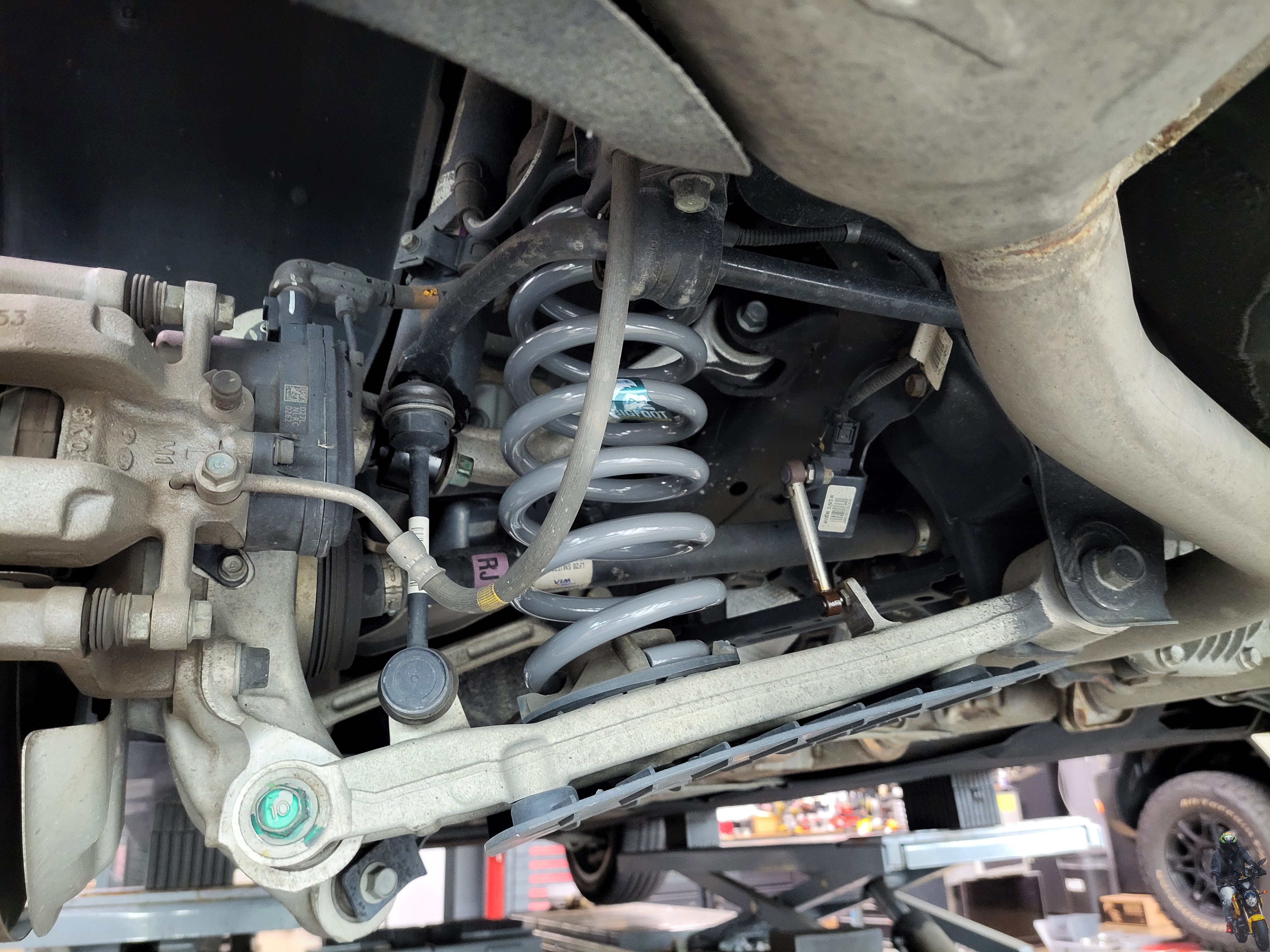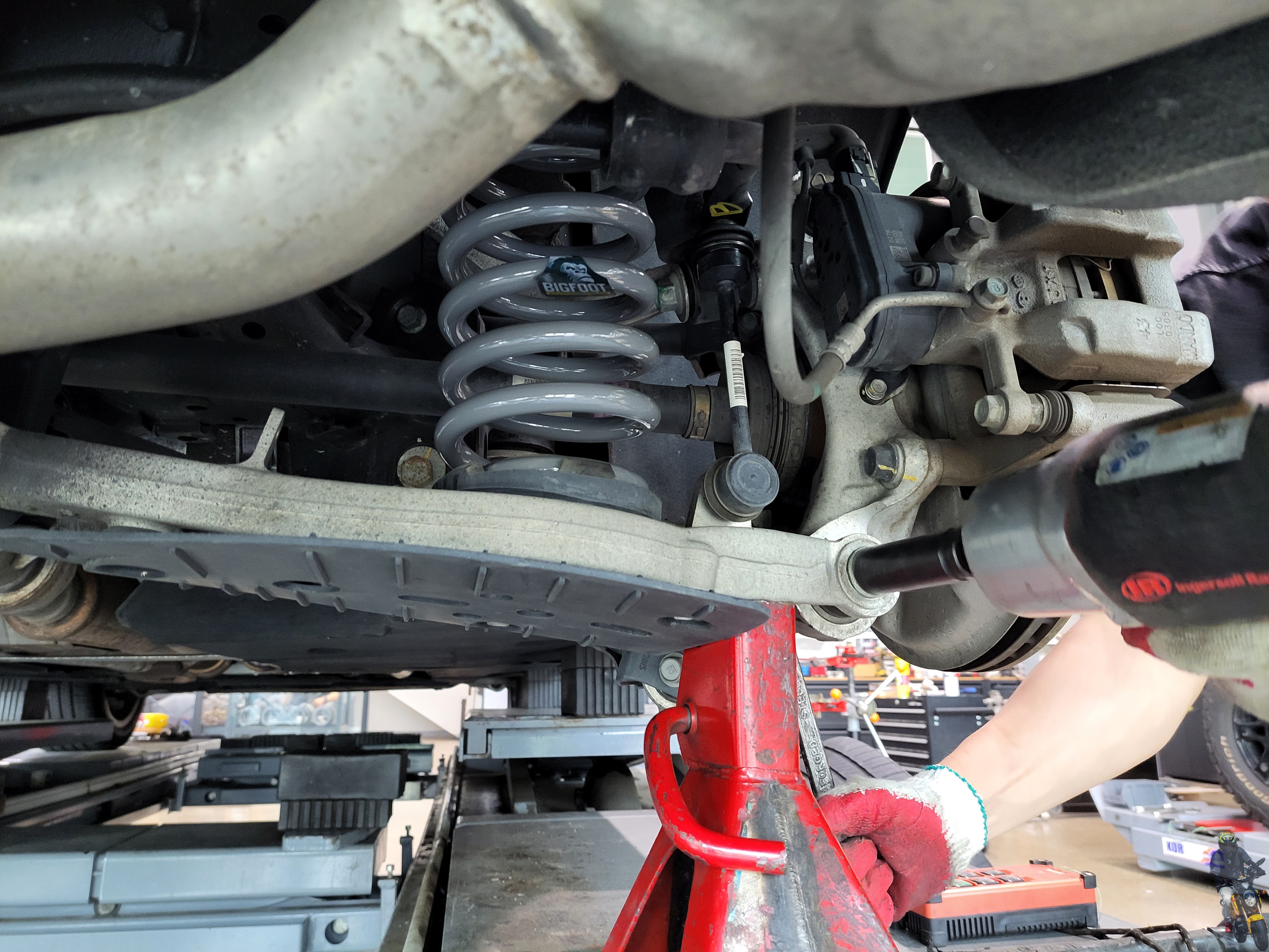 빅풋스프링을 장착하고 마지막으로 스테빌라이저 링크를 조이고 있습니다