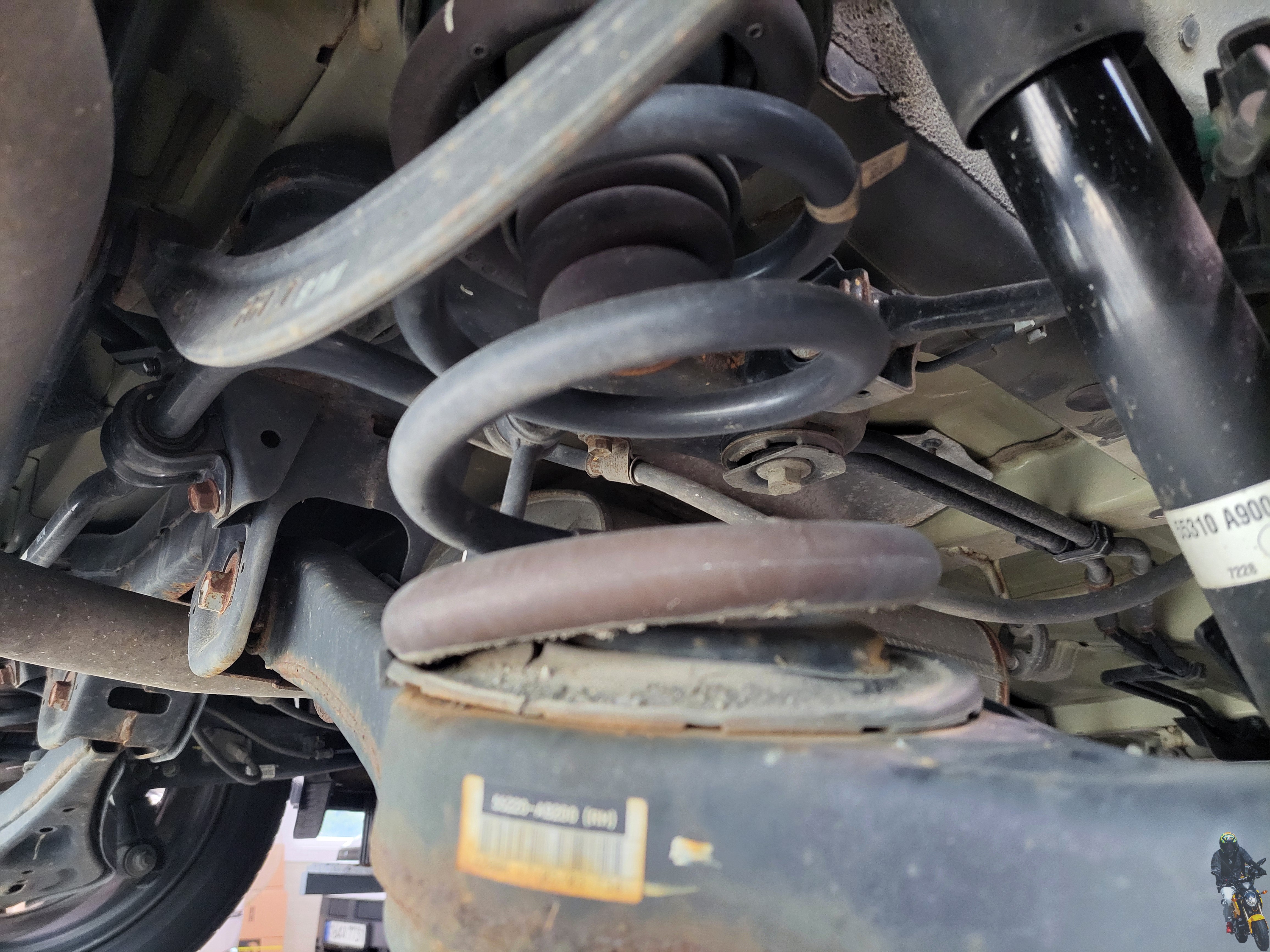 순정스프링을 탈거하기 위해 너클과 로우암의 고정 너트를
