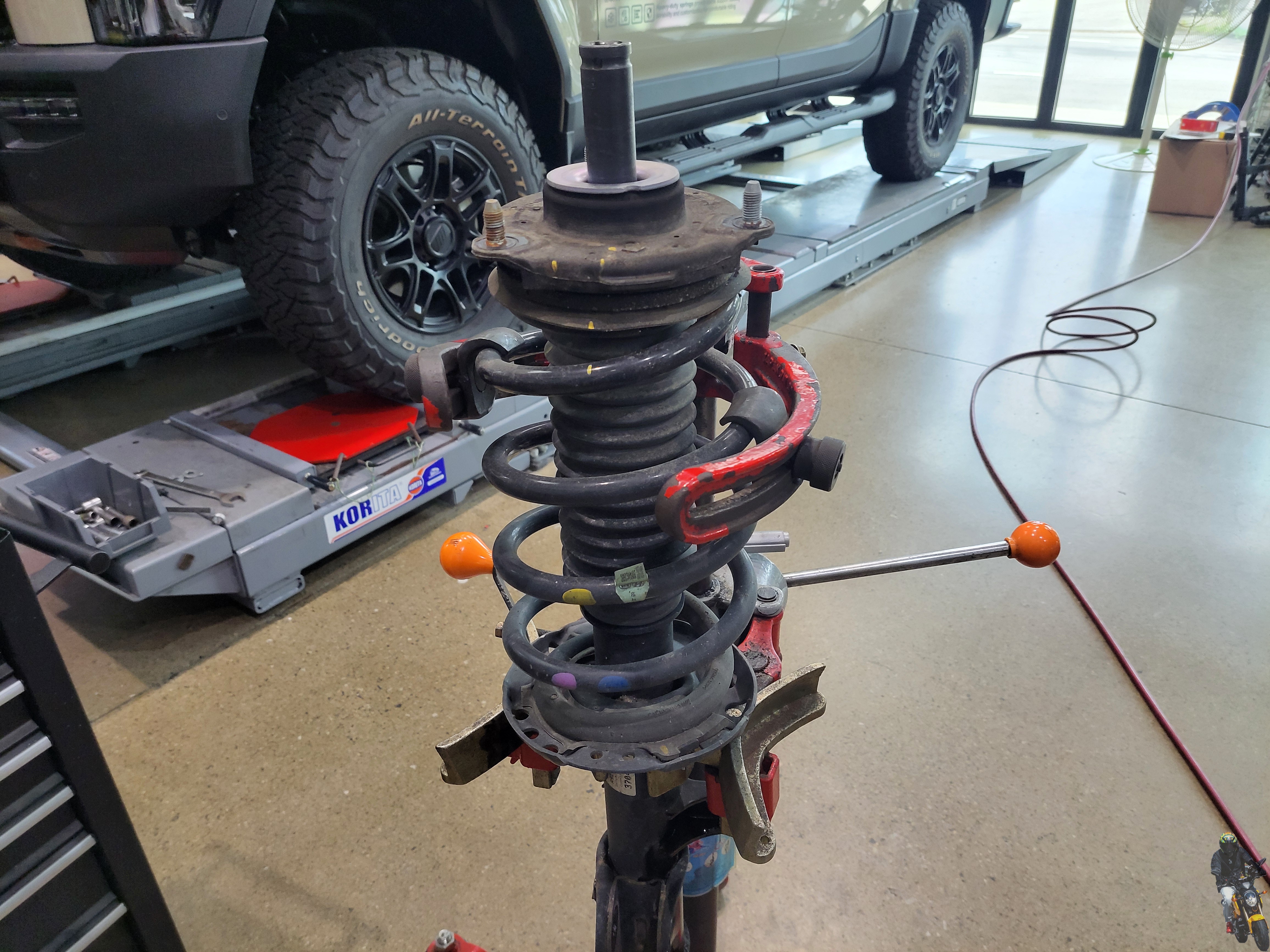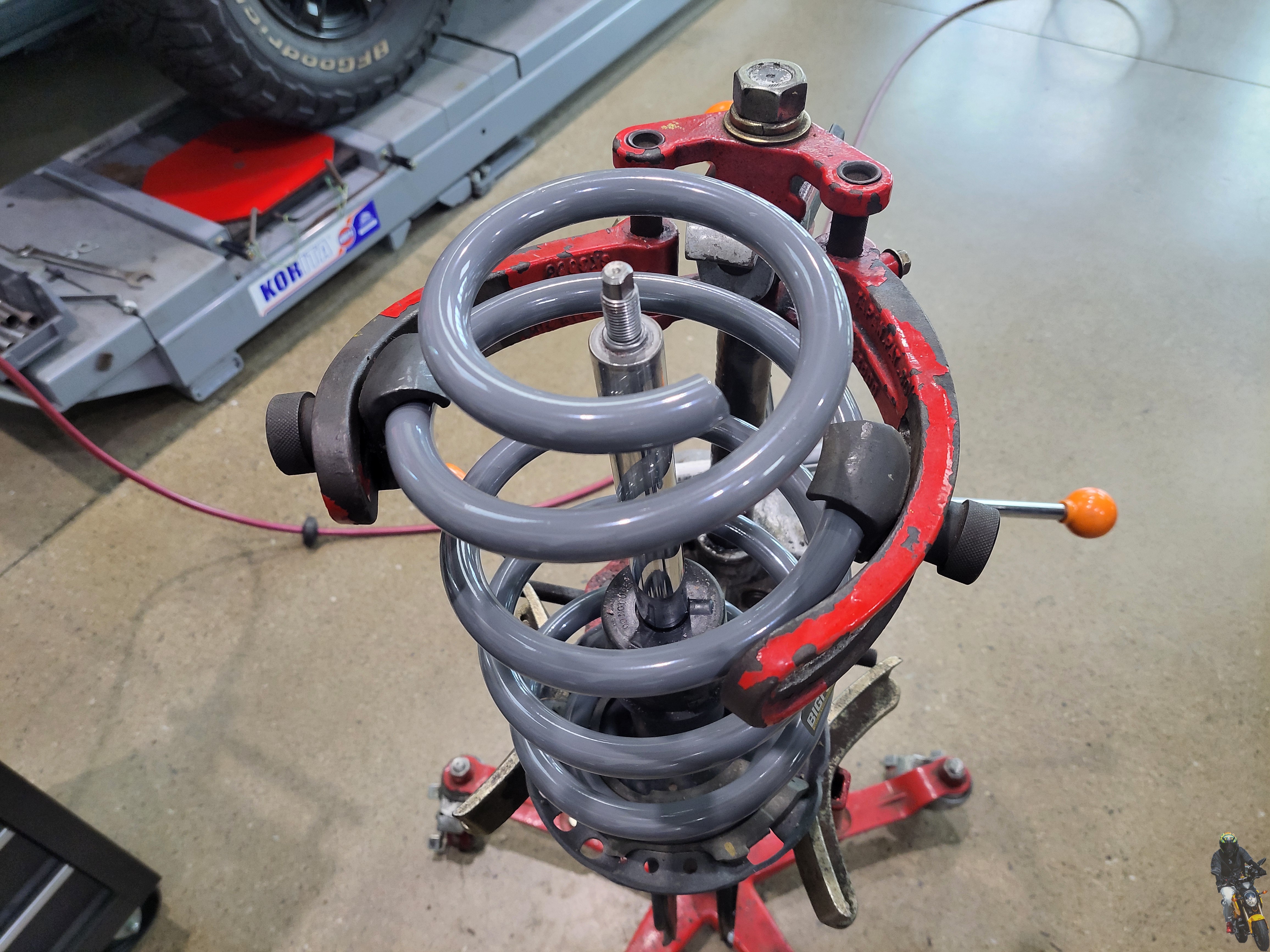 스프링 압축기에 고정을 하고 순정스프링을 압축하여