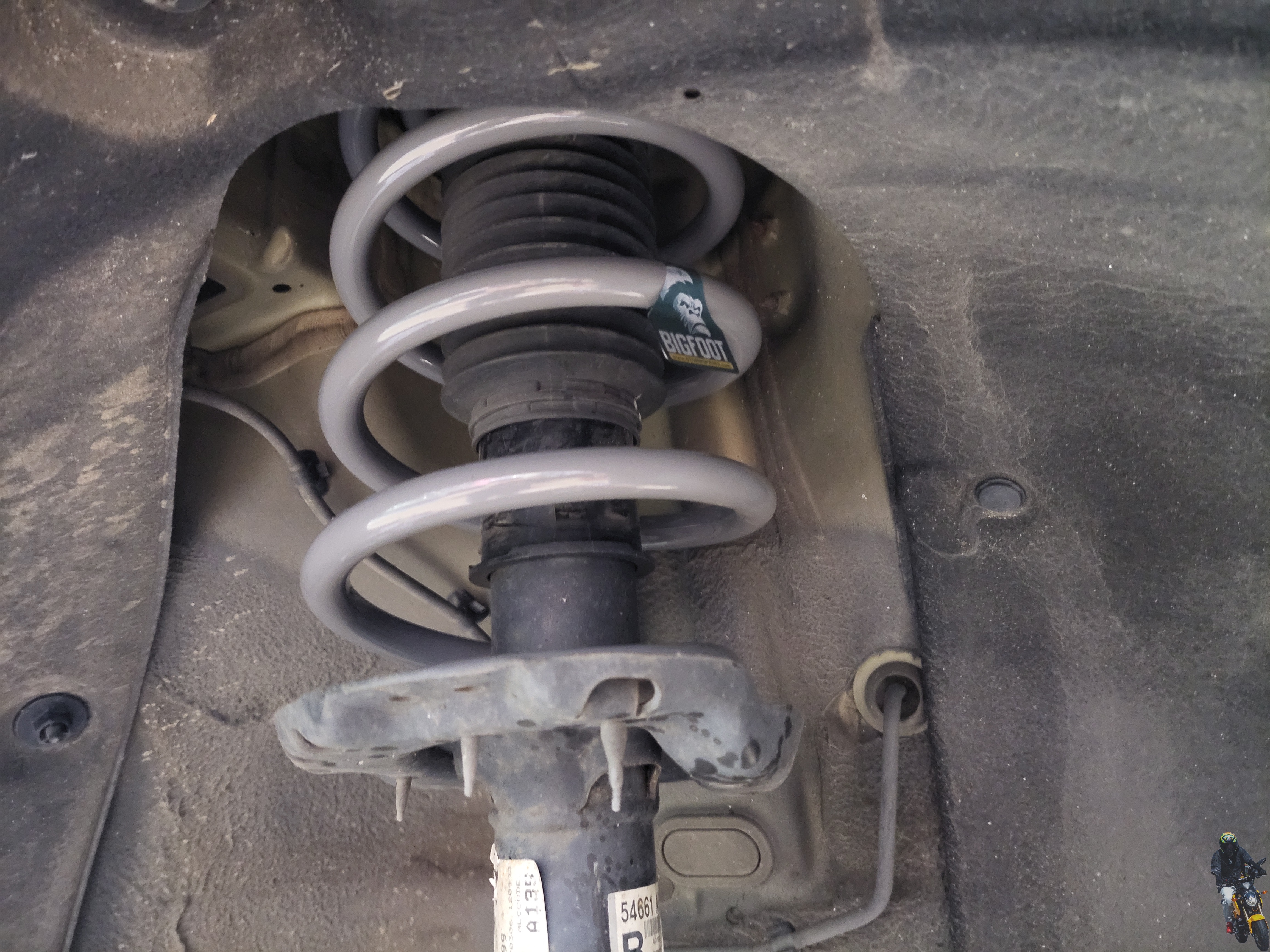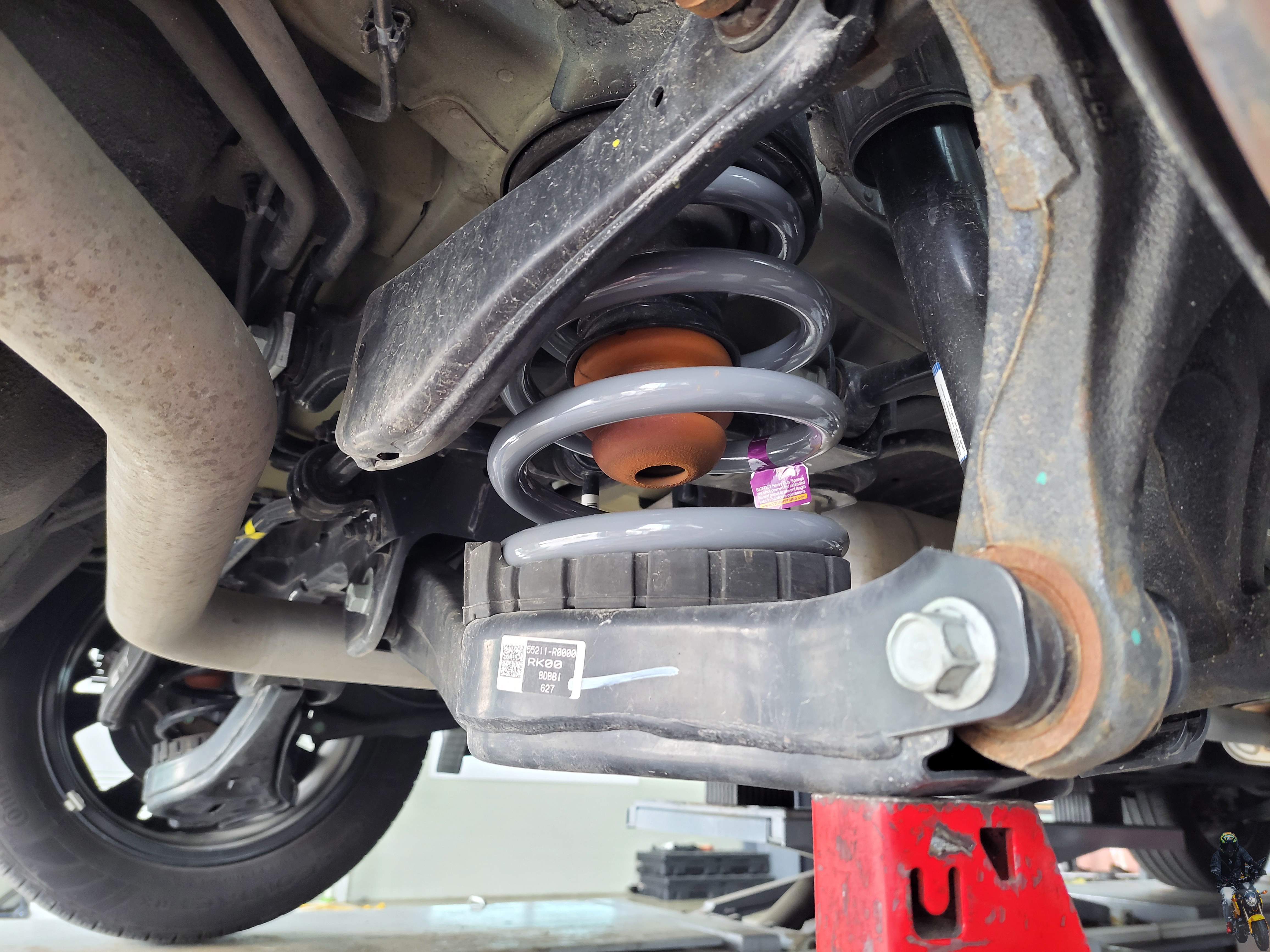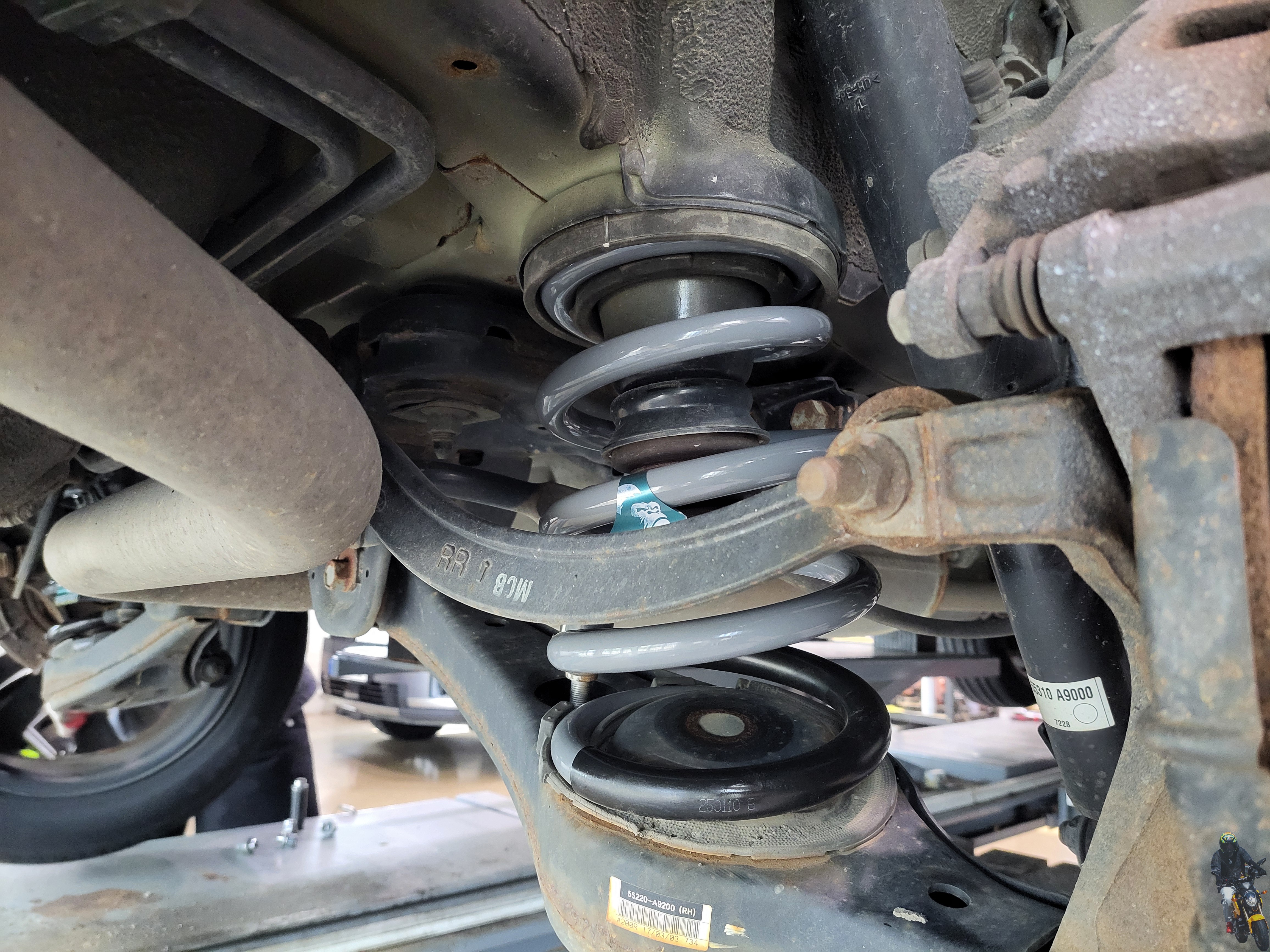 순정쇼바에 조립된 빅풋스프링을 차량에 장착하고 있습니다