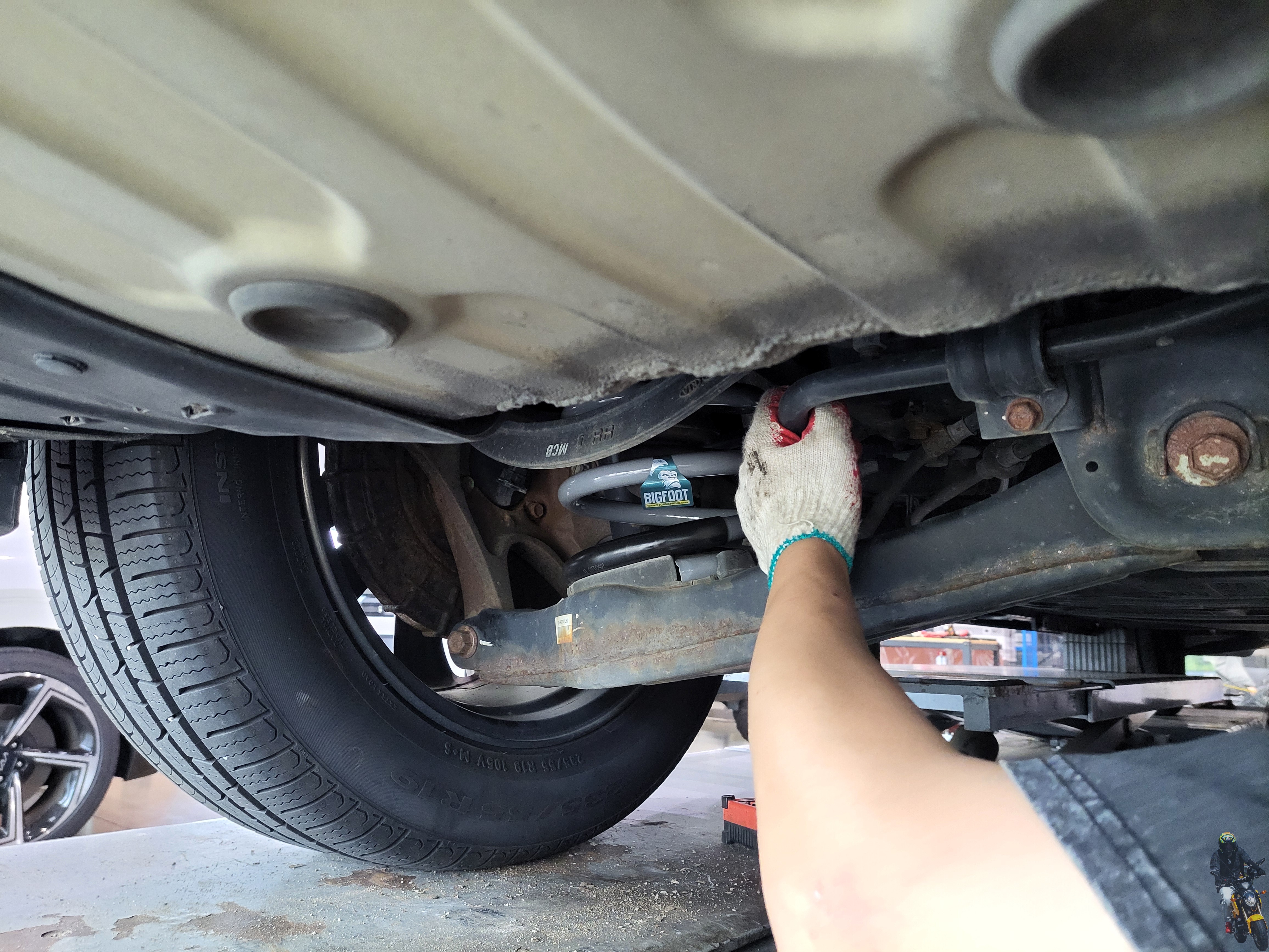 교체를 하였고 마지막으로 스테빌라이저 링크를 고정하고 있습니다