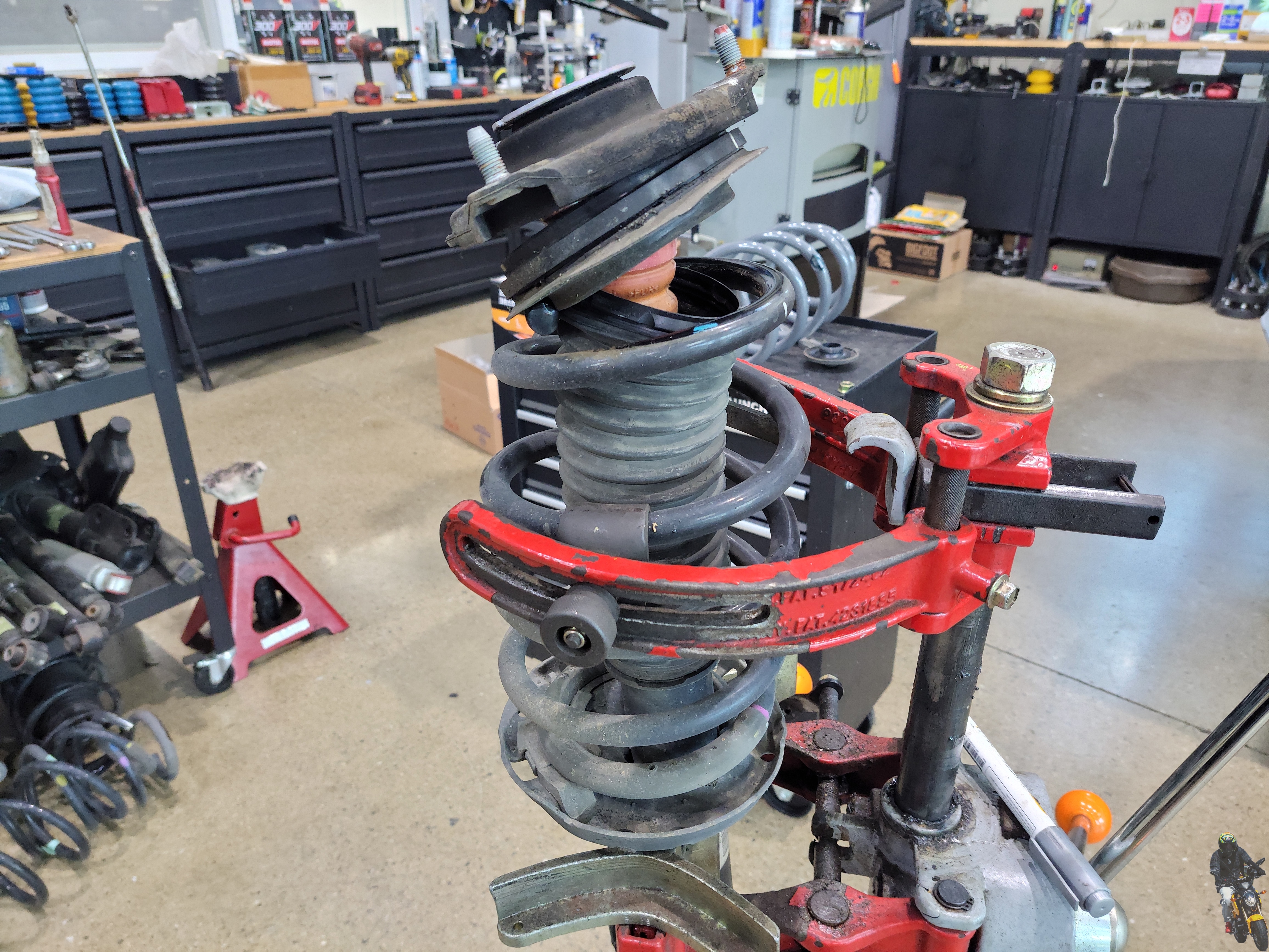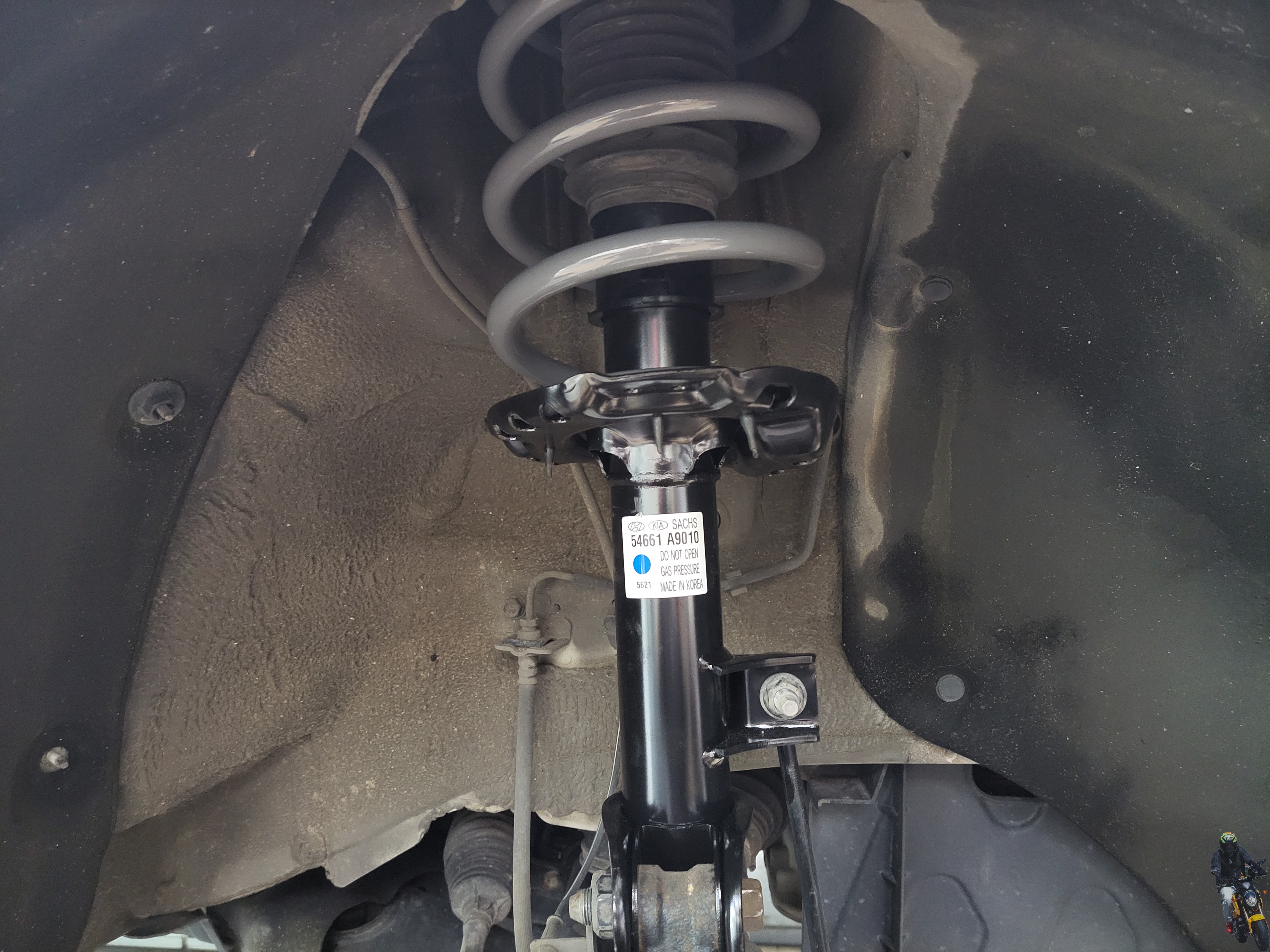 새 부품으로 조립된 쇼바스프링을 차량에 장착하기 위해
