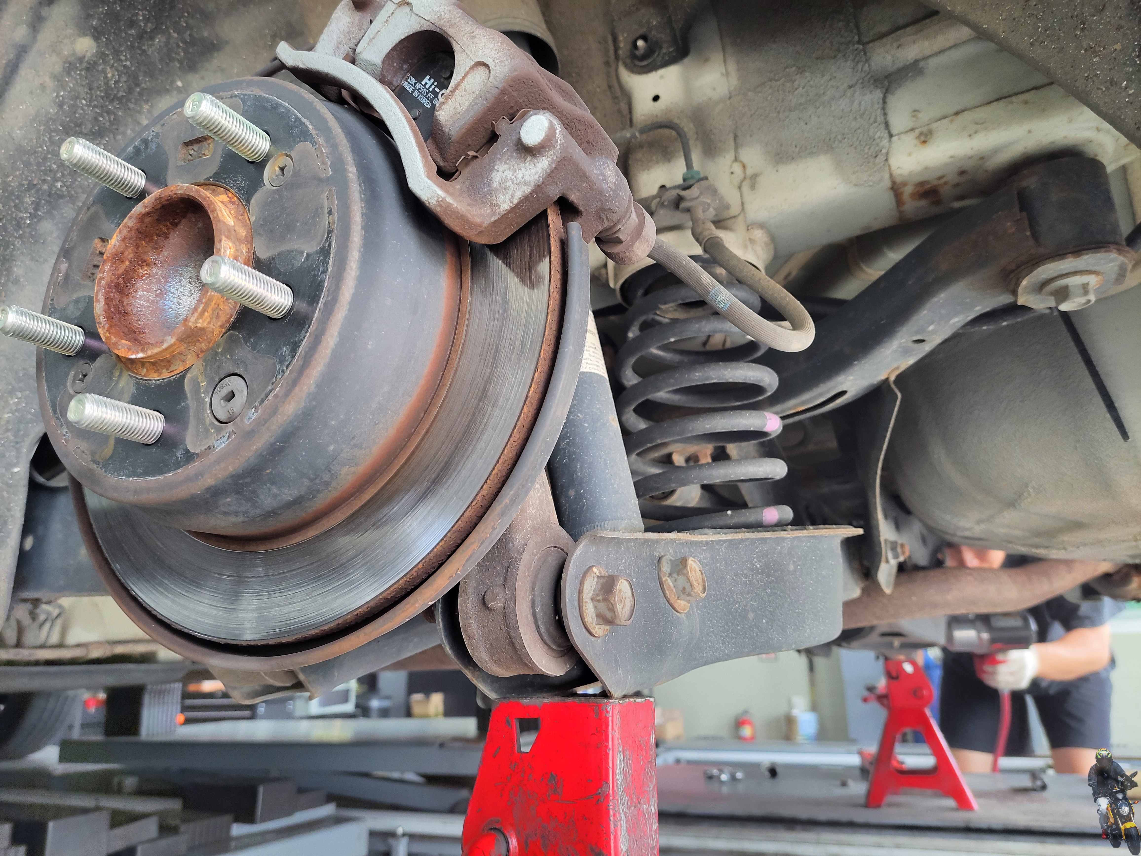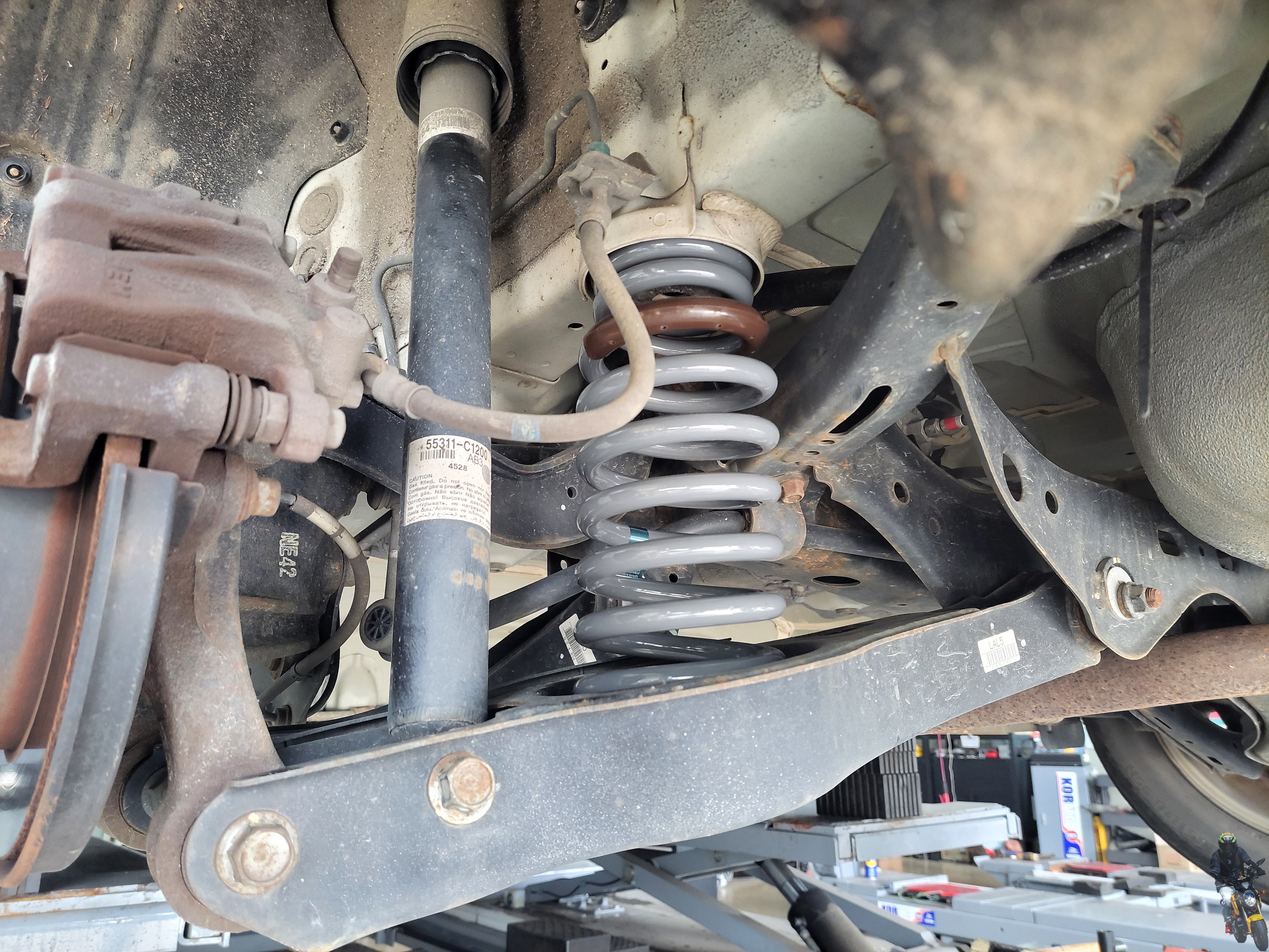 휠타이어를 탈거하고 순정스프링을 탈거할 준비를 하고 있습니다