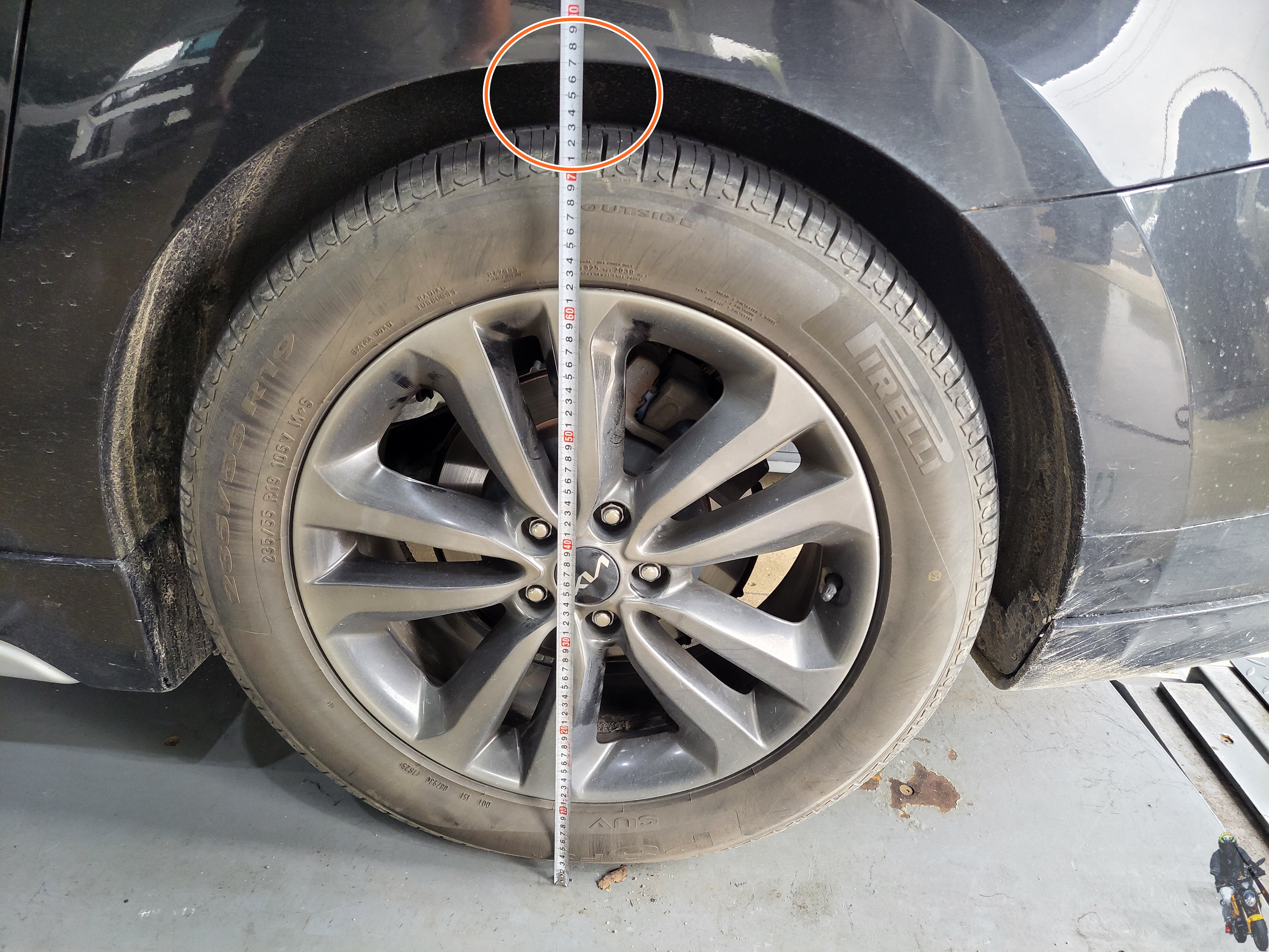 장착이 되어 있습니다 차고를 측정해 보니 리어 차고가 낮아져 있습니다