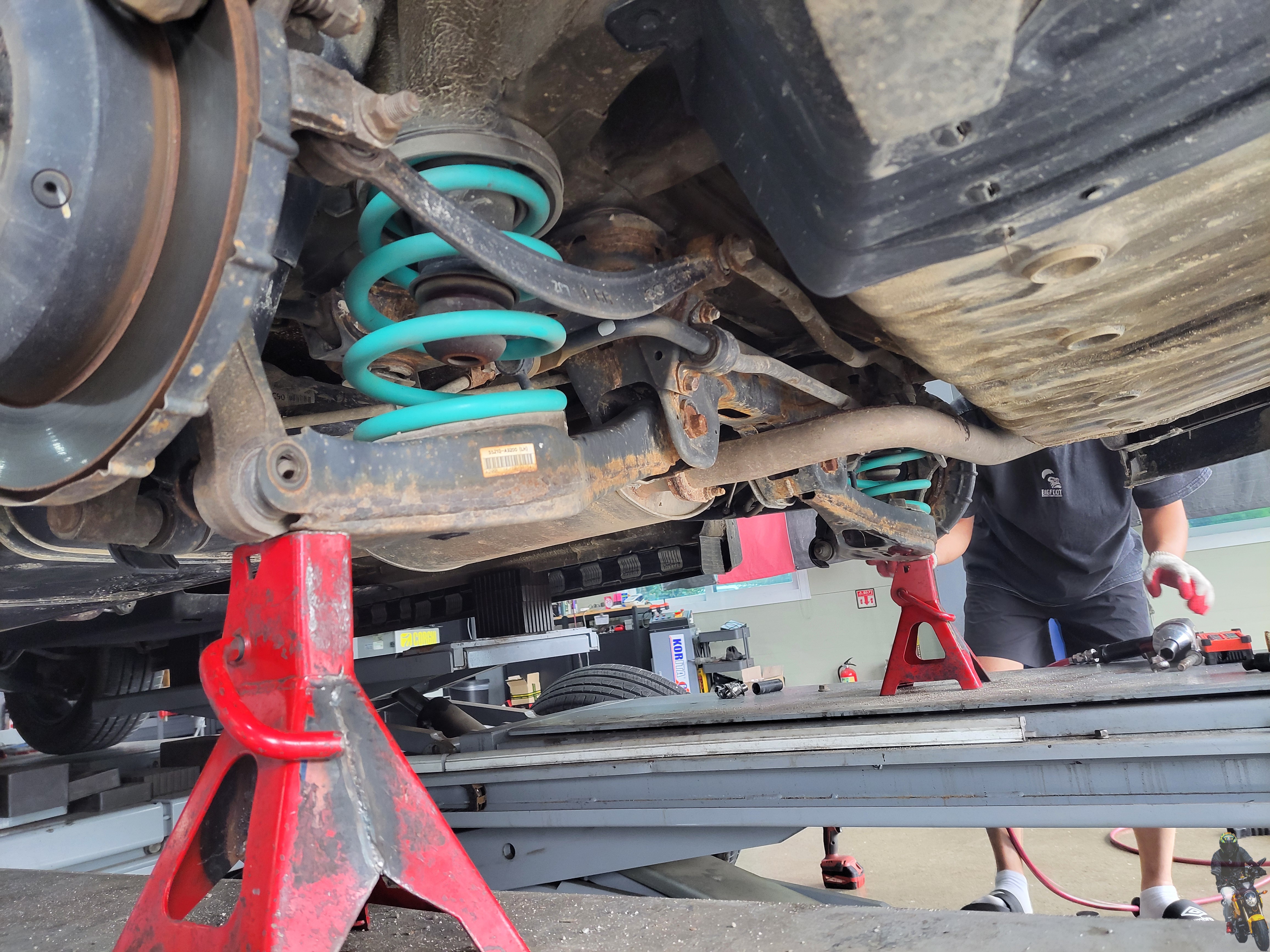 빅풋스프링 장착은 마쳤고 스테빌라이저 링크를 고정하고 있습니다