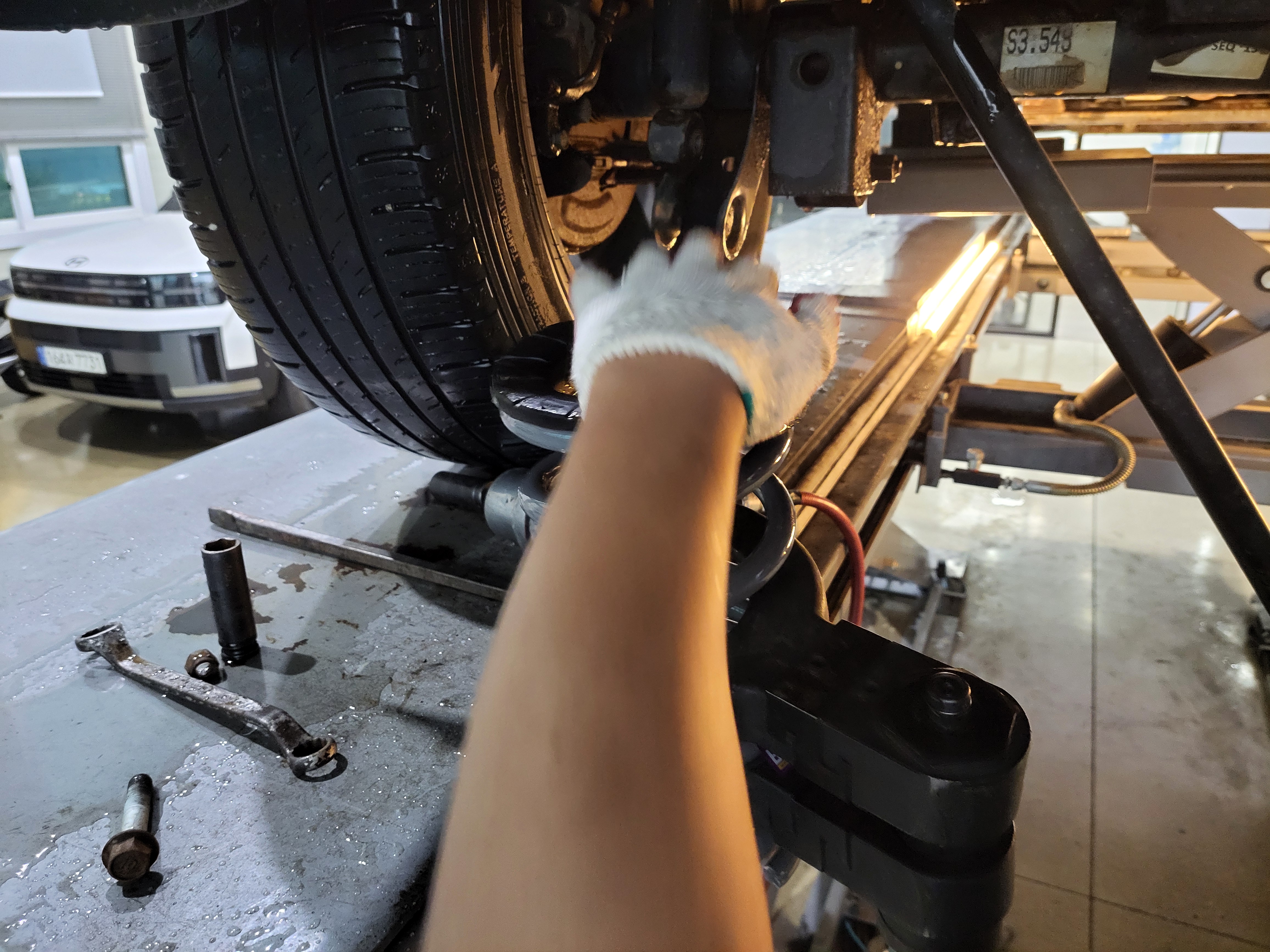 코란도스포츠 차량의 우측리어스프링도 동일한 방법으로