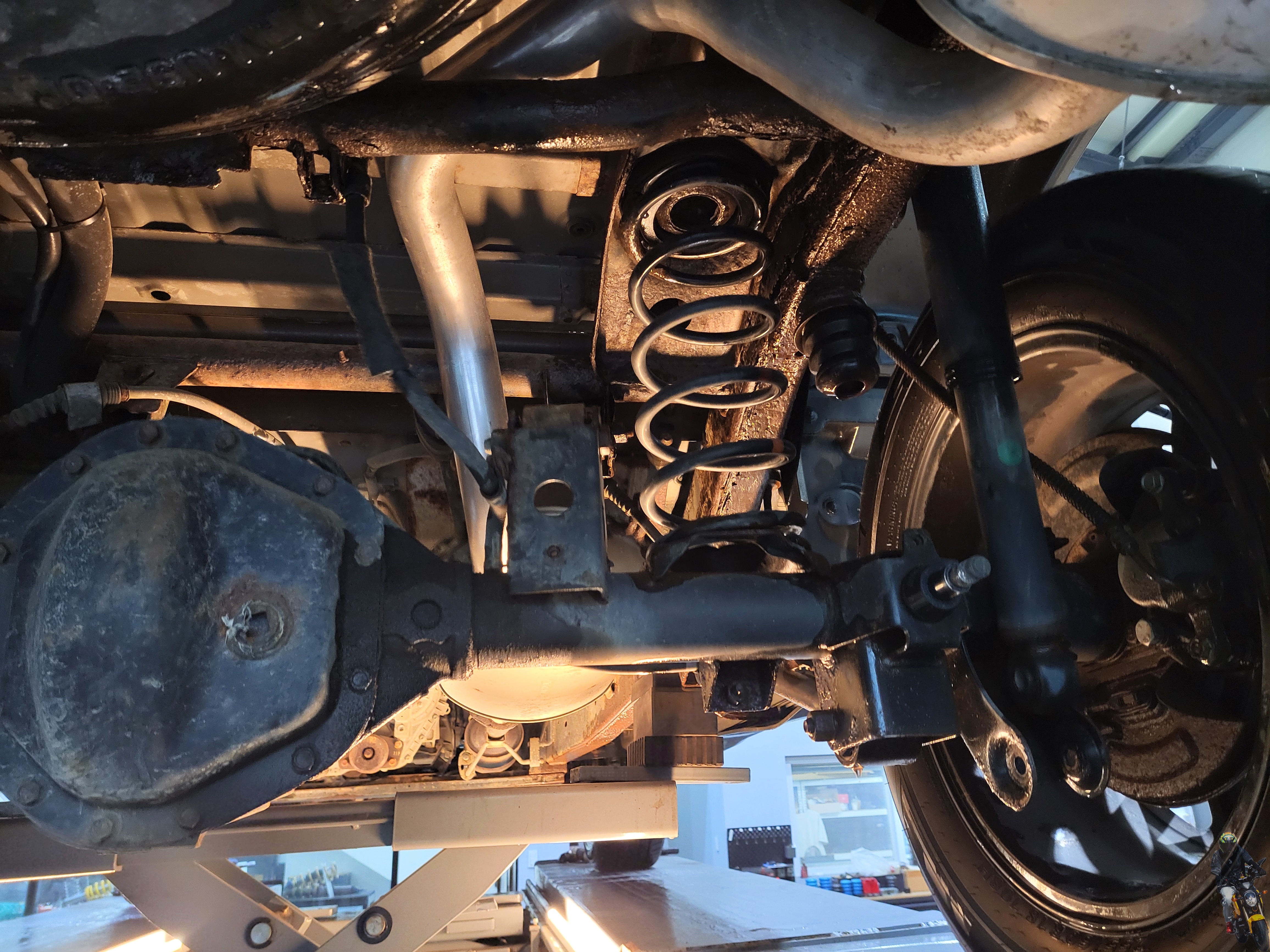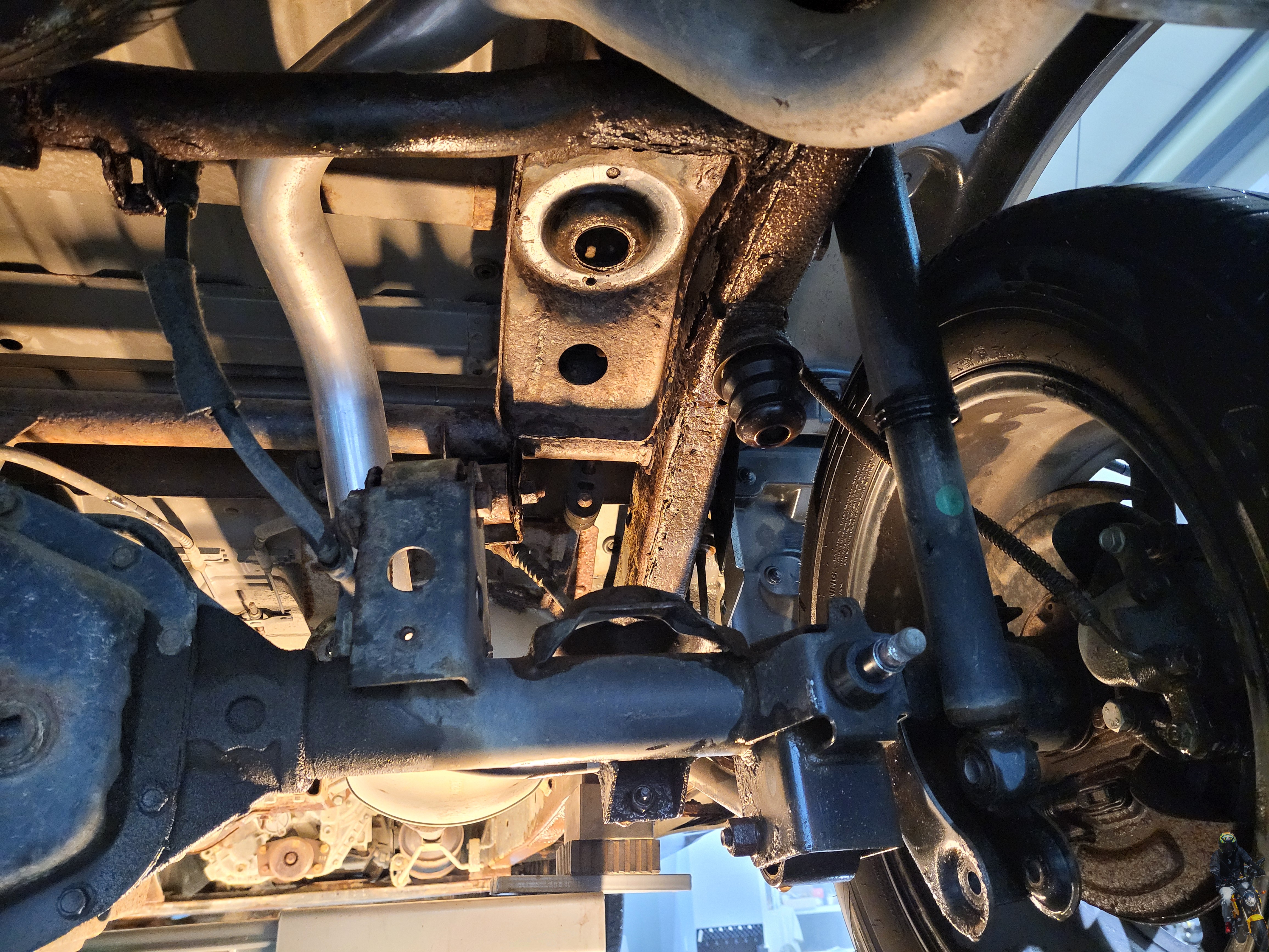 차량의 뒤 차축의 센터를 잡아주는 레트럴바도 탈거를 하고
