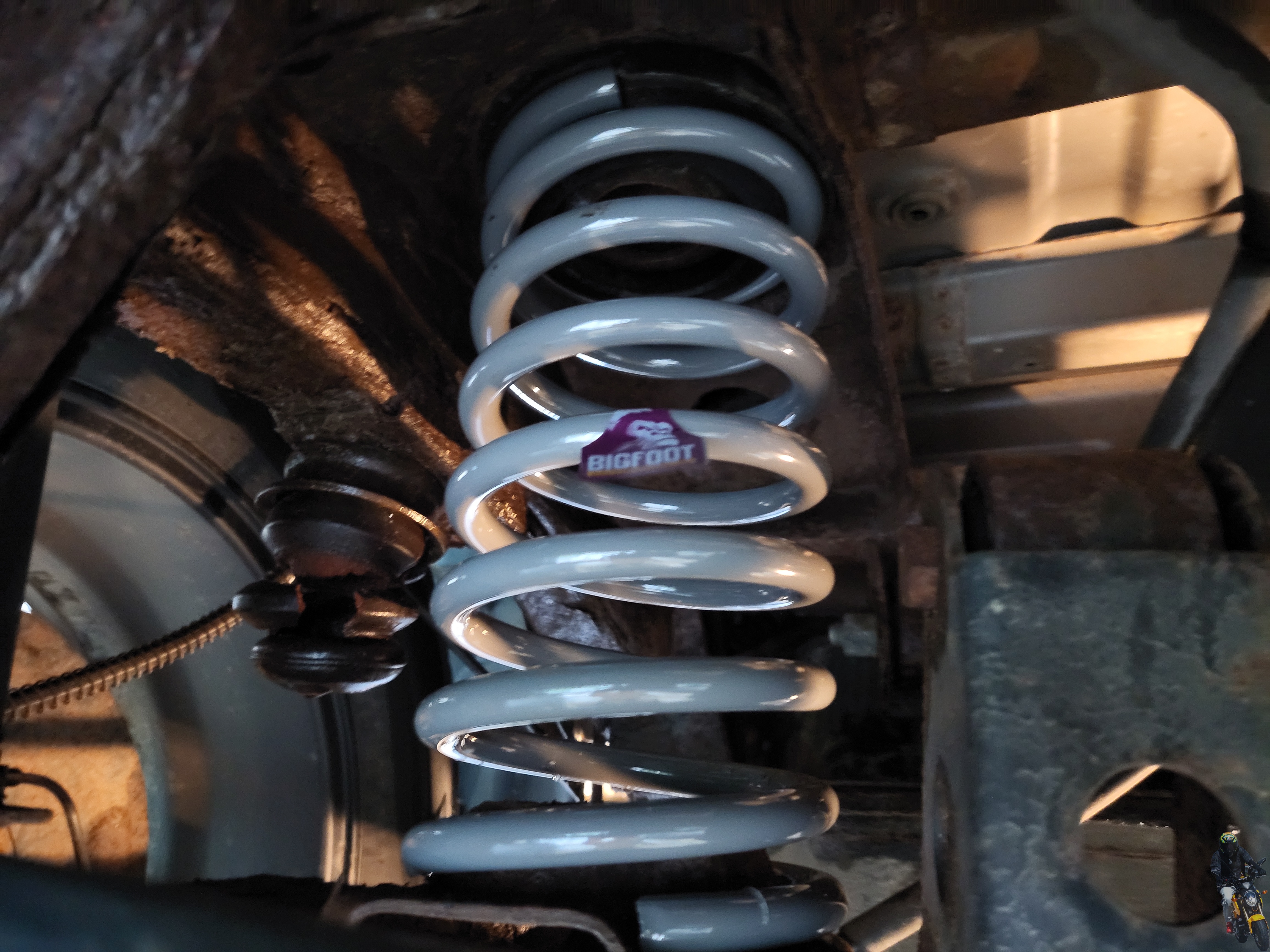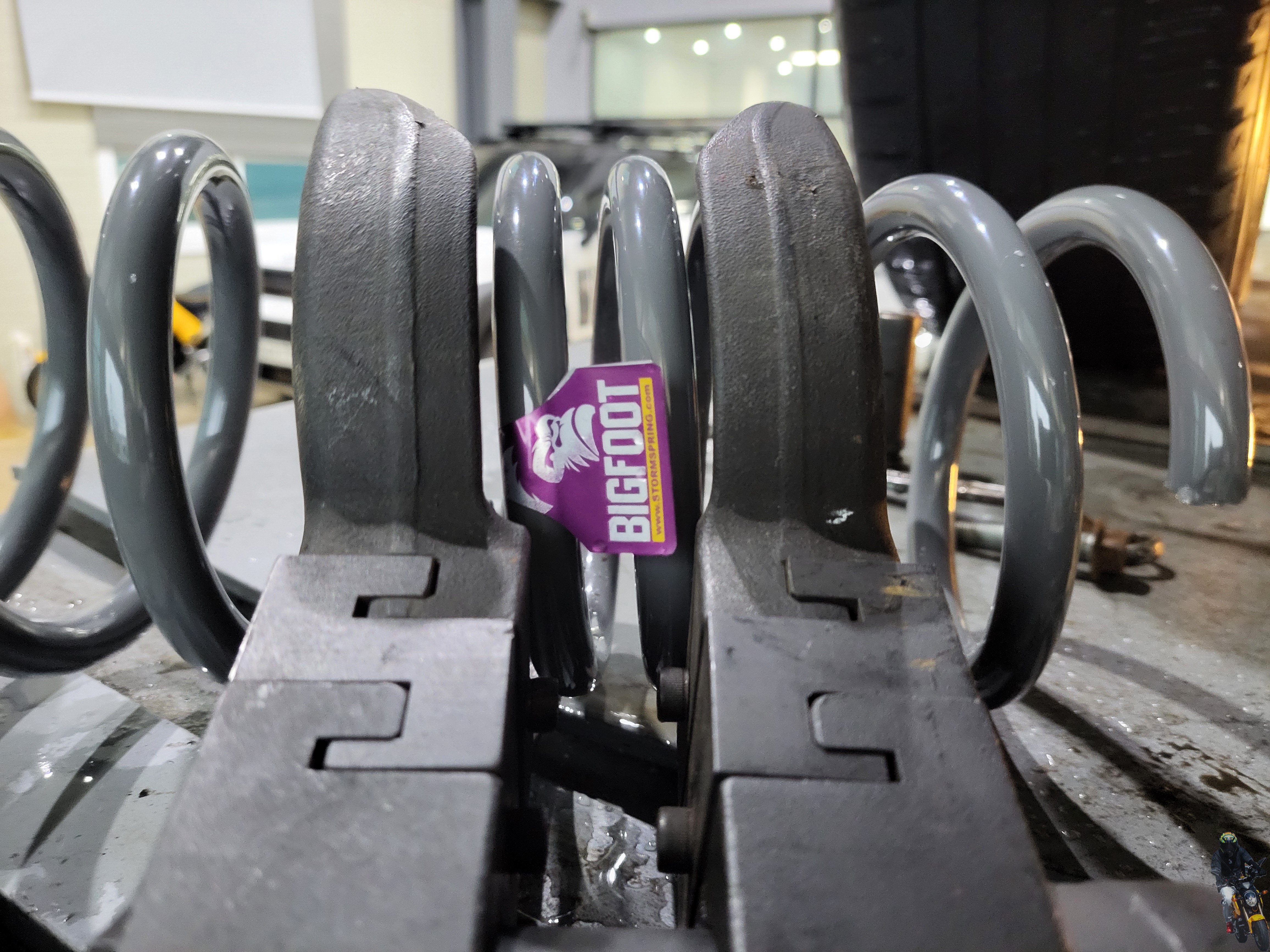 압축된 빅풋스프링을 차량에 장착하고 있습니다