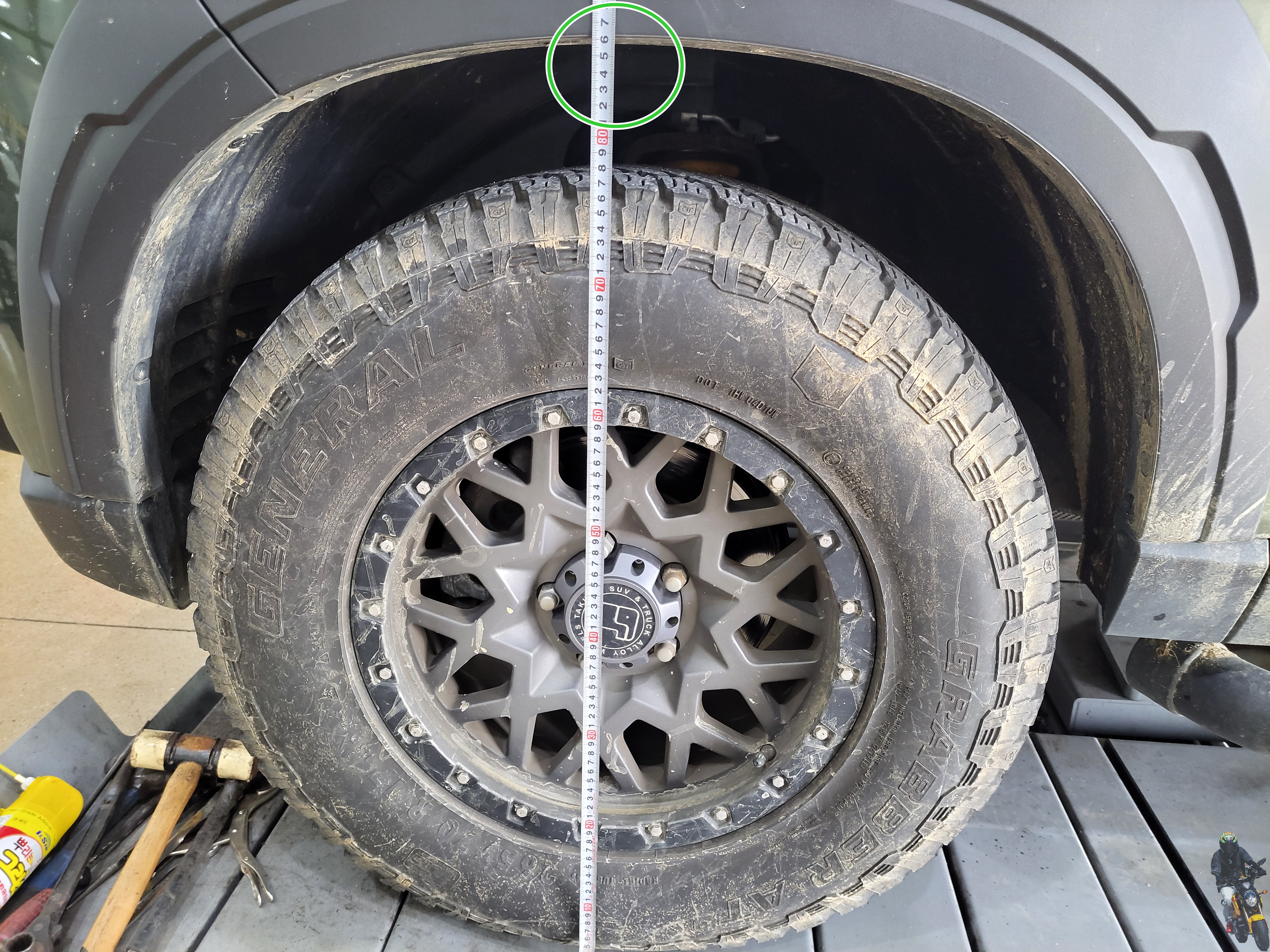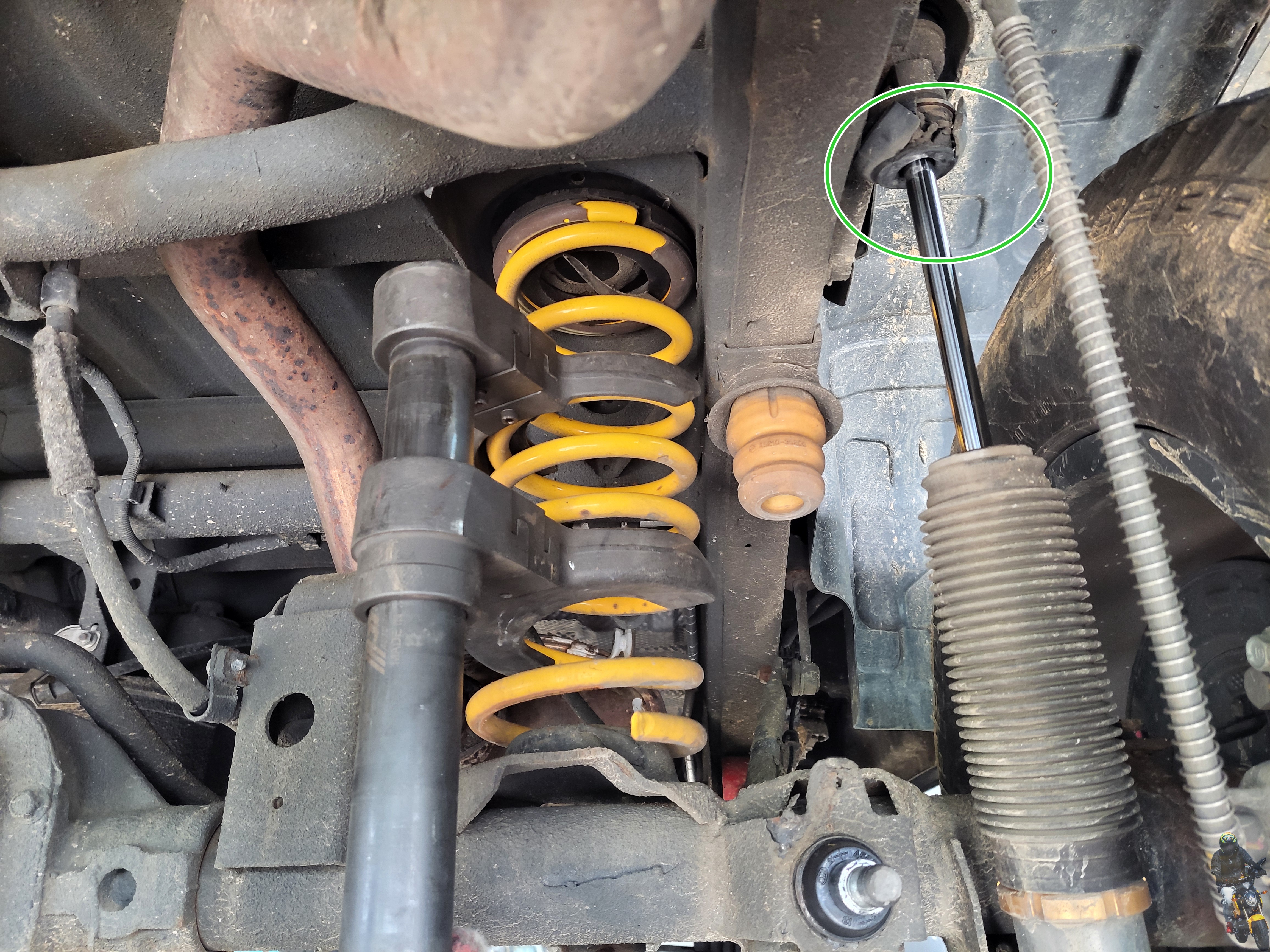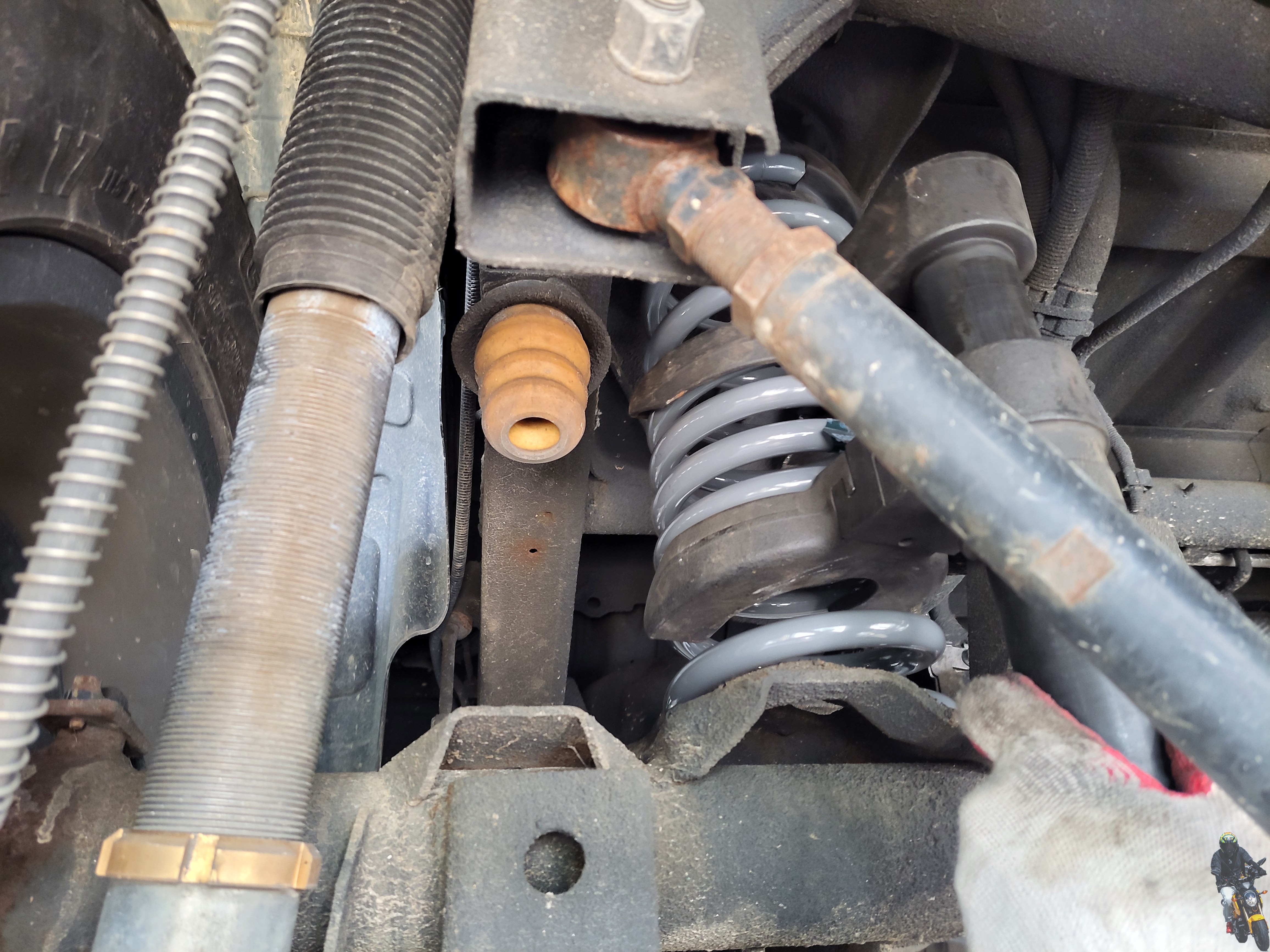 스프링이 순정이 아닌데도 차대 범프스토퍼의 간격이 얼마 남지 않았습니다