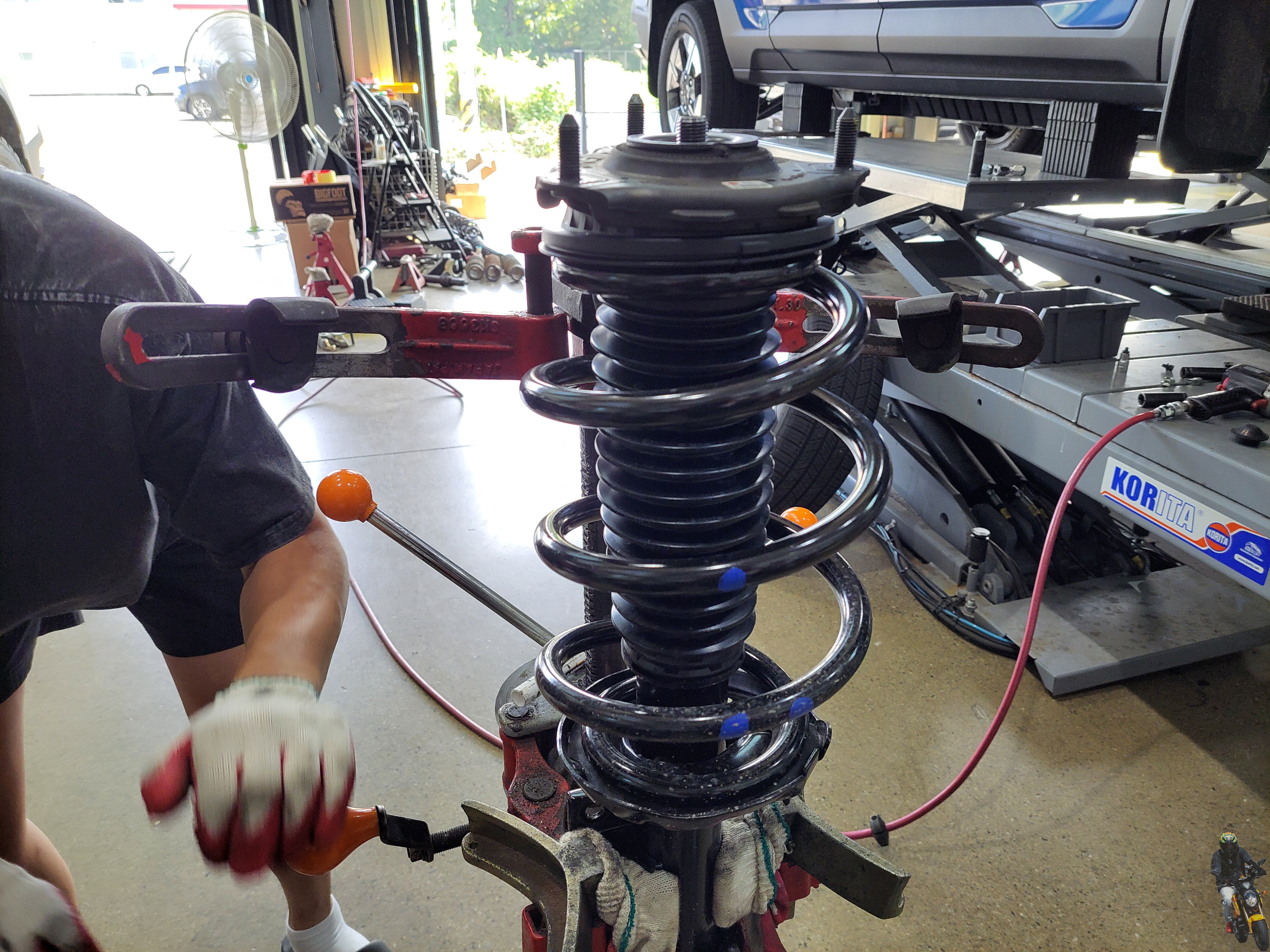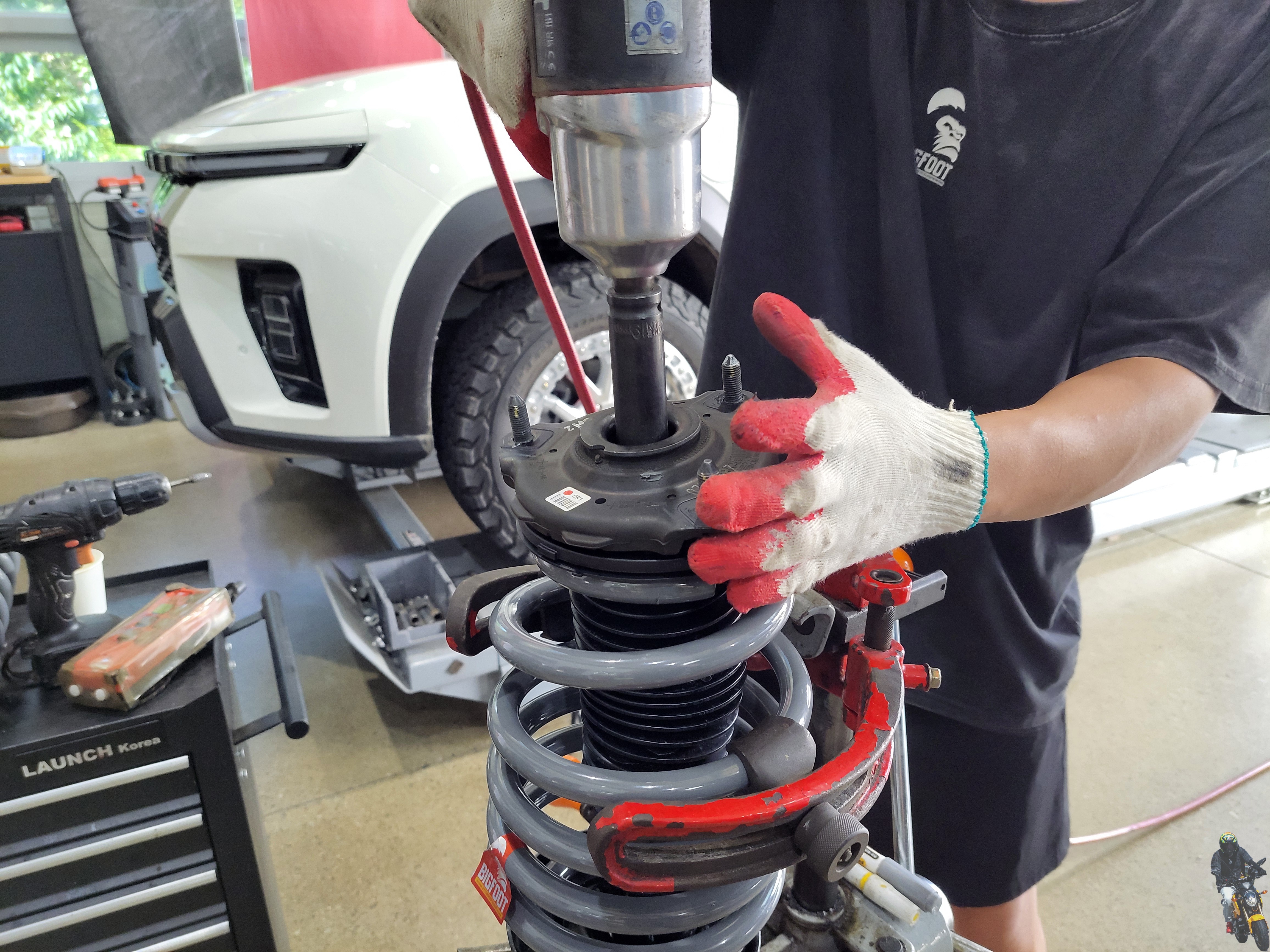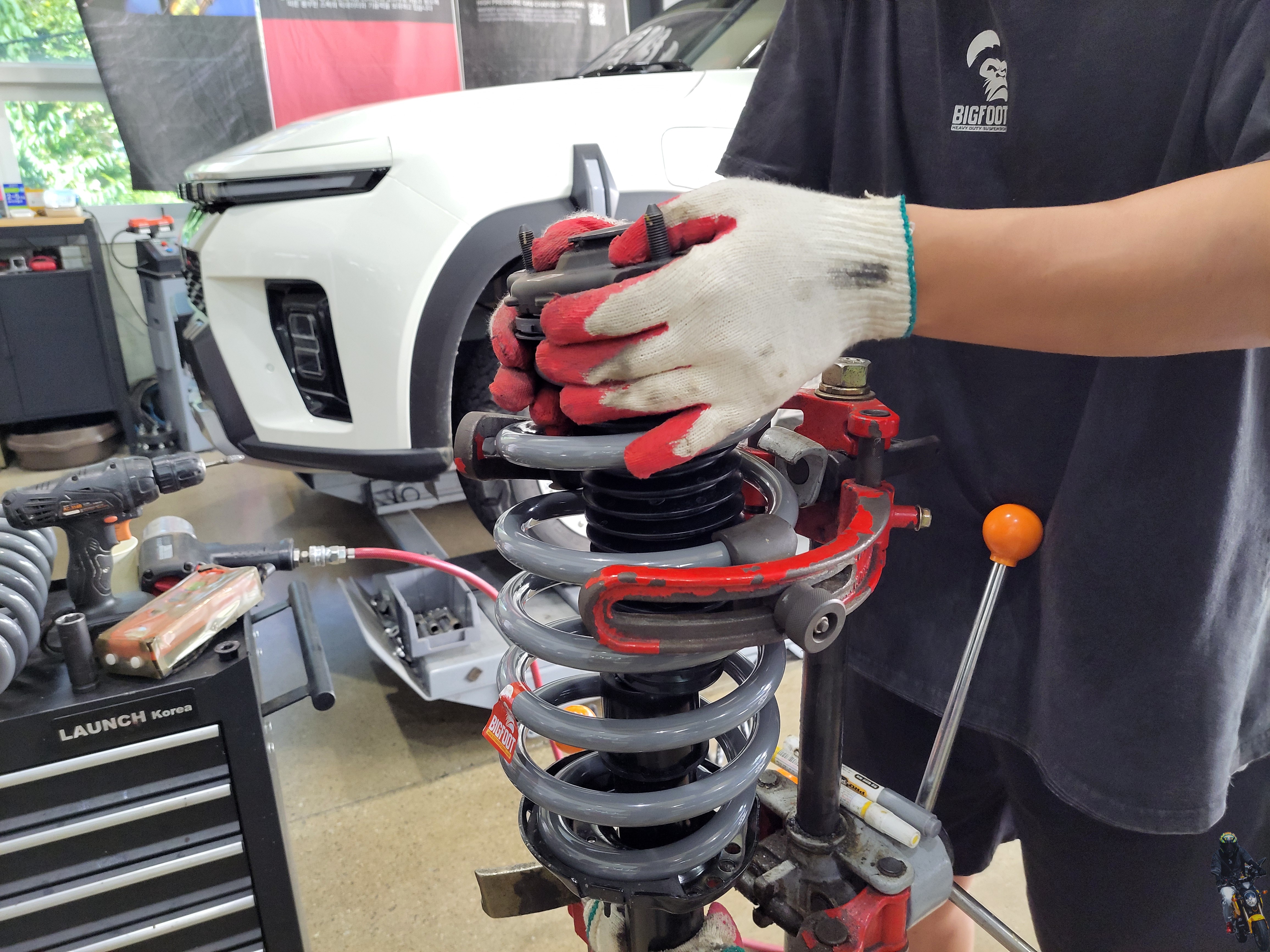프런트 순정스프링을 탈거하고 빅풋스프링으로 교체하고 있습니다