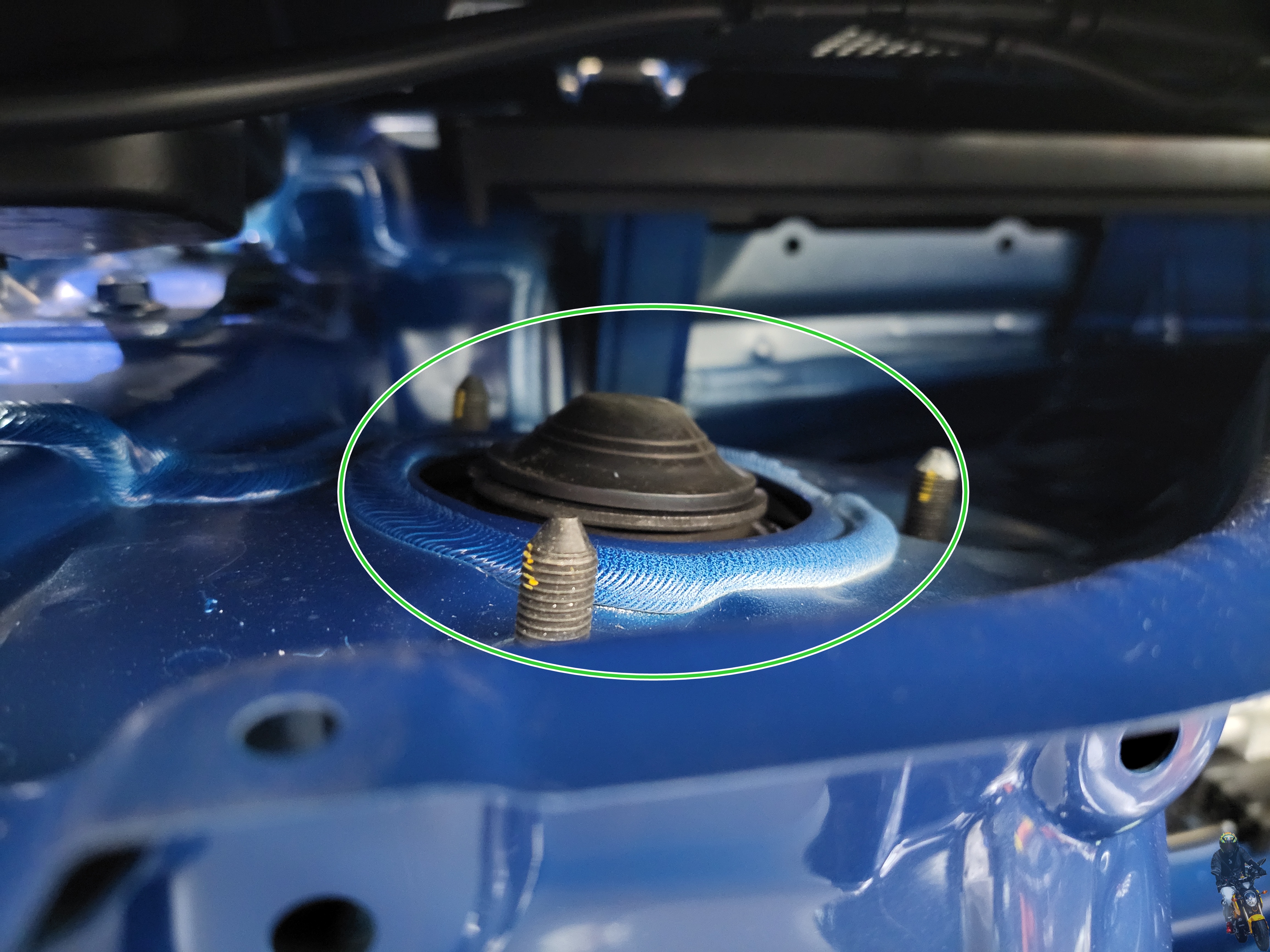 살짝 올리면 쇼바 마운트 고정너트가 보입니다