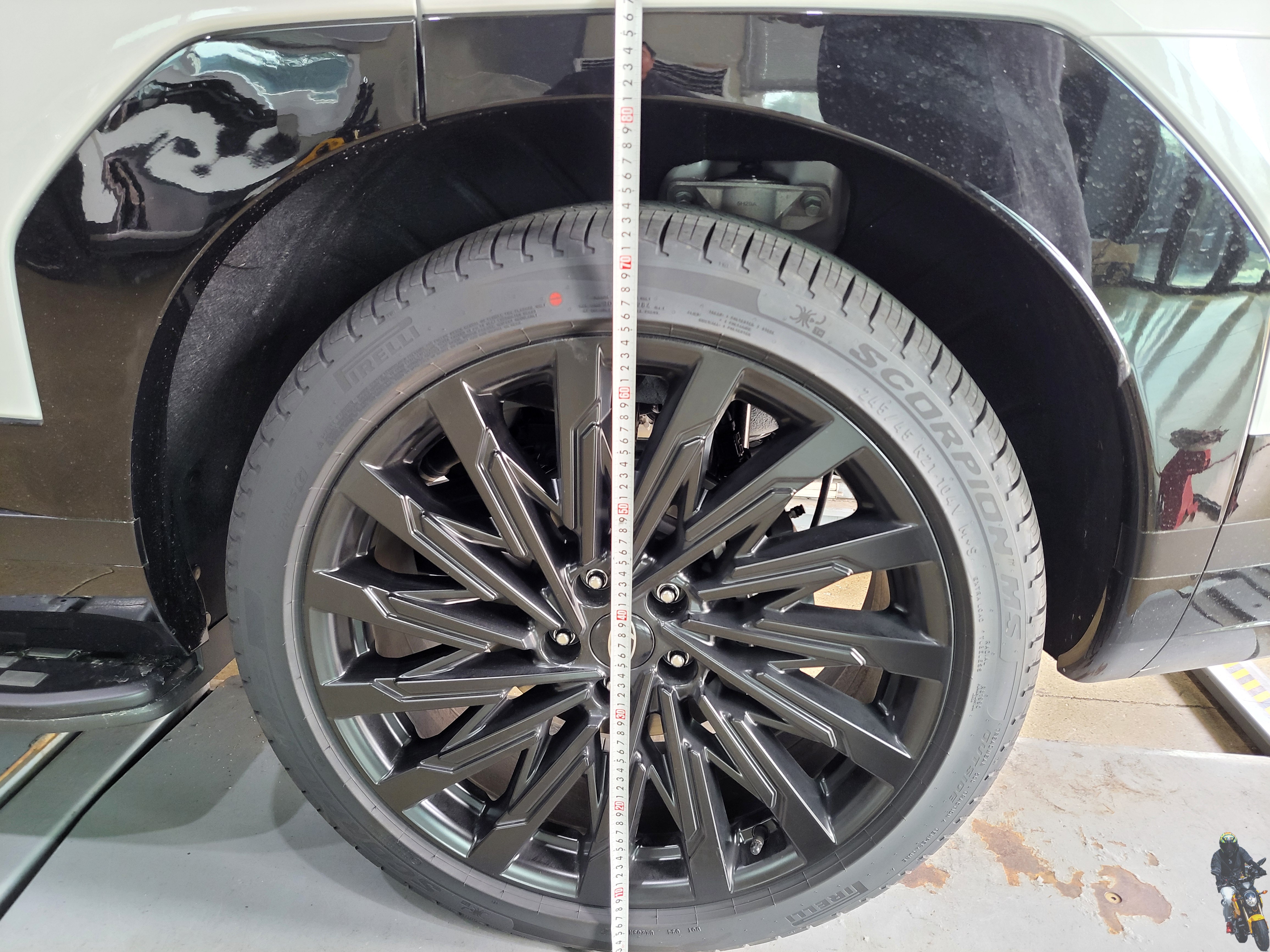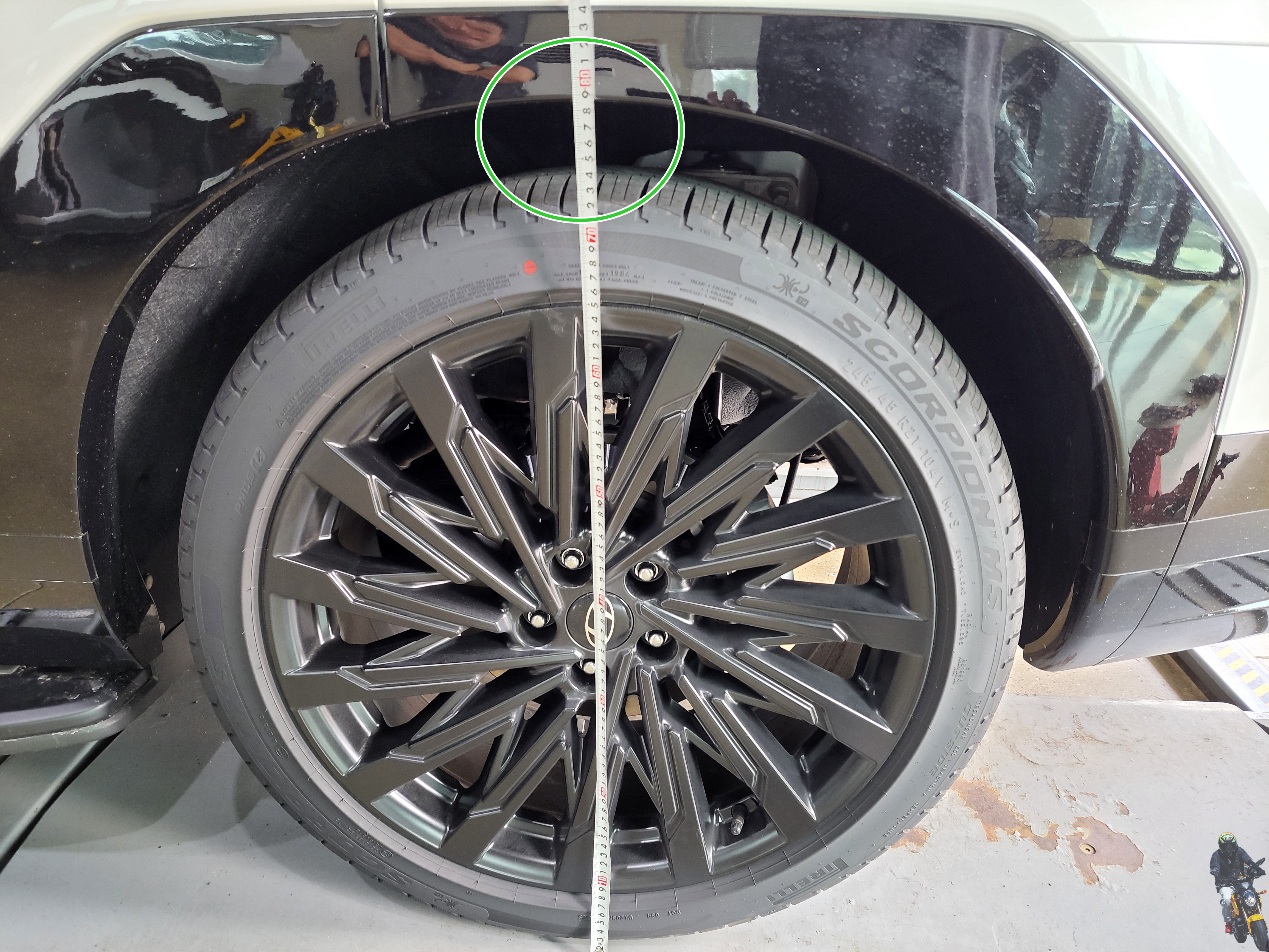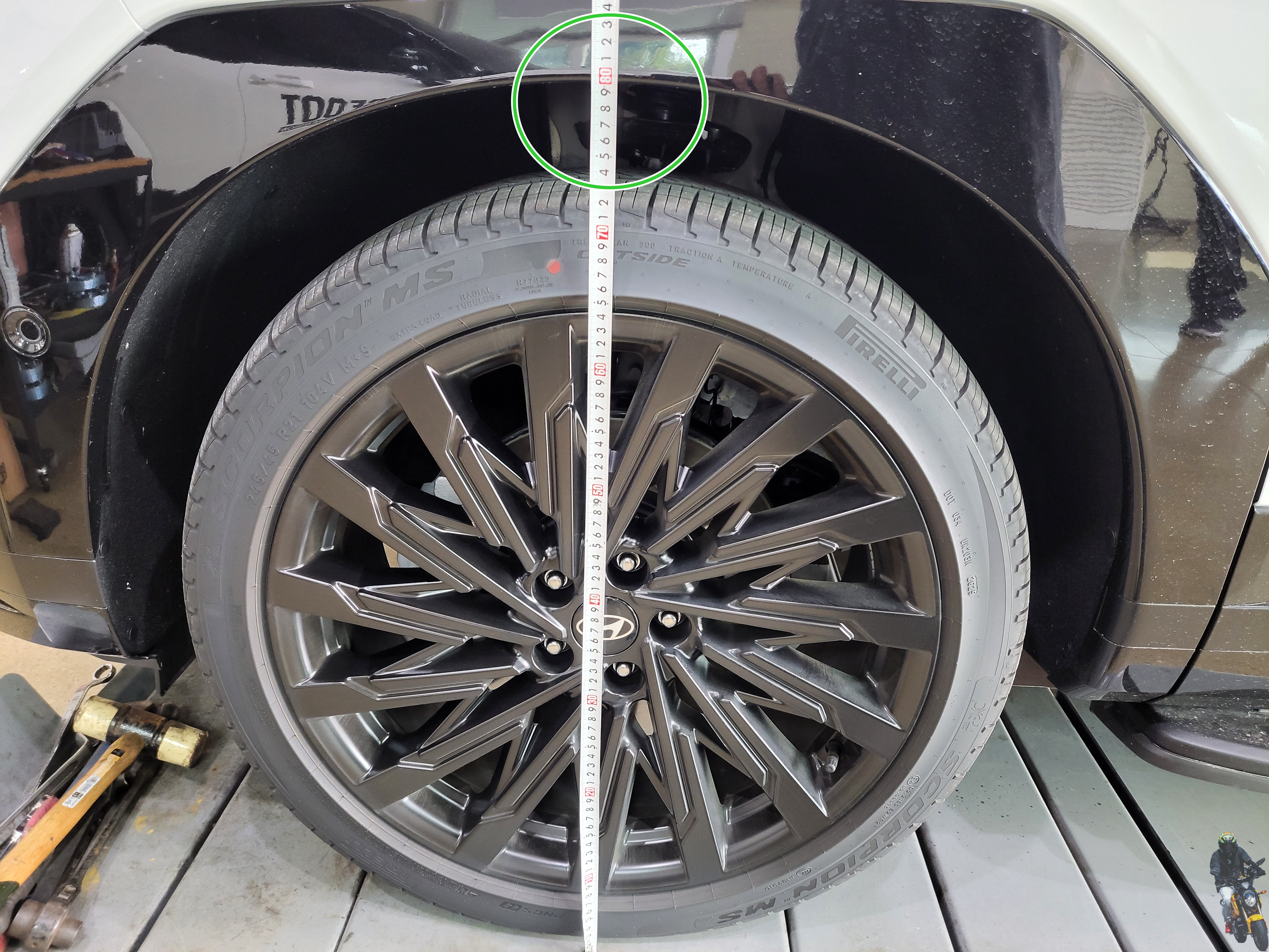 입고된 싼타페MX5 차량의 프런트 리어 차고의 편차는 크지 않습니다