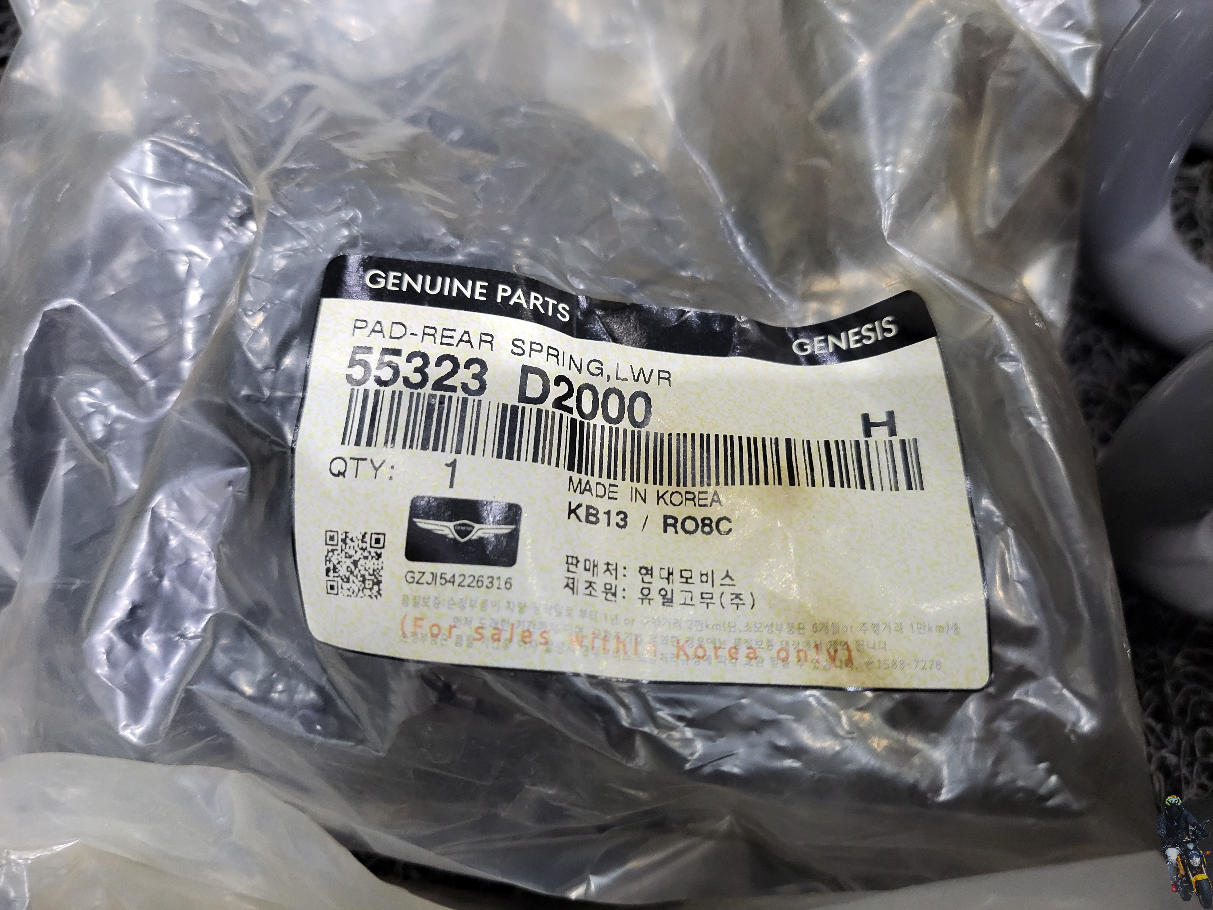 차주분께서 직접 구매해 오신 리어 스프링 상하단 순정 고무패드입니다