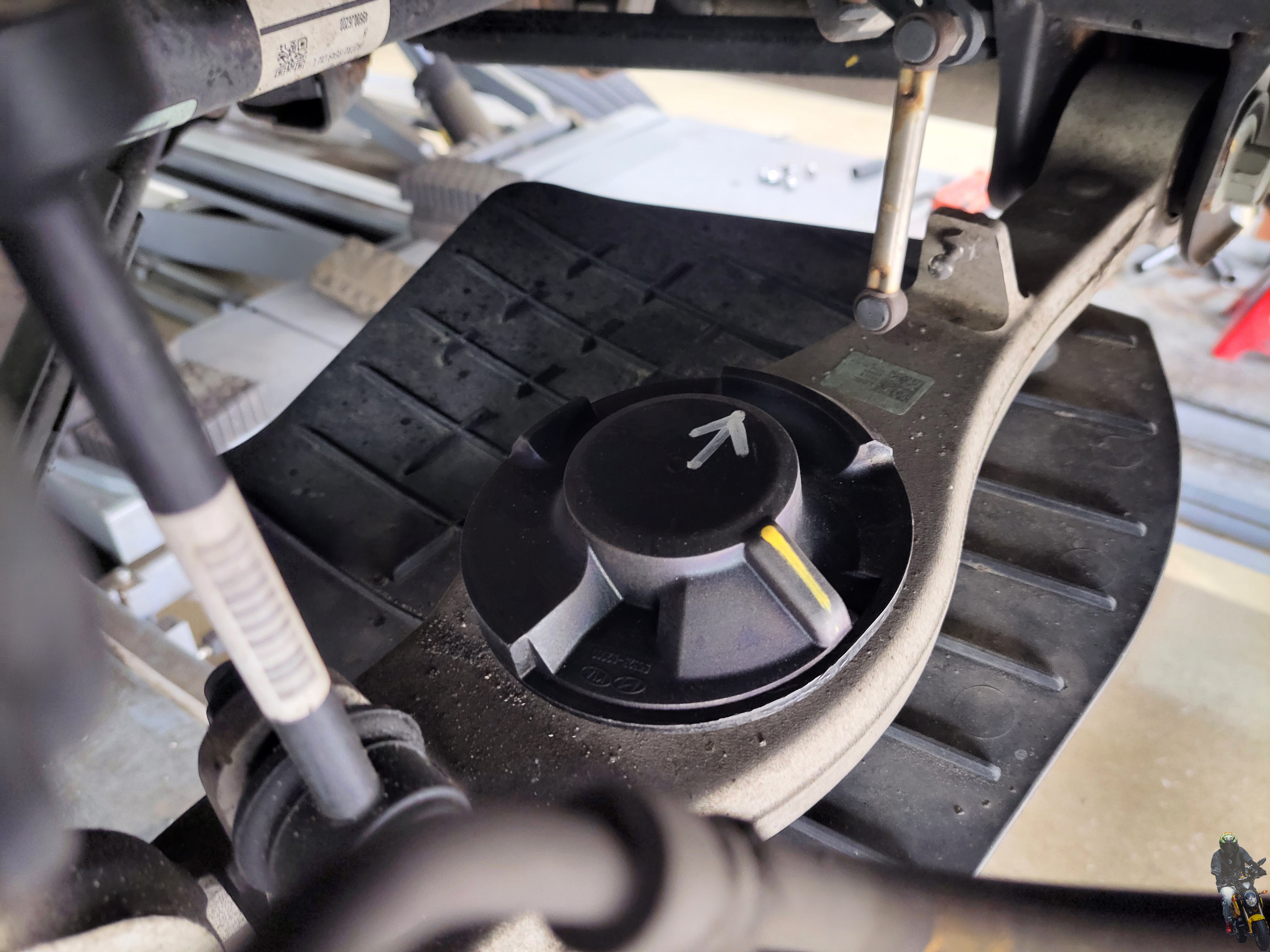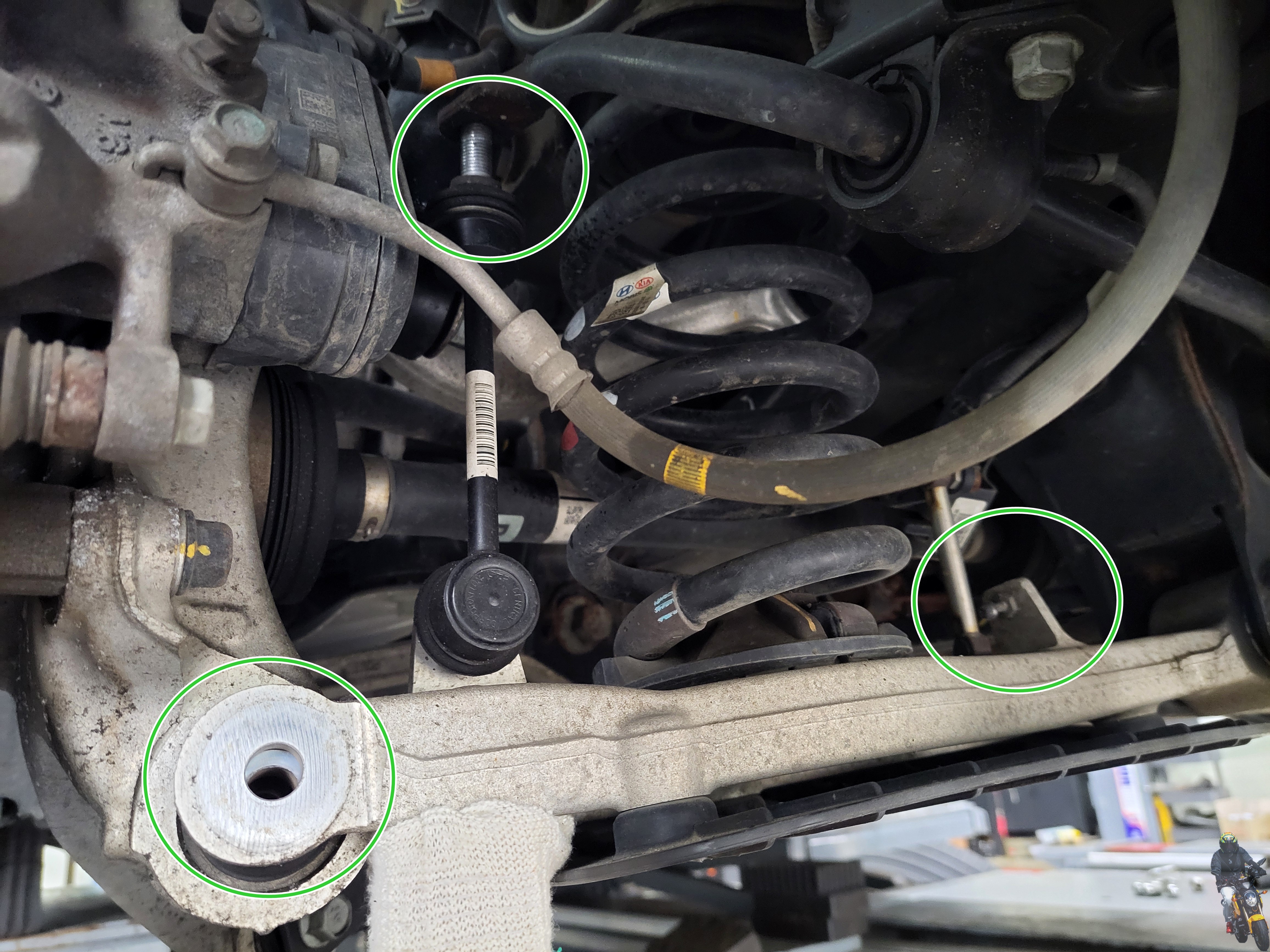 로우암 아래쪽에 쟈키를 받히고 압축을 하면서 로우암과 너클을 고정하고