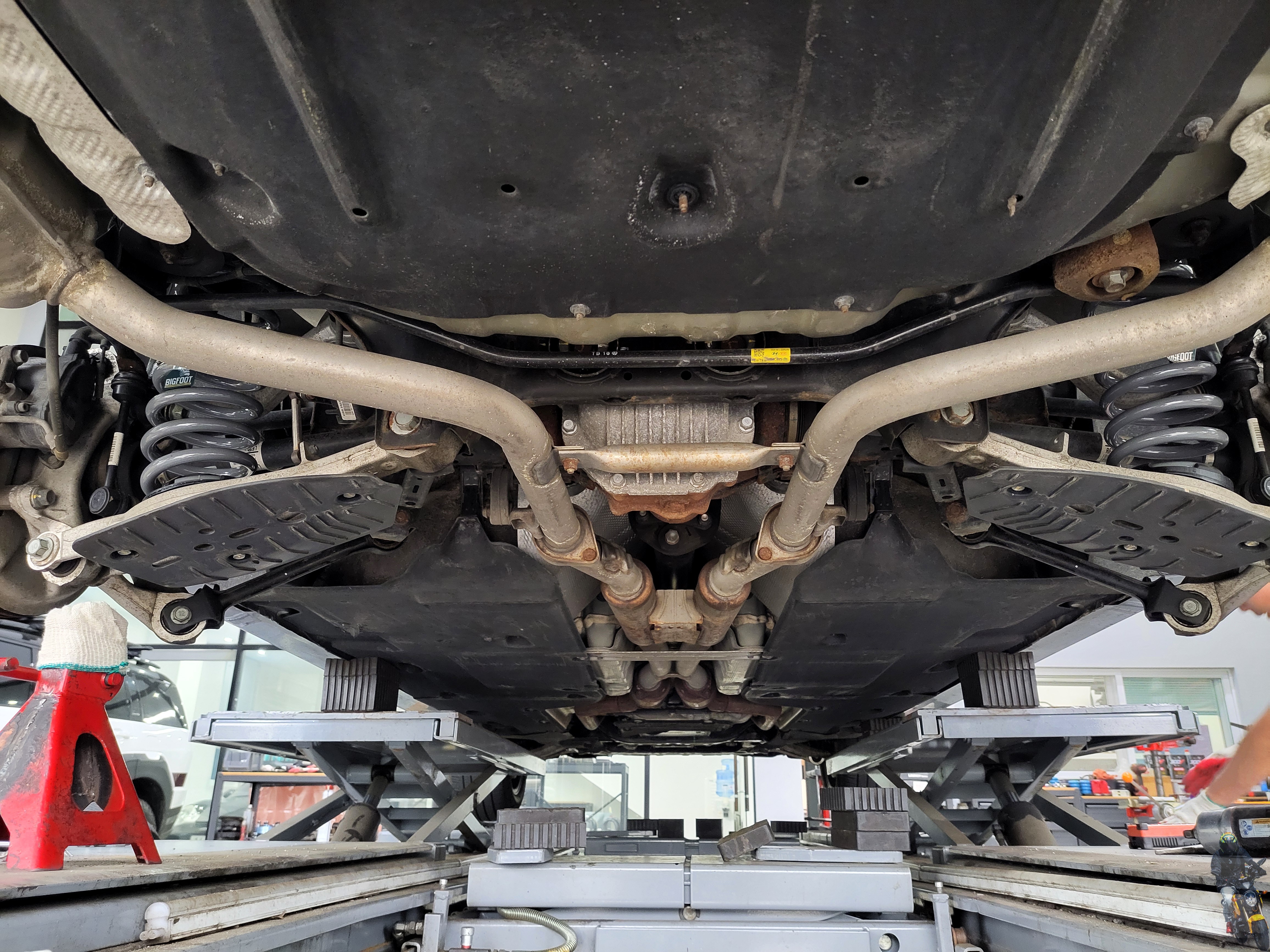 리어 스프링을 빅풋스프링으로 교체하기위해 차량을 리프트에서