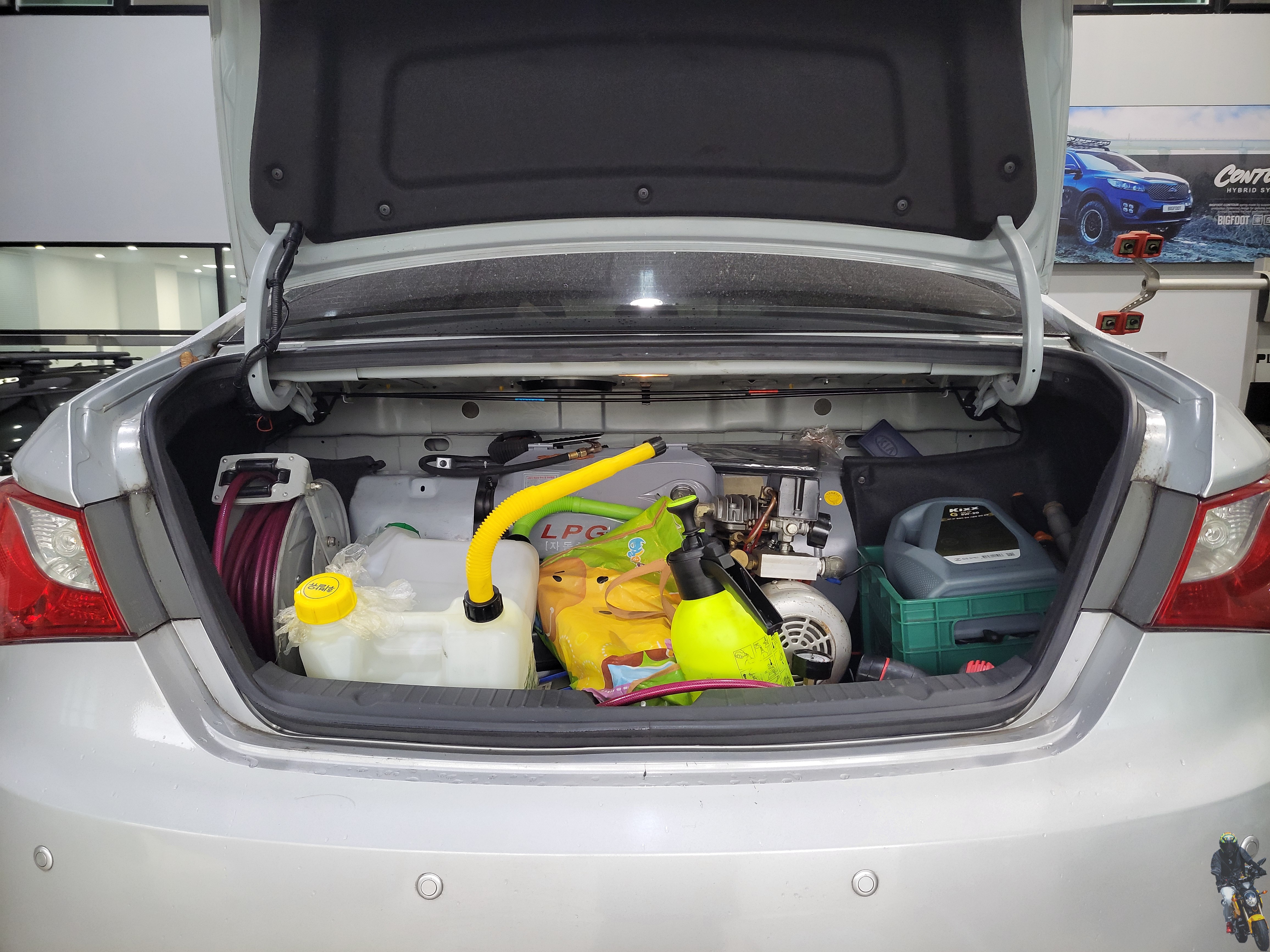 차량이었네요 트렁크 공간은 이렇게 각종 공구 장비가 적재 되어있습니다
