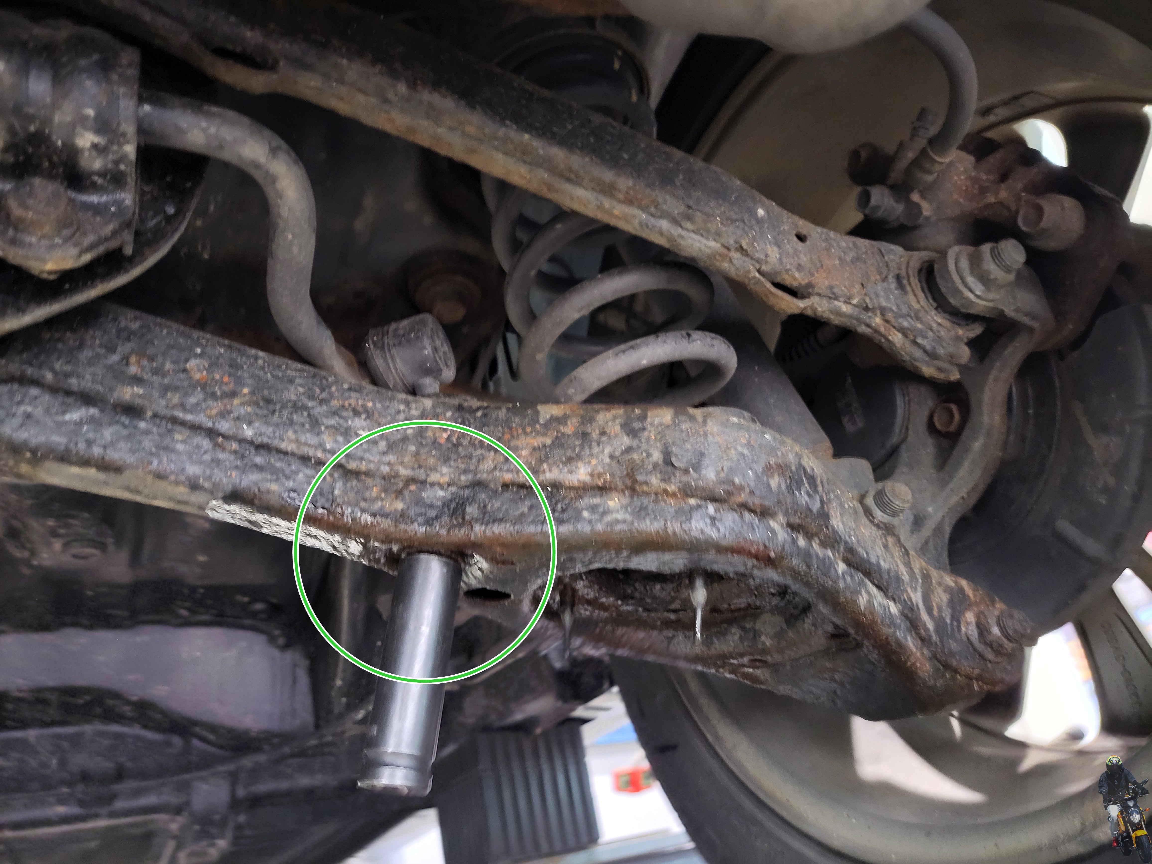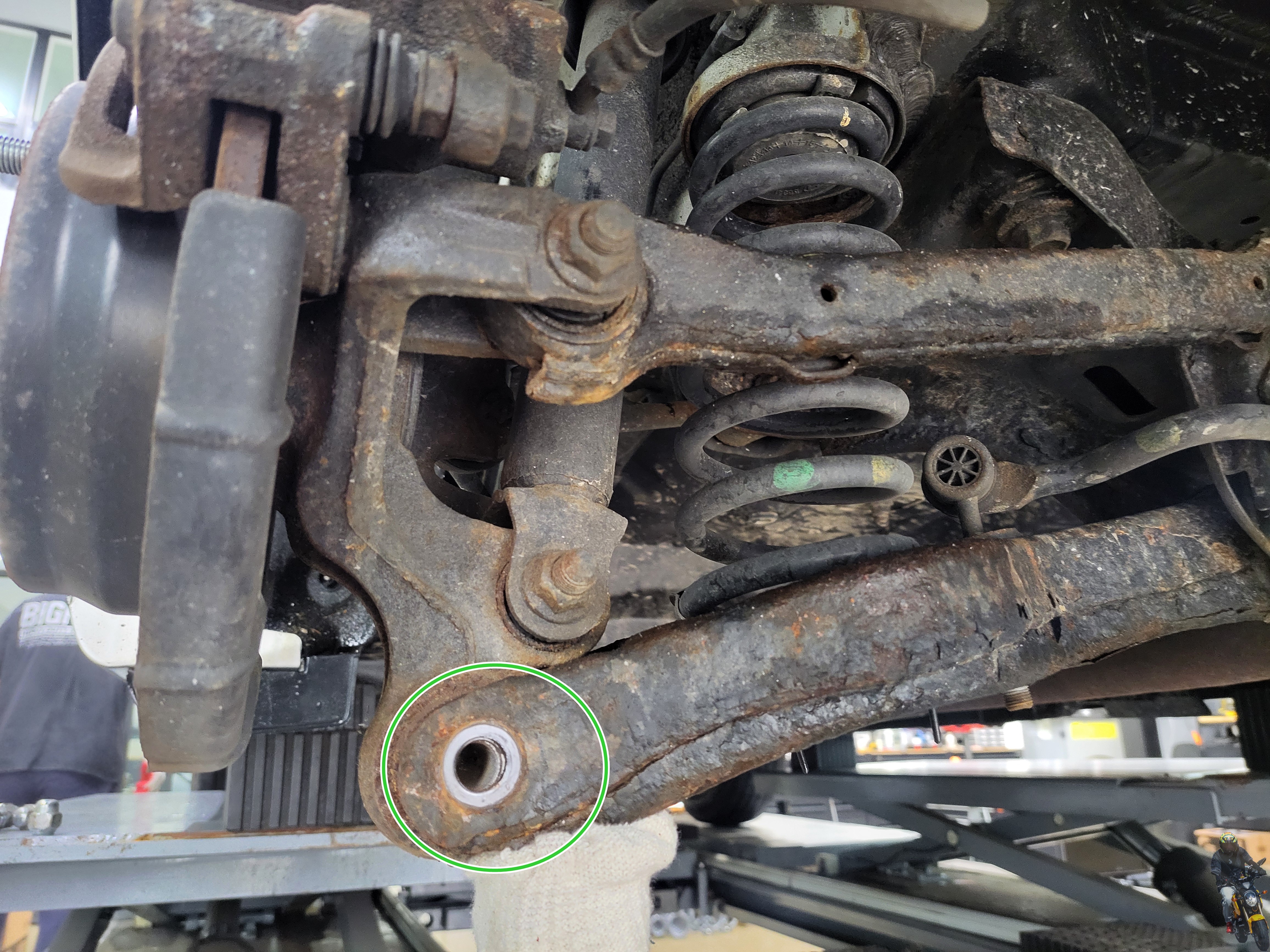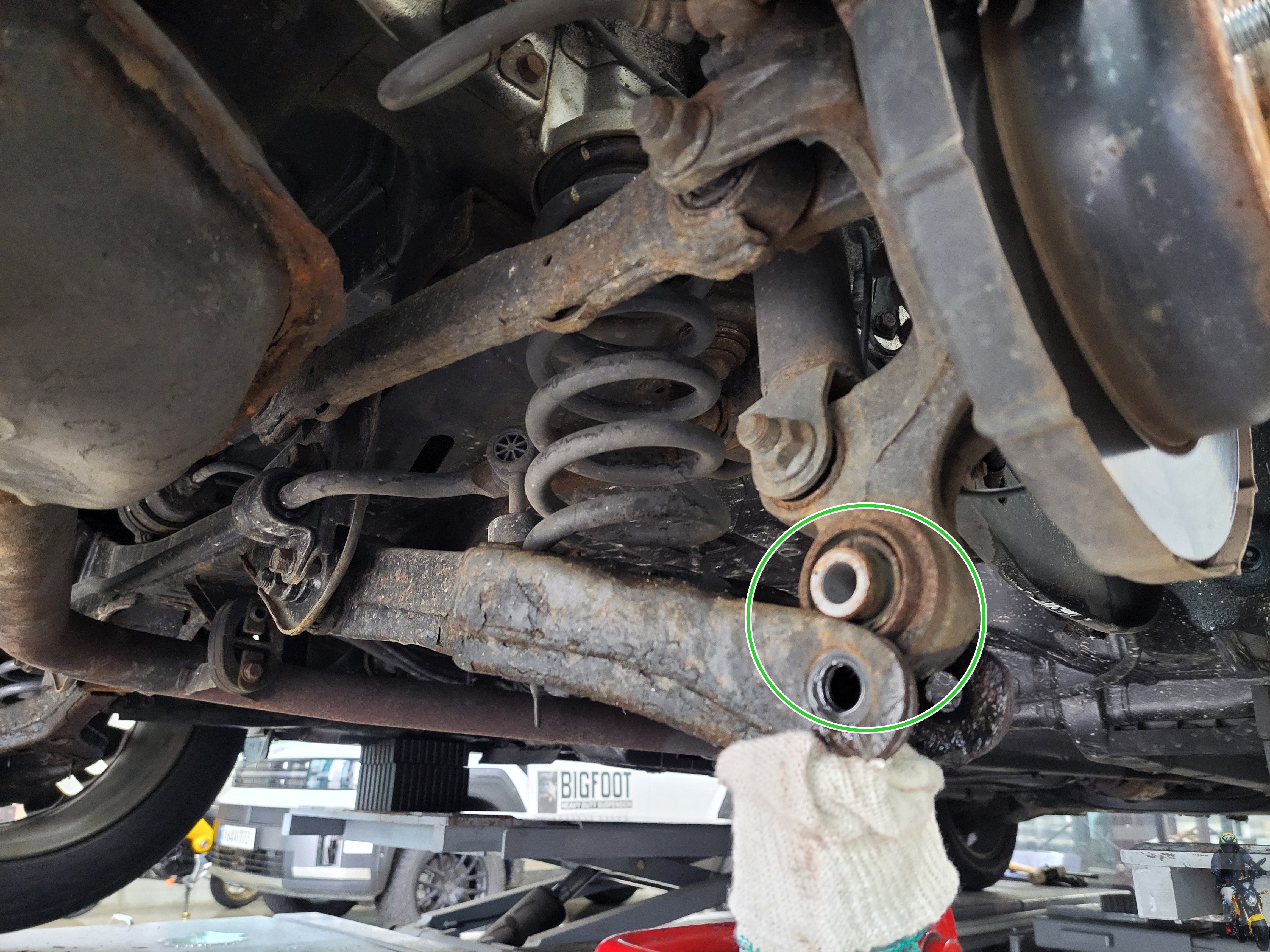 너클과 로우암의 연결부의 볼트너트를 탈거하였습니다