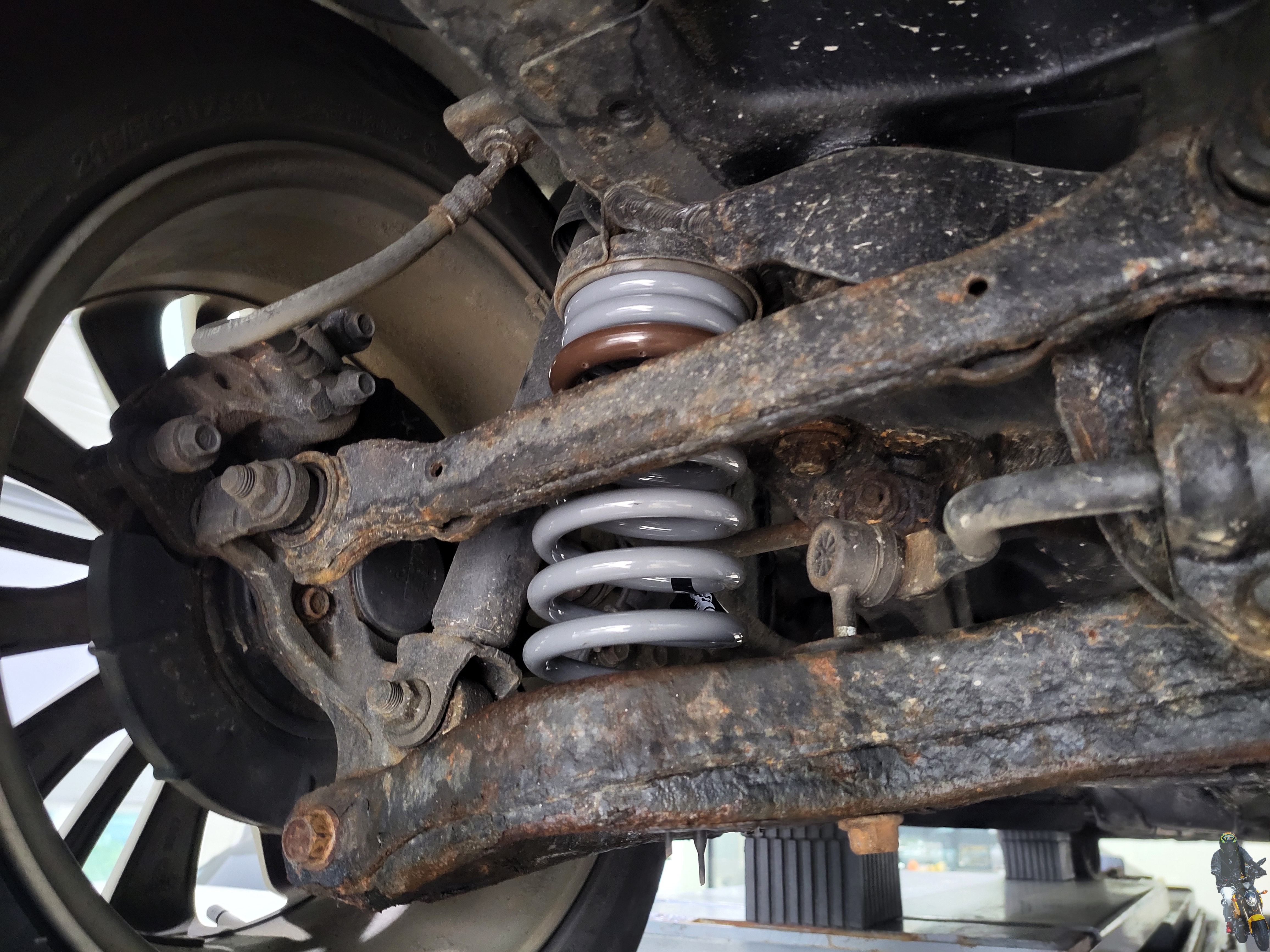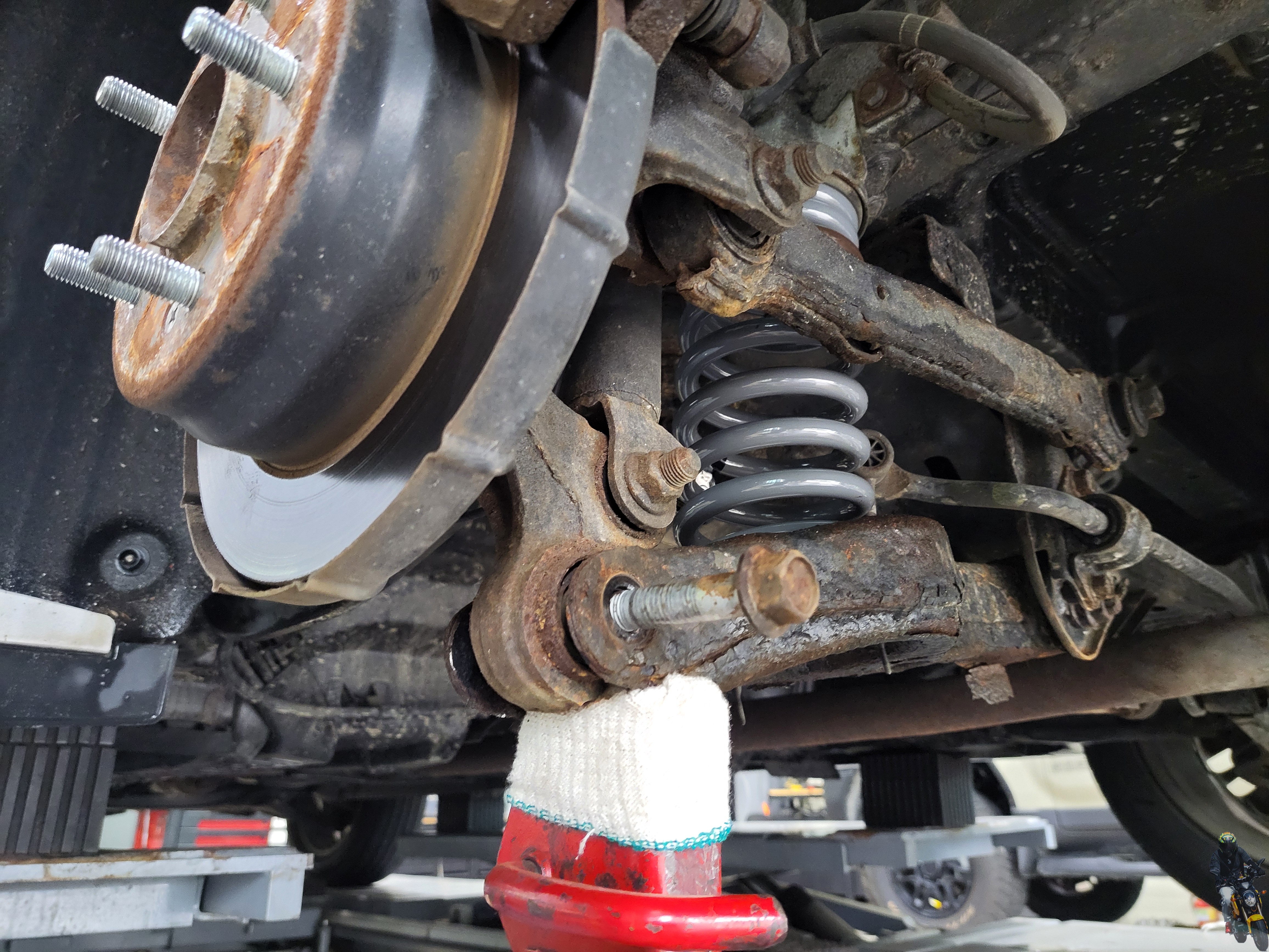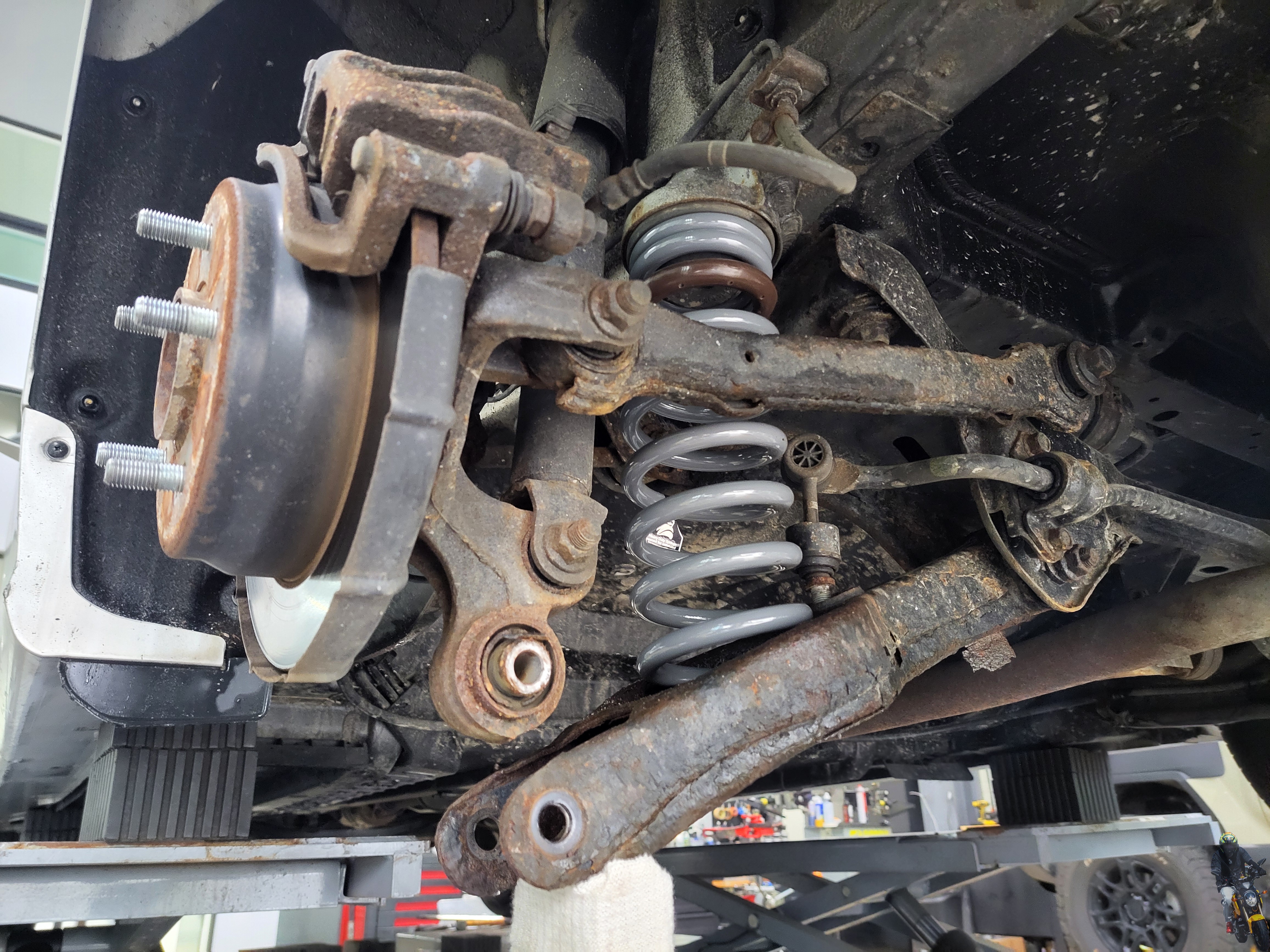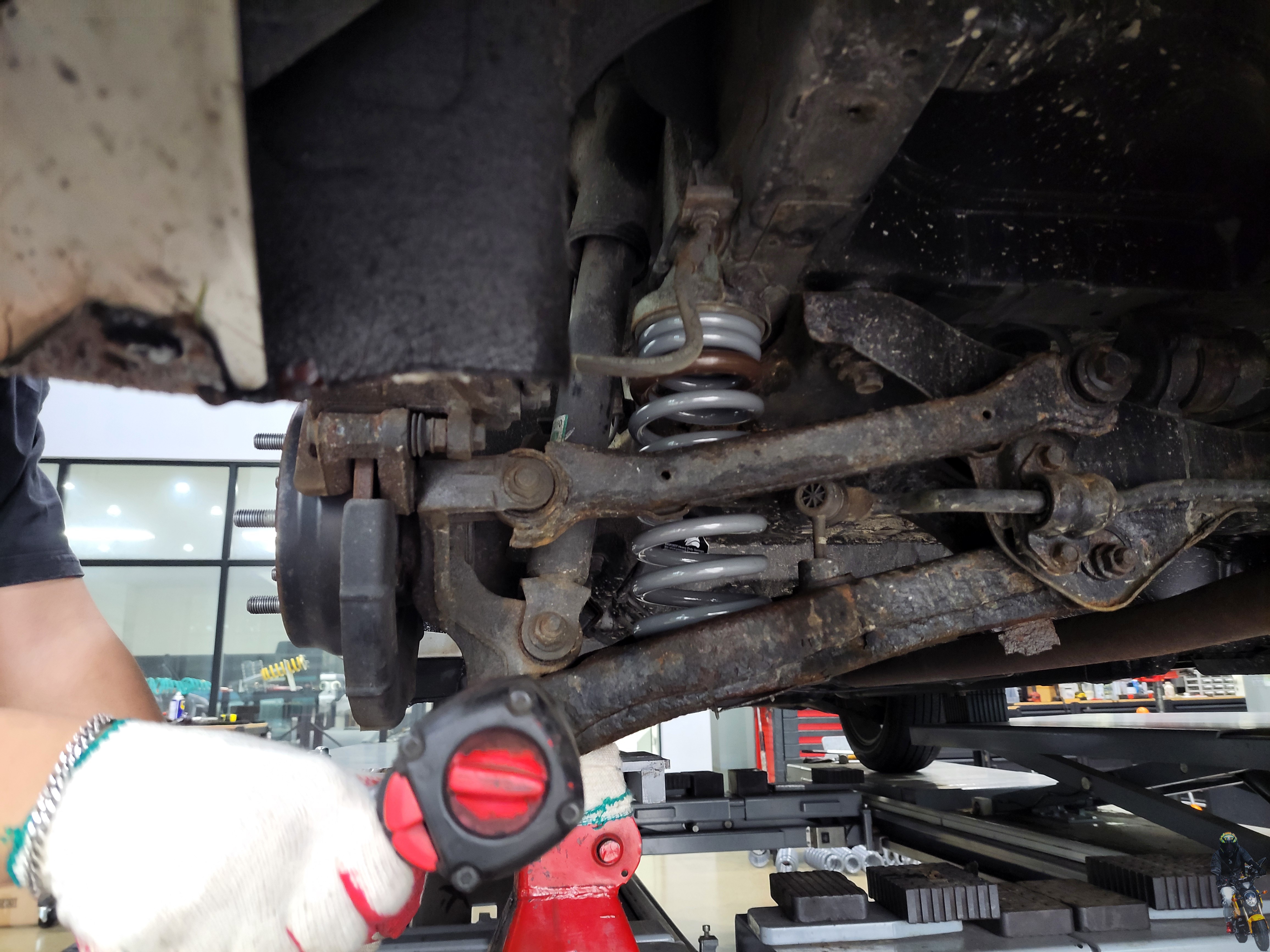 멀티링크의 구조인 리어 스프링을 탈거하기 위해 준비하고 있습니다