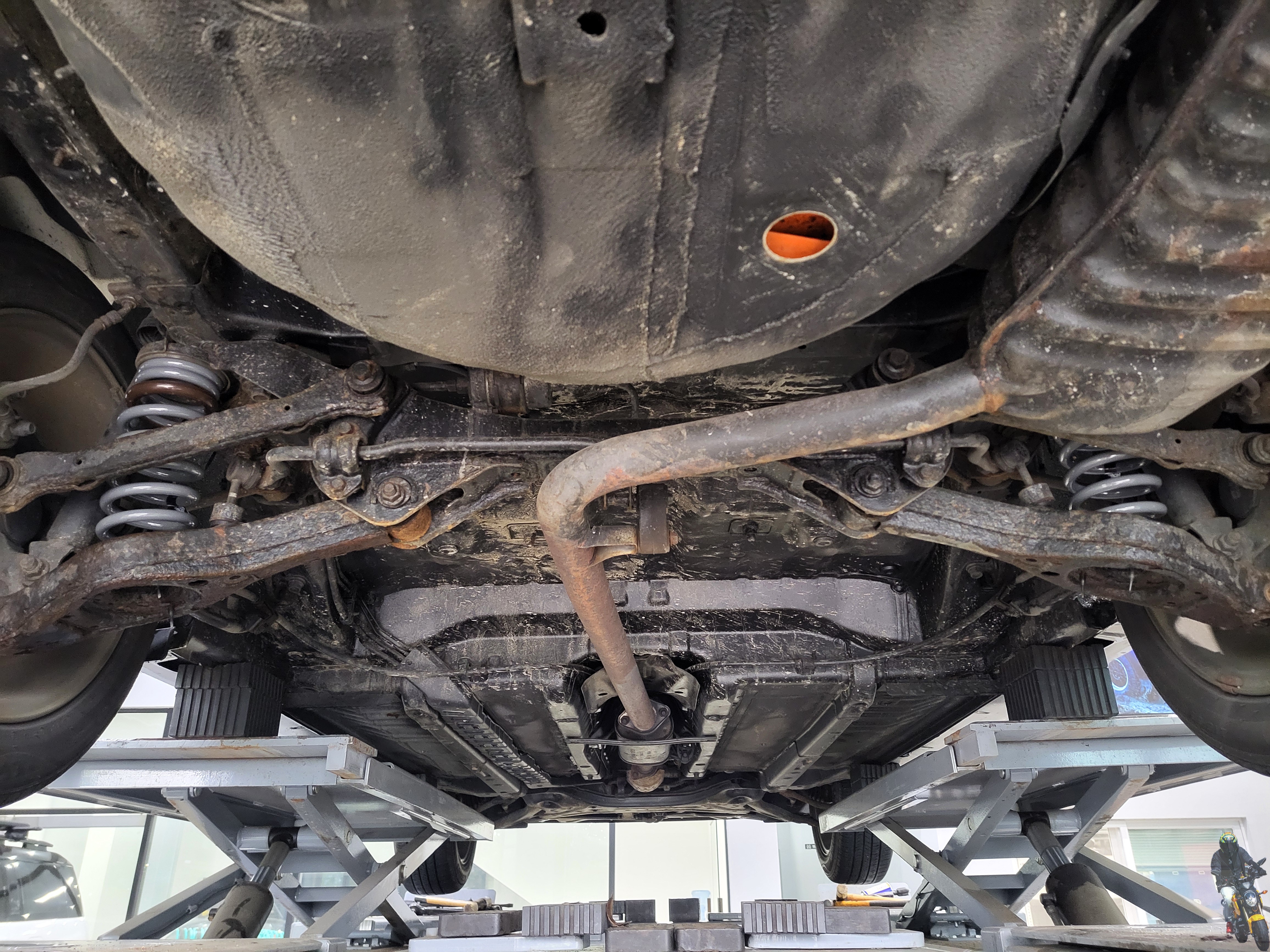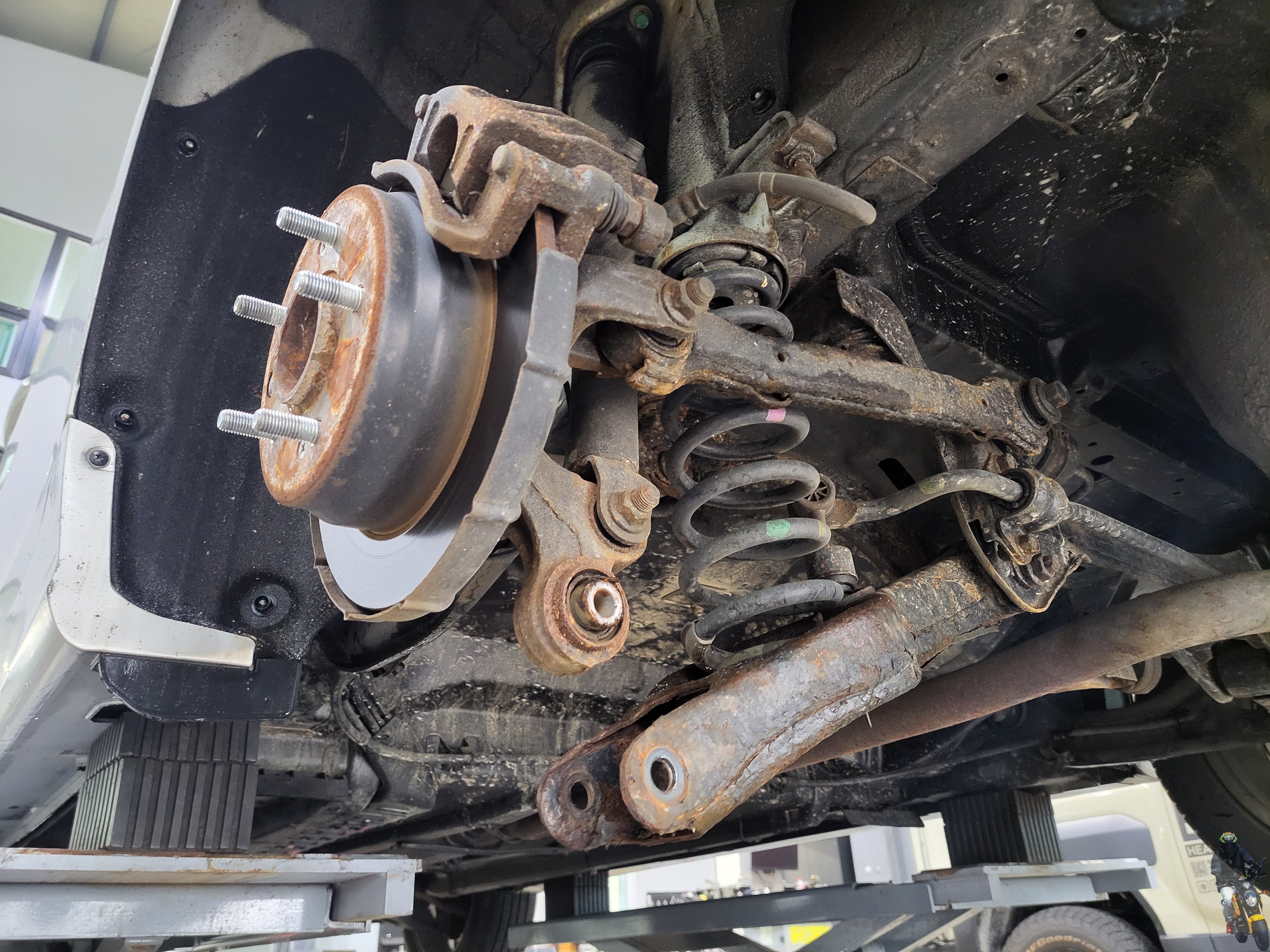 차량의 리어 서스펜션을 보게 되면 언더코팅을 시공한 거 같은데