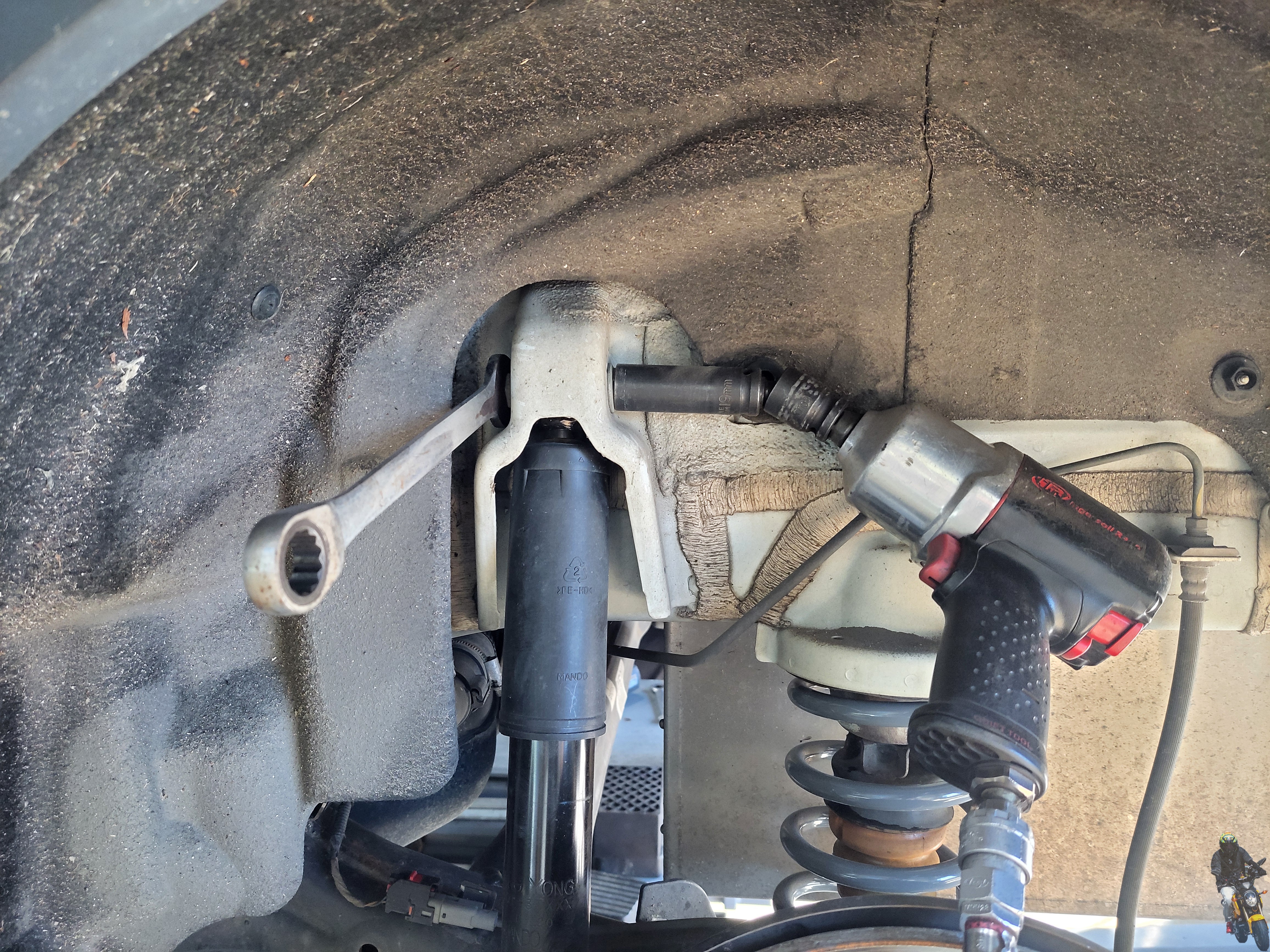 순정쇼바 상단 고정 볼트너트를 탈거하고 있습니다