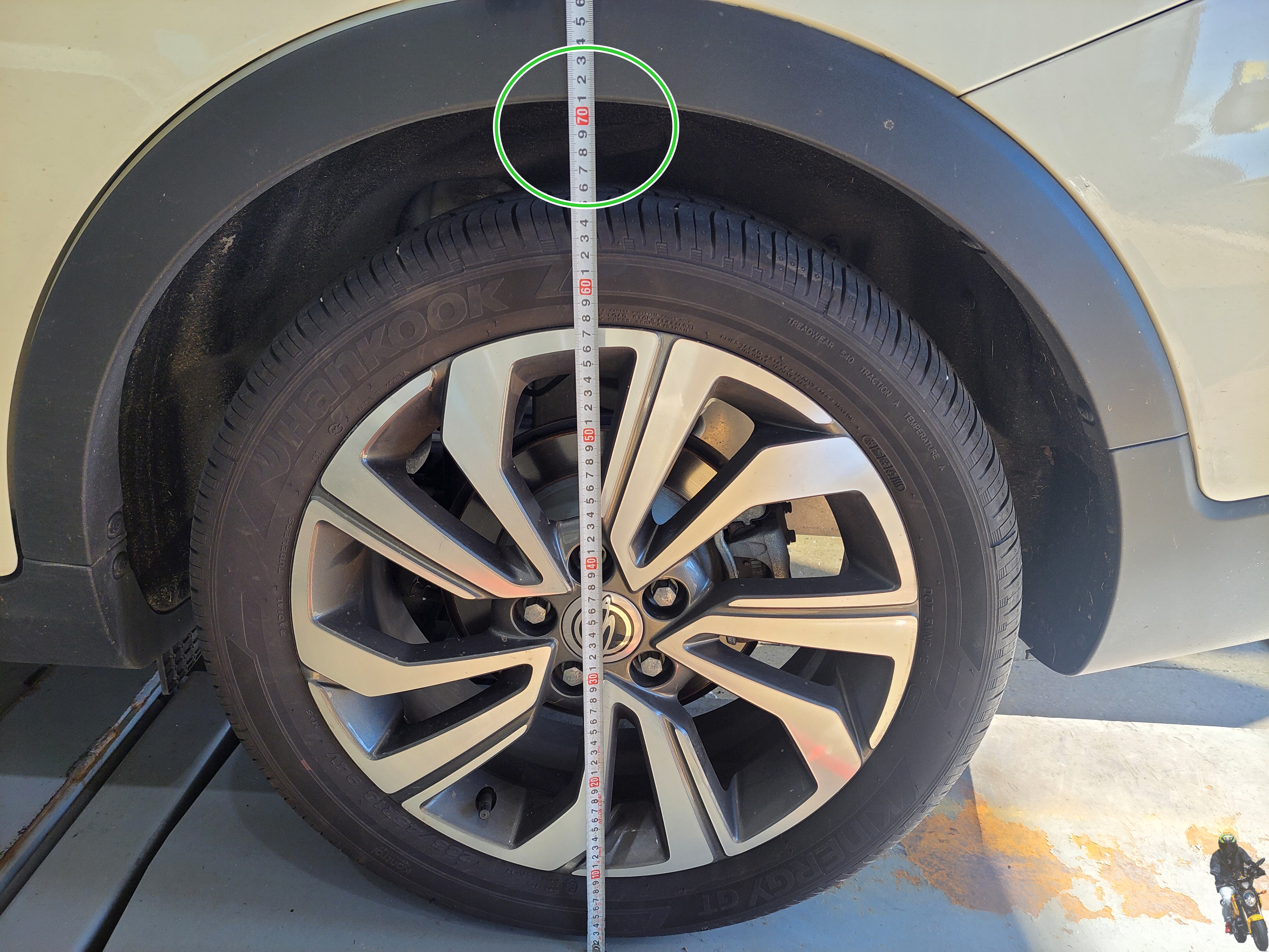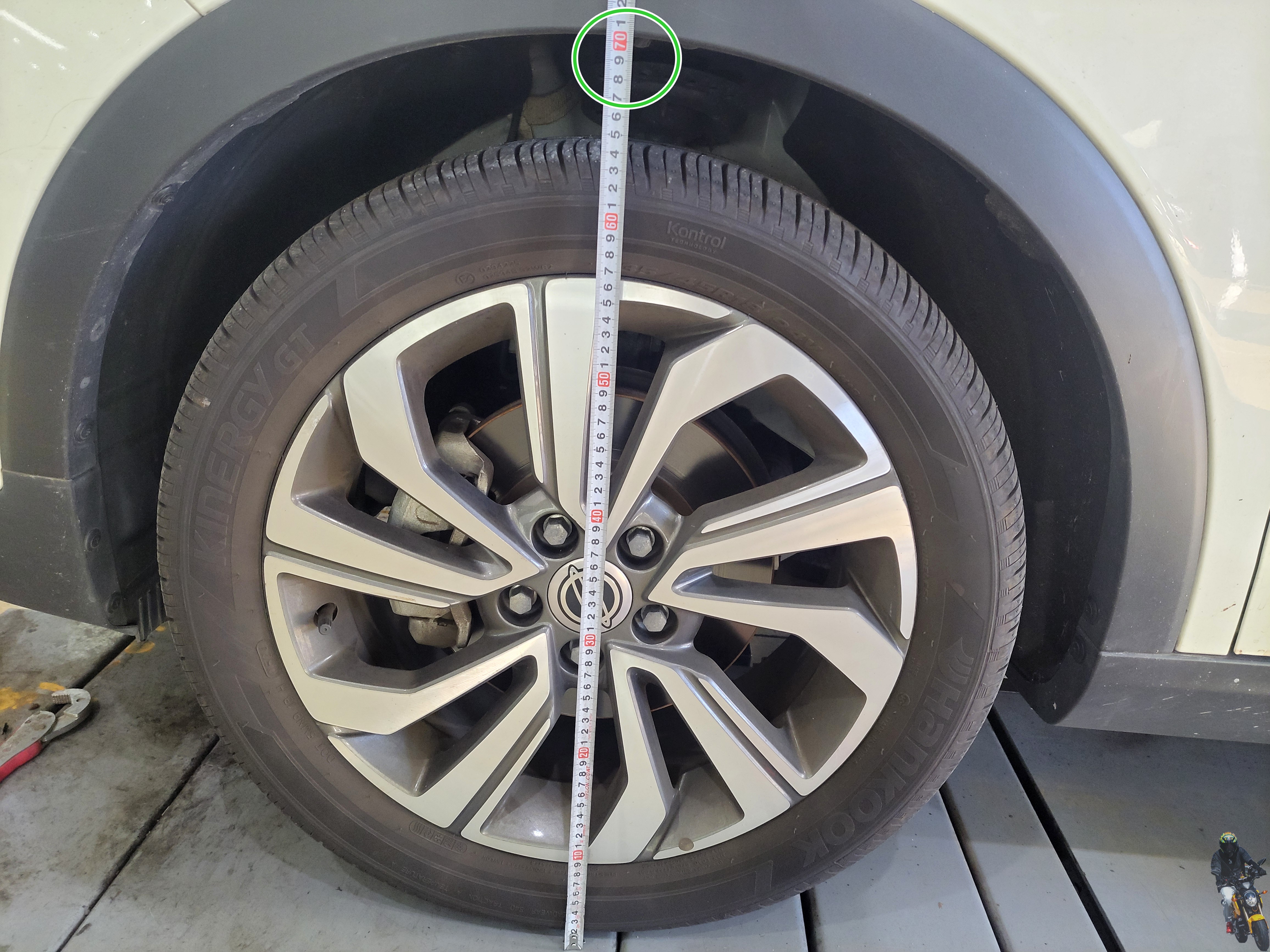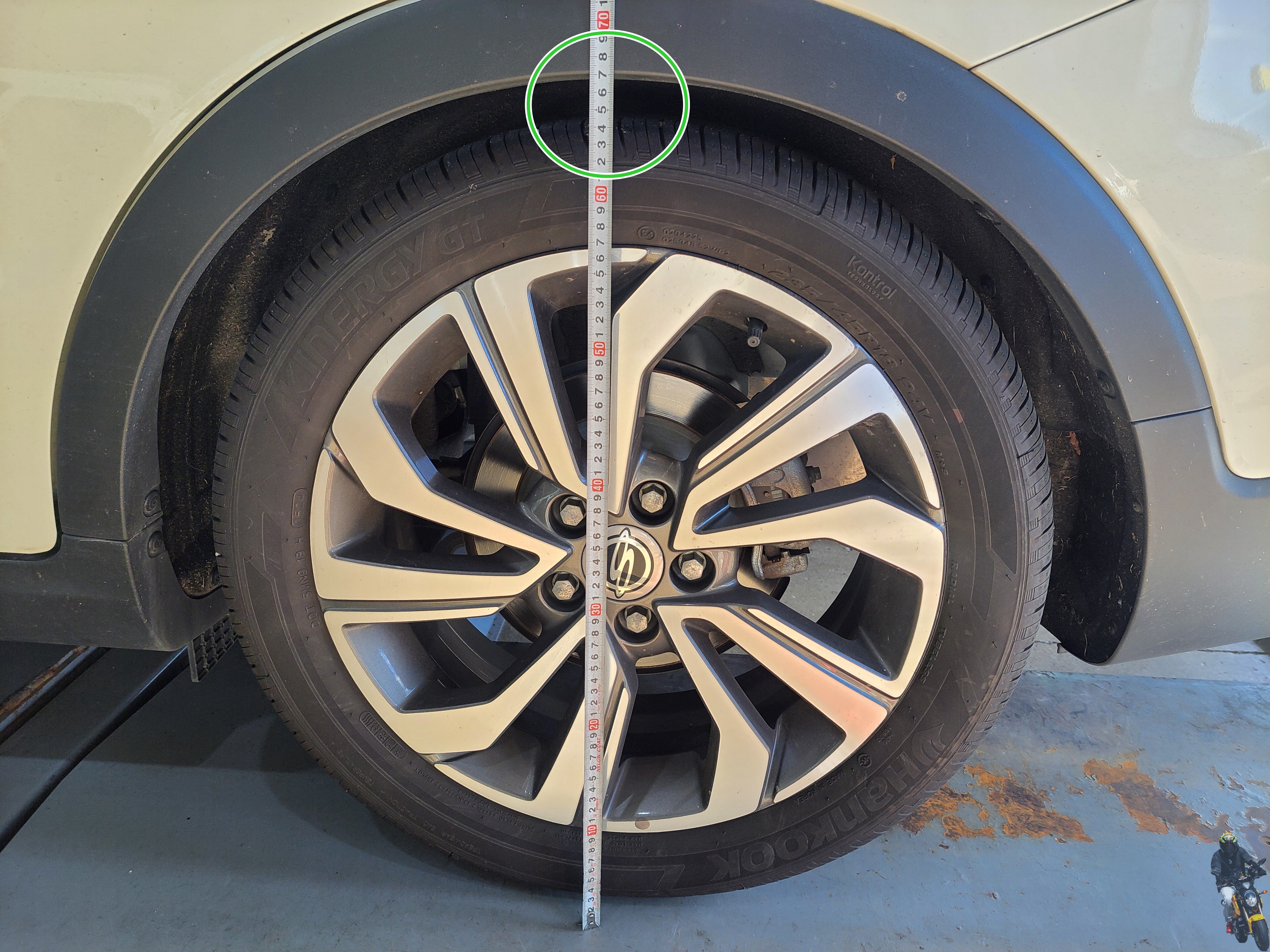 중량이 늘어나서 리어 차고가 많이 낮아져 있는 상태입니다