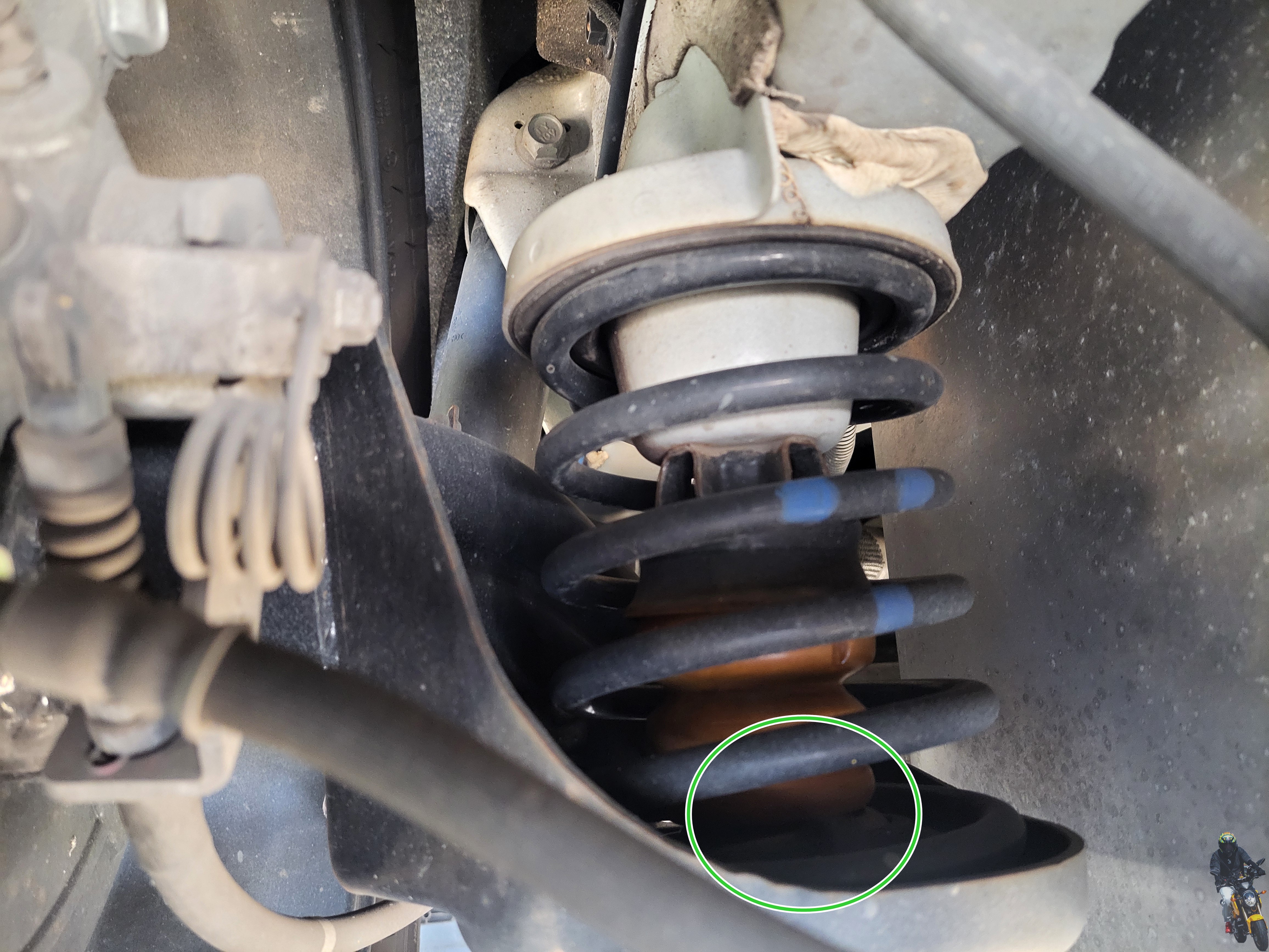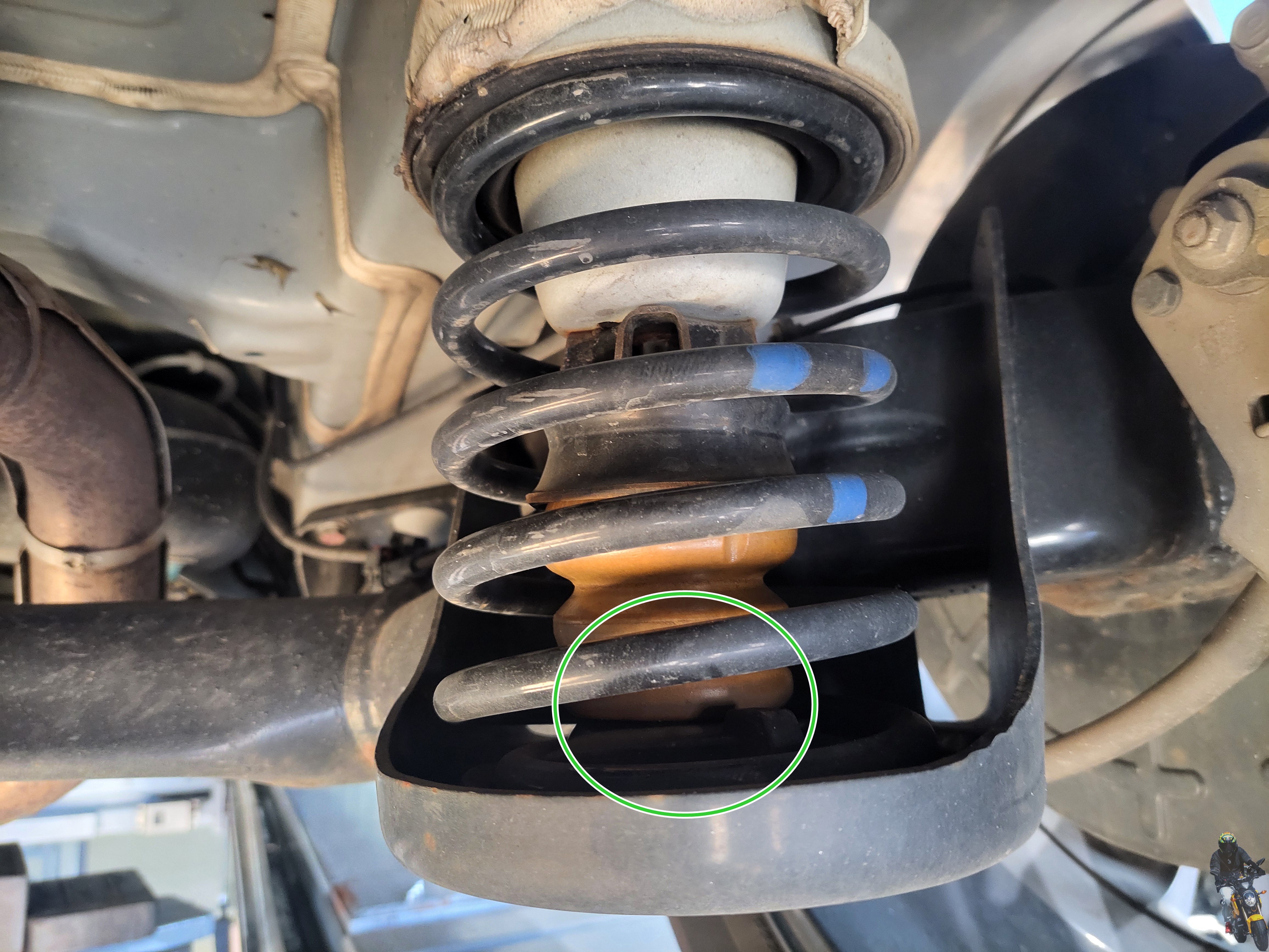 티볼리에어 차량의 리어 순정스프링과 범프스토퍼의 모습입니다