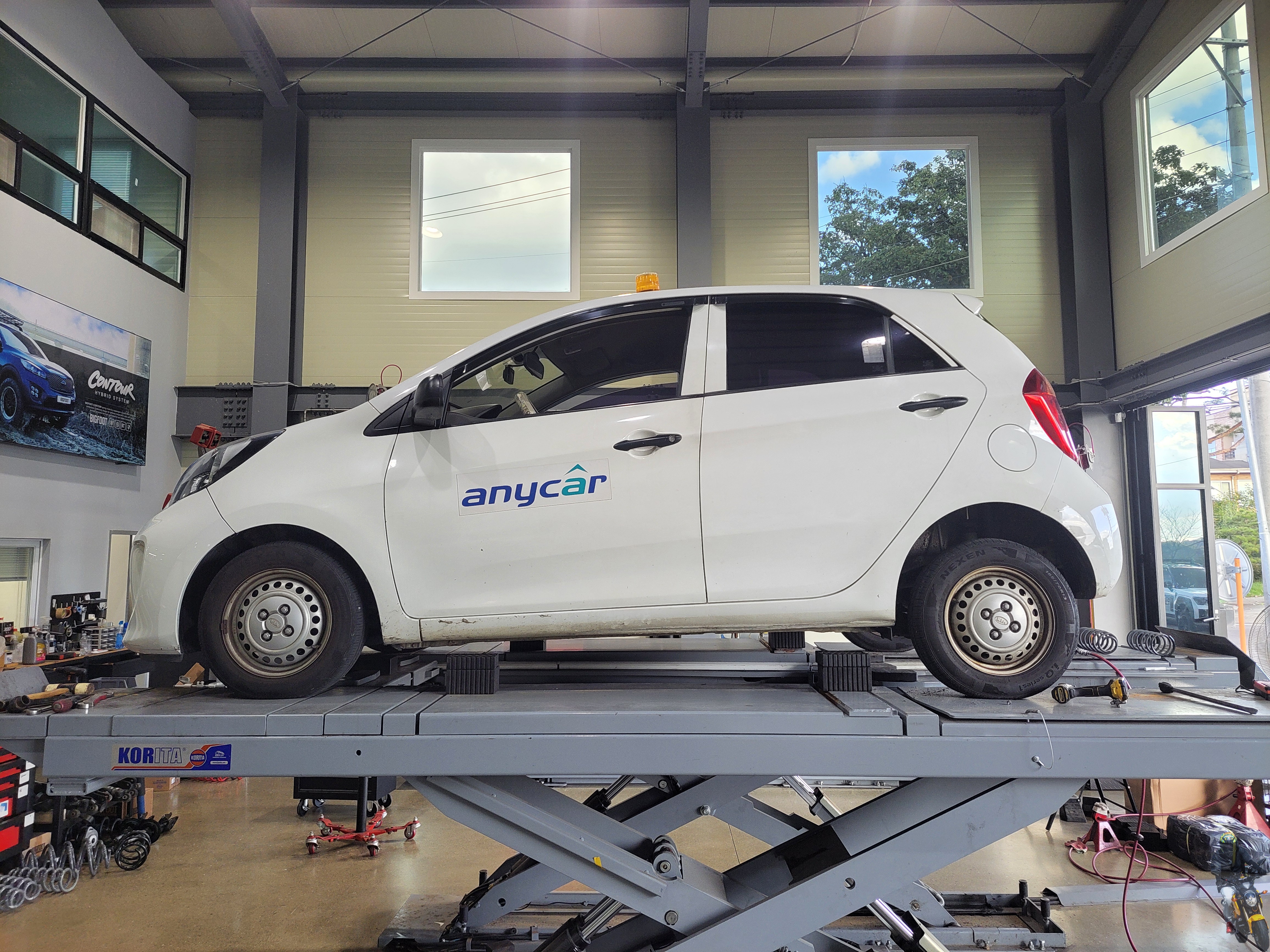 기아자동차 올뉴모닝 보험 긴급 출동 차량의 리어 서스펜션