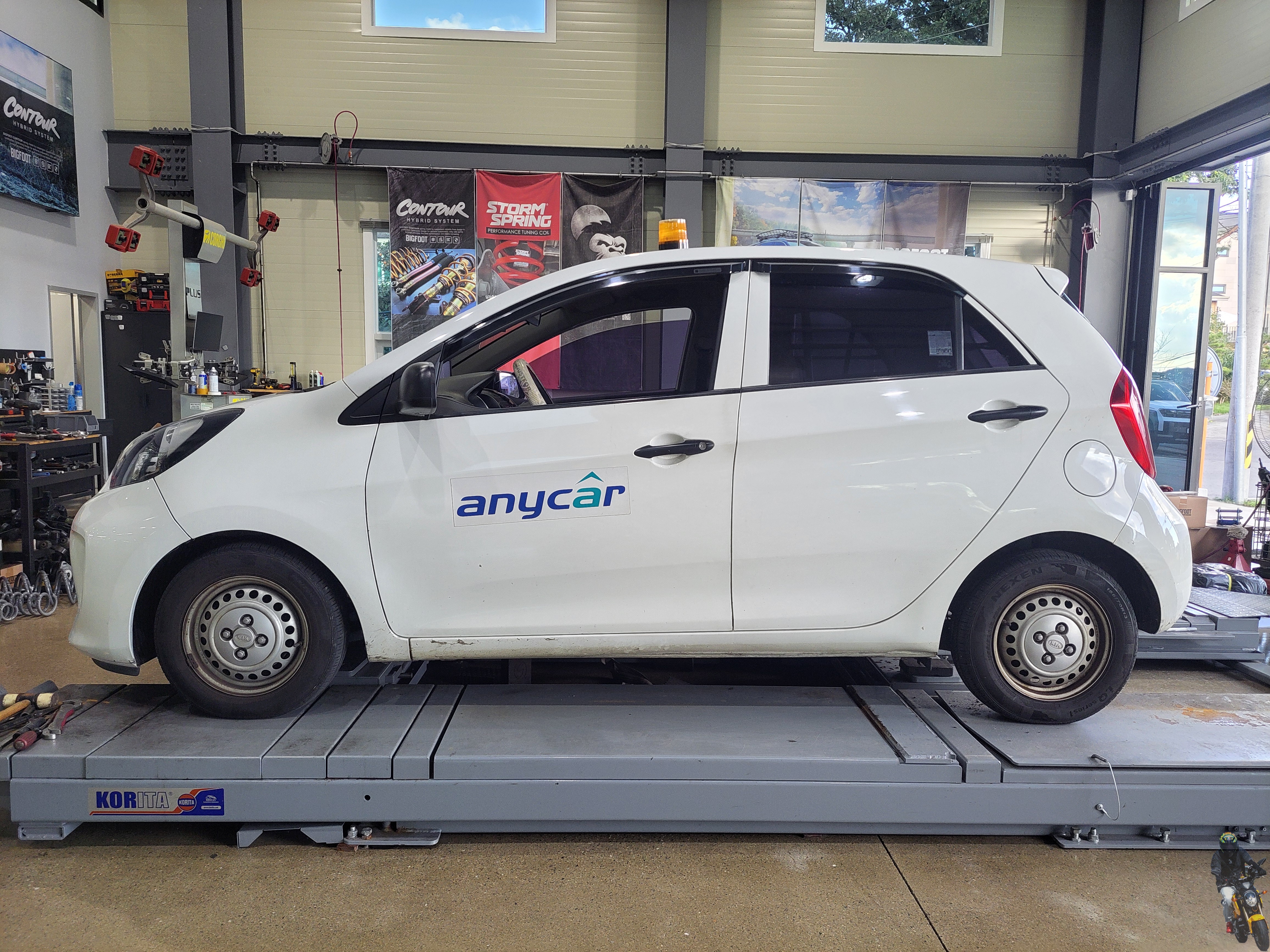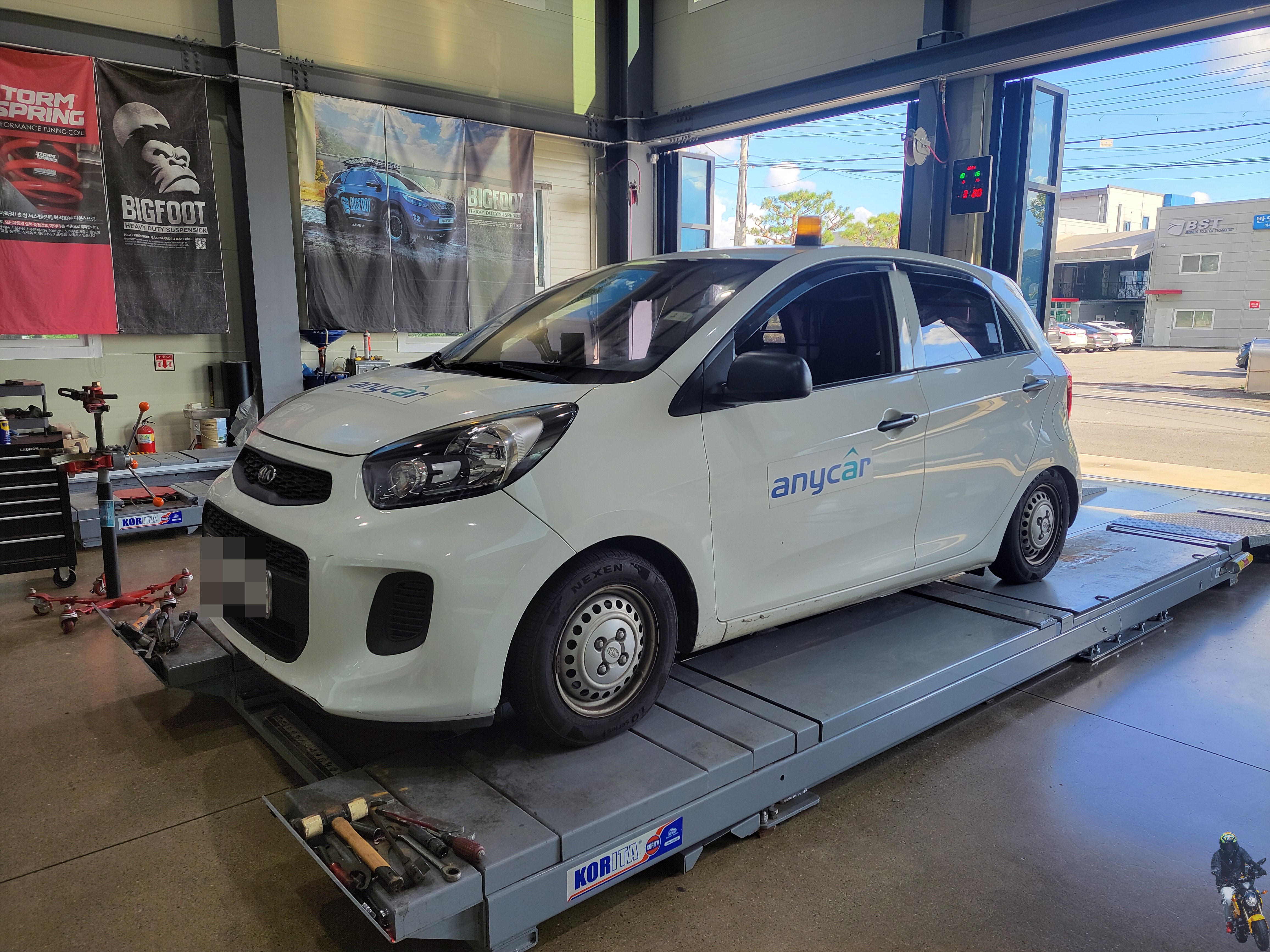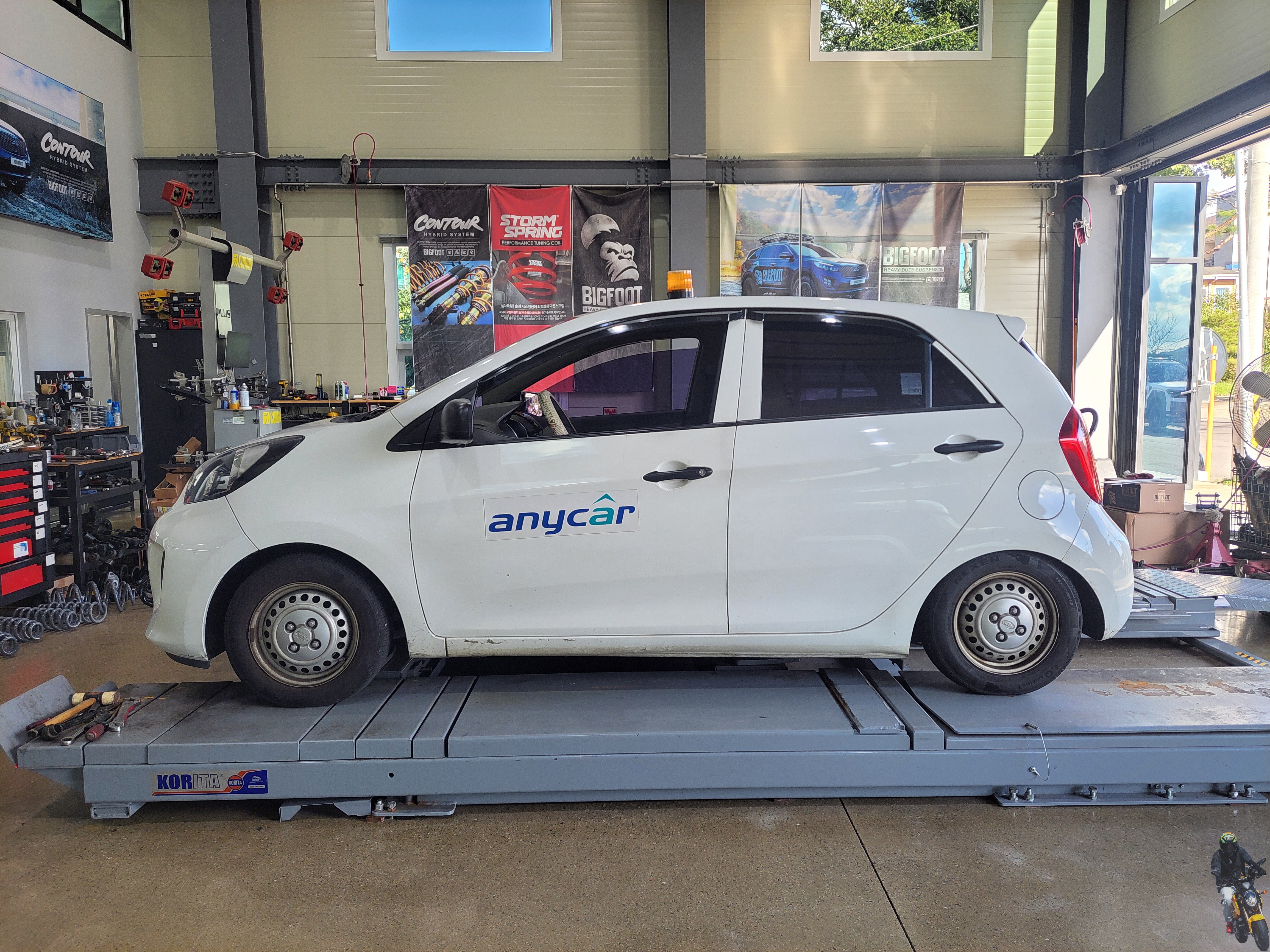 올뉴모닝 차량에 빅풋스프링을 다시 장착하고 있습니다