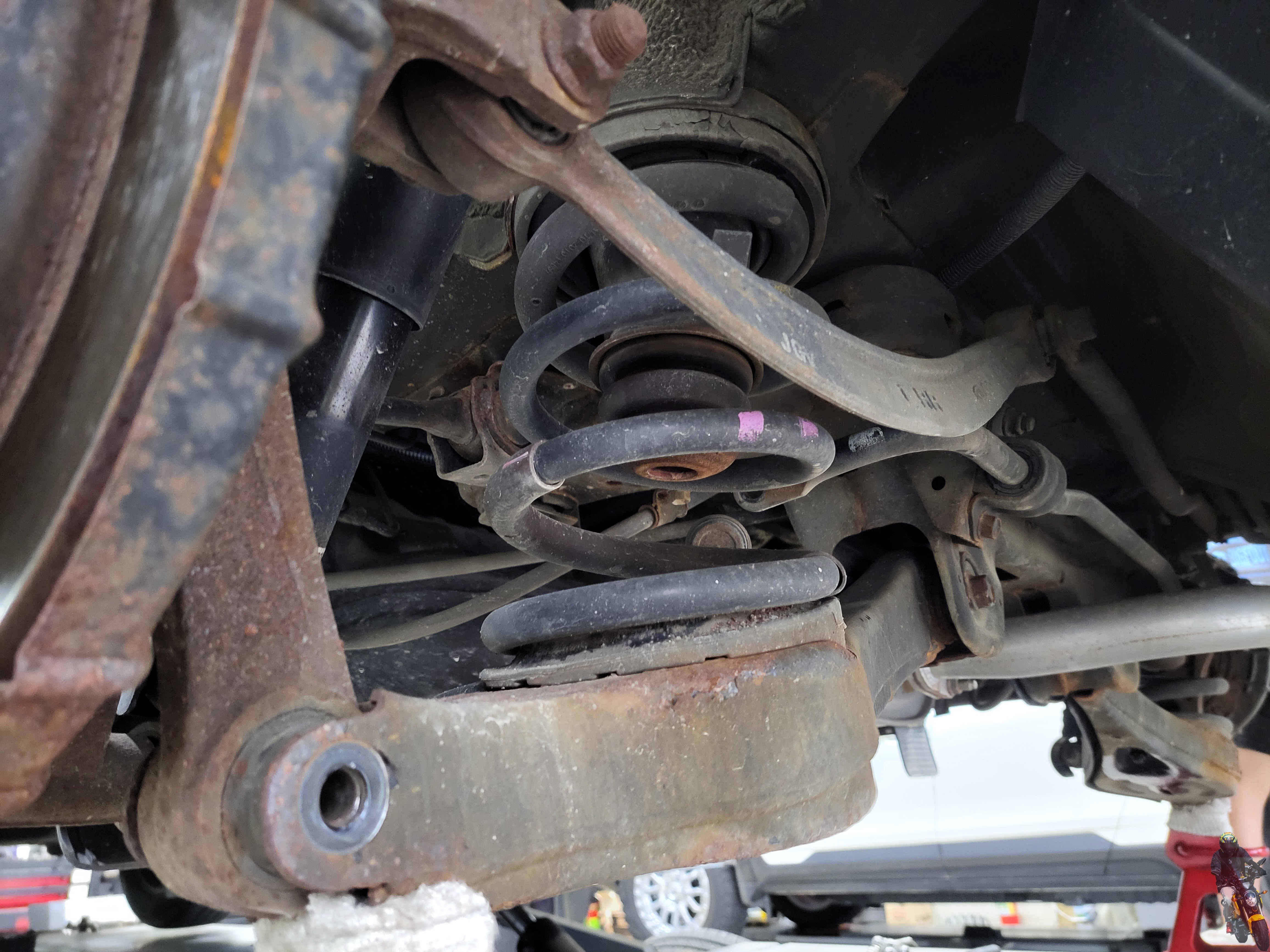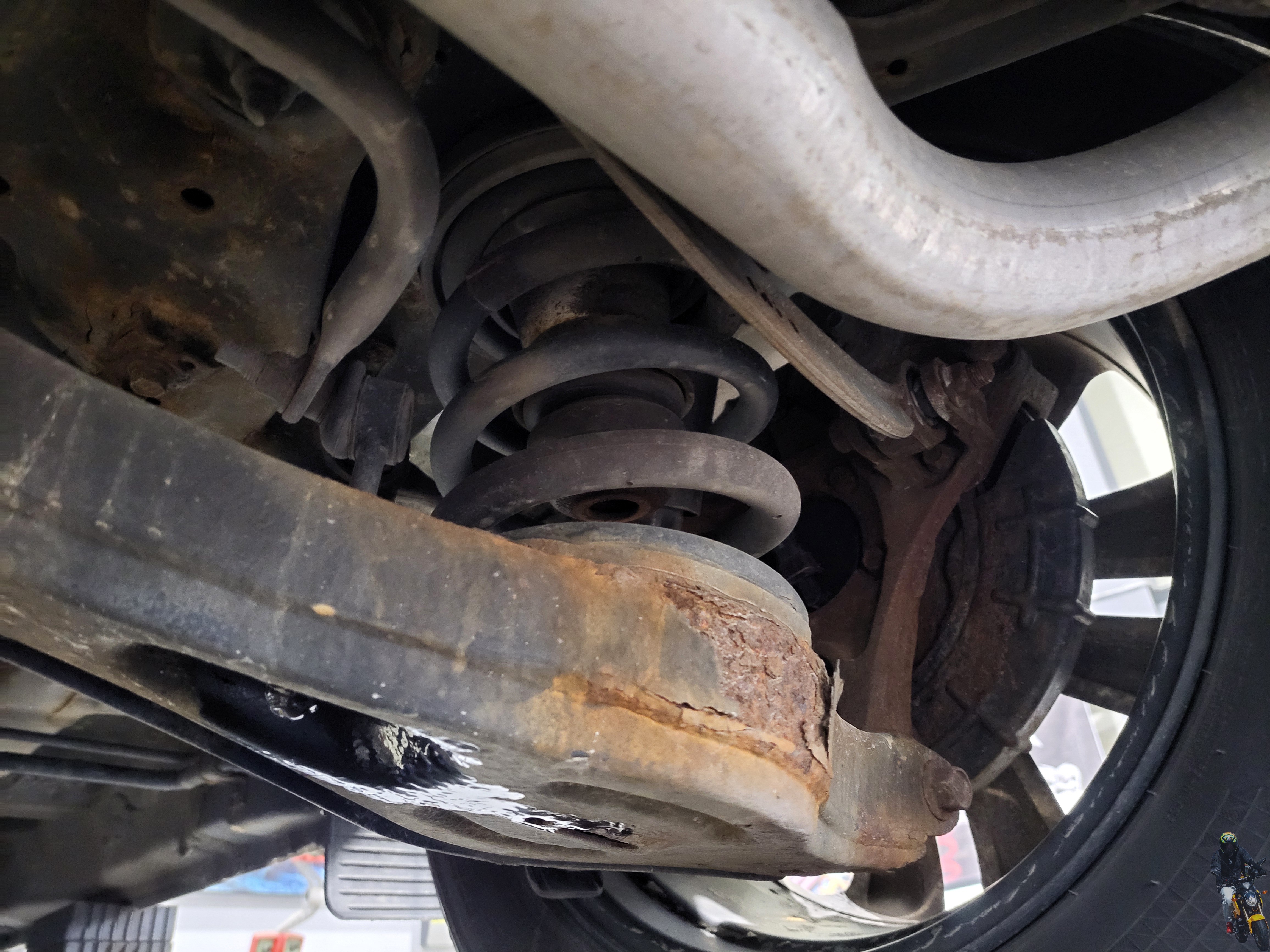 조수석리어 로우암의 모습입니다 현재차량은 하체 부품들의