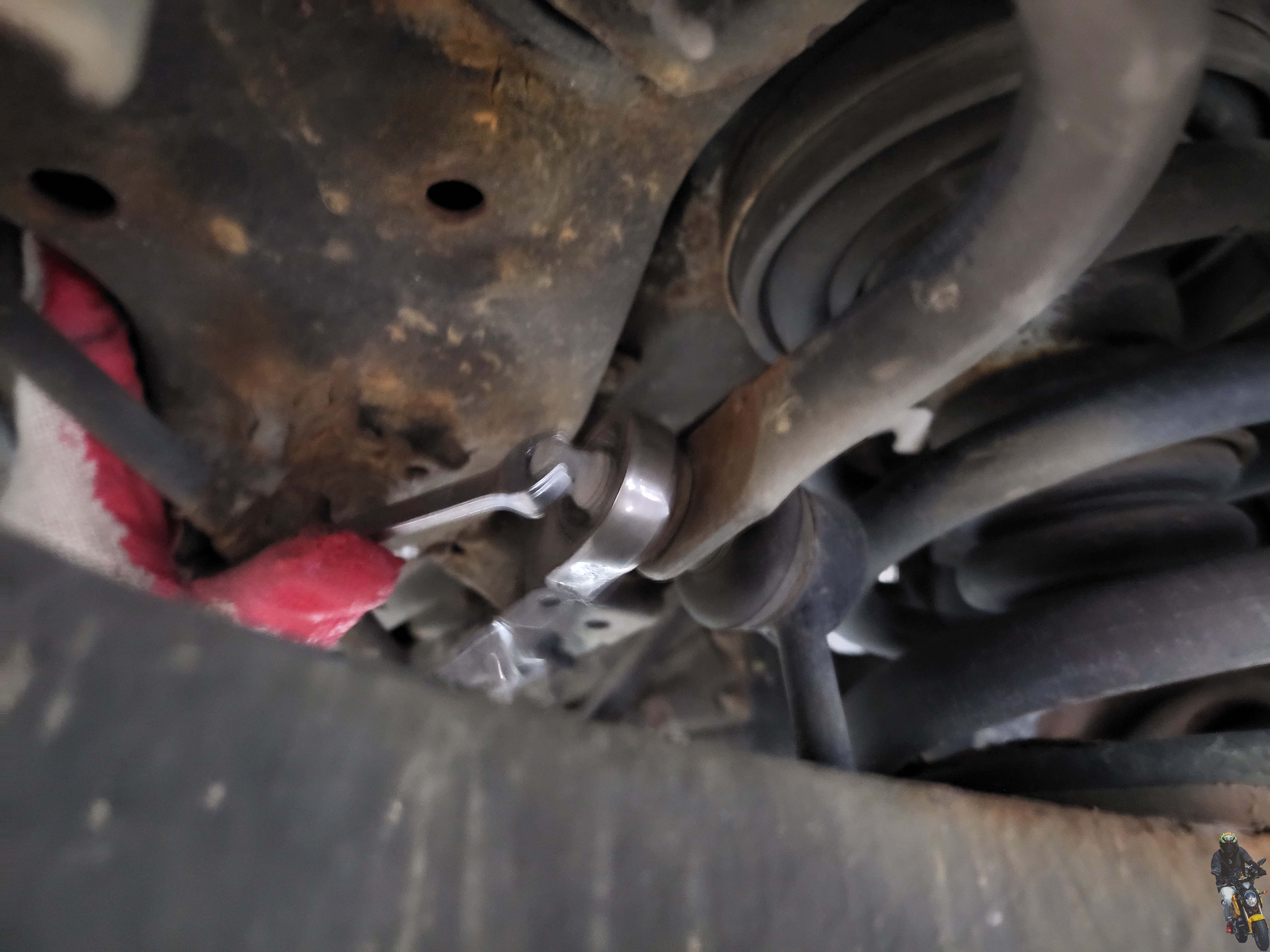 8mm 스패너로 링크를 잡고 17mm 스패너로 너트를