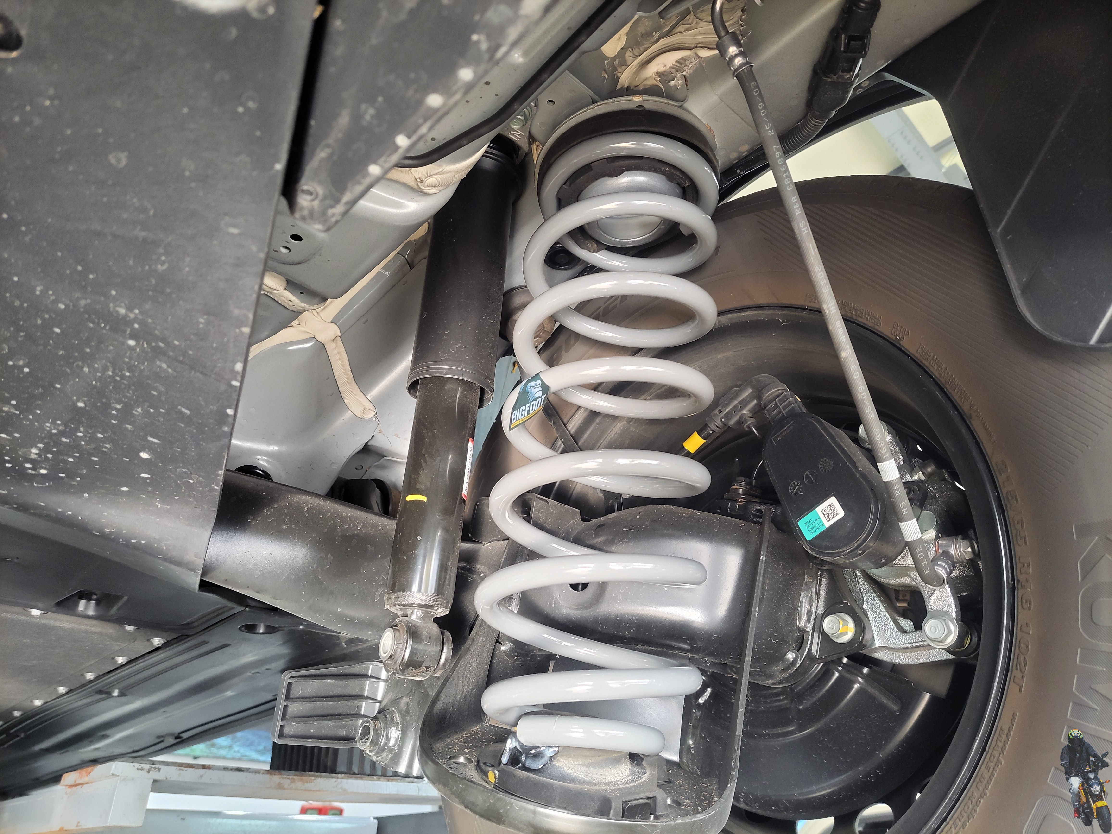 압축한 빅풋스프링을 차량에 장착하고 있습니다