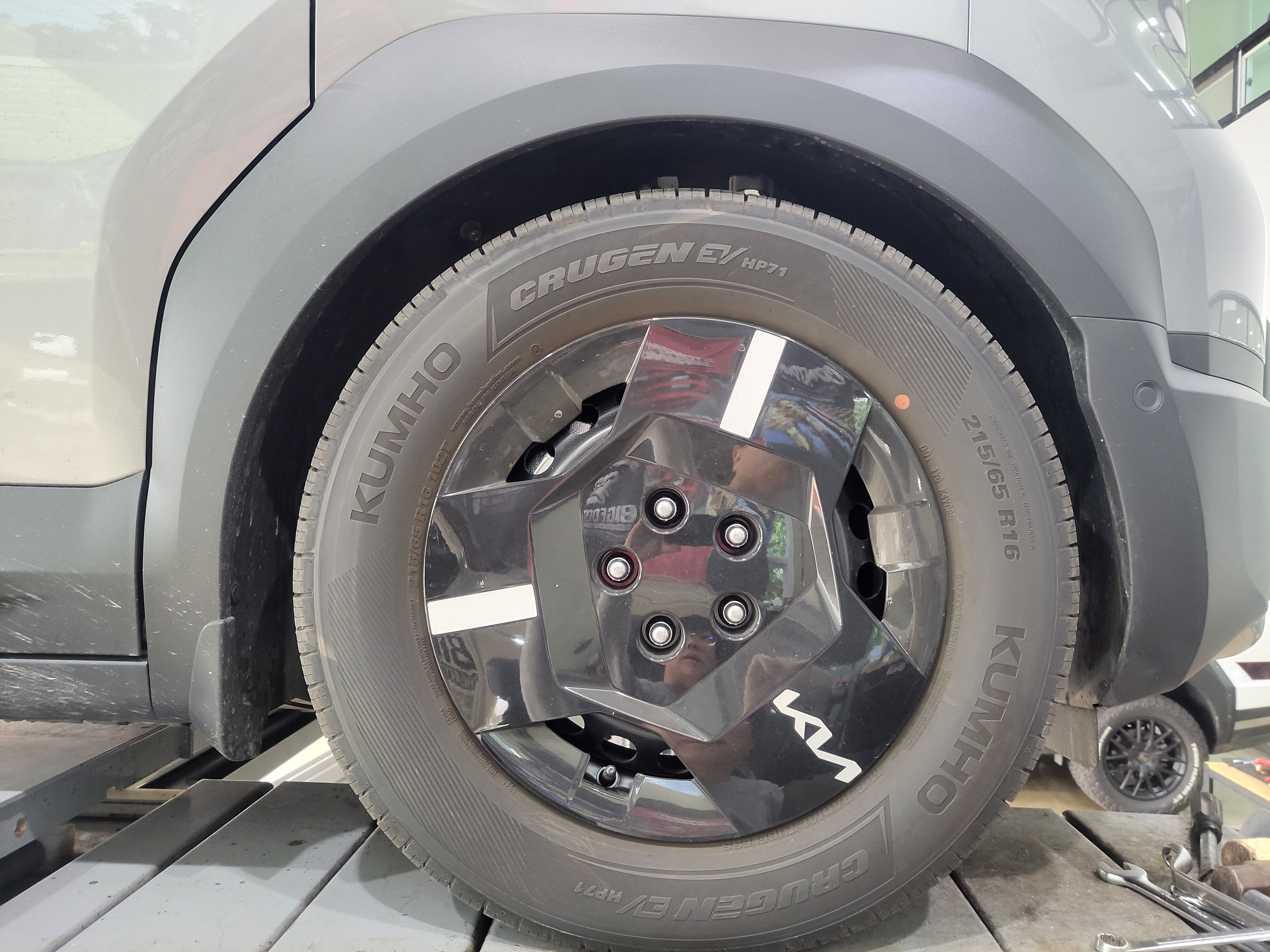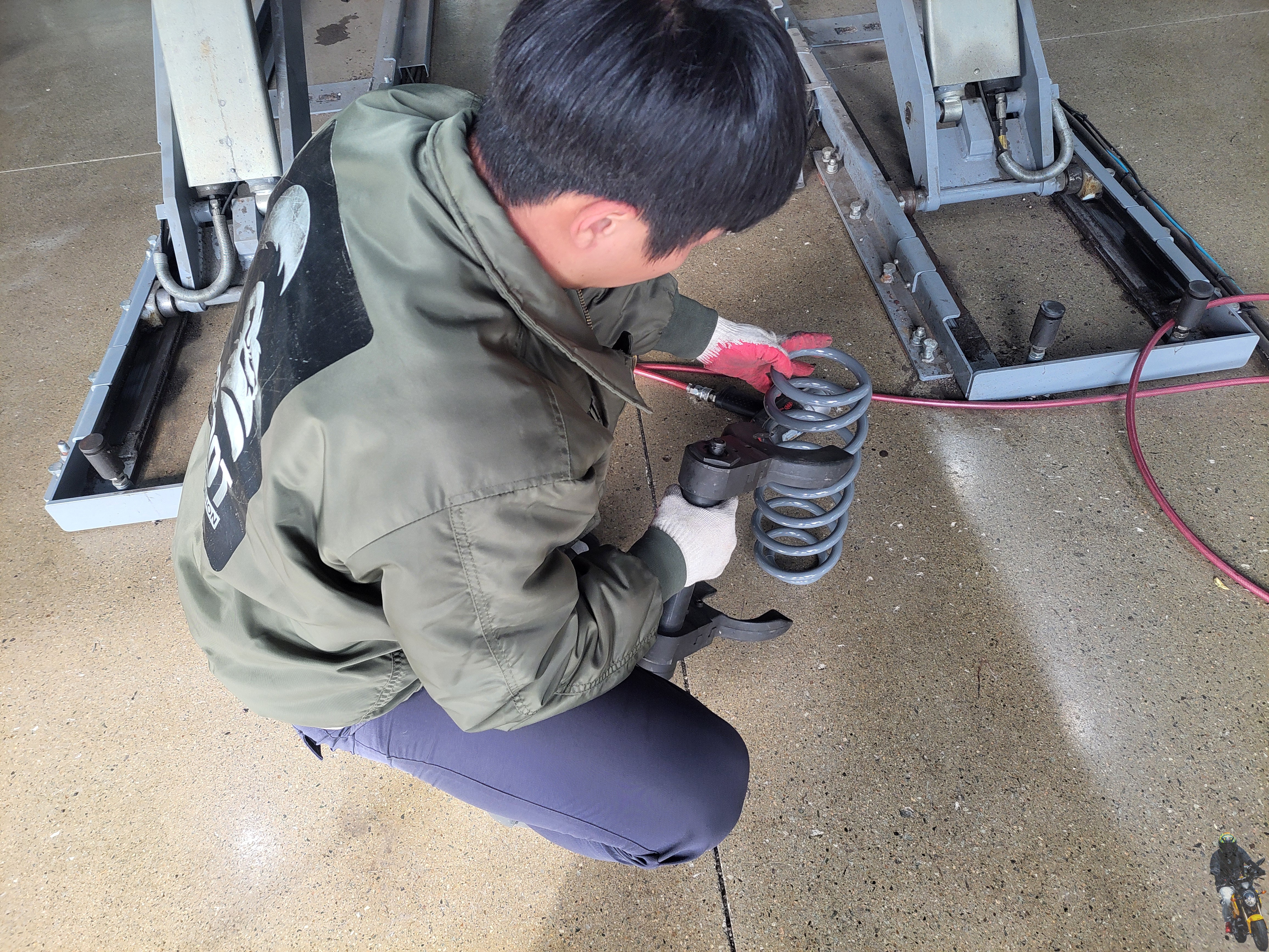 현재 상태는 모든 장착을 마치고 타이어가 지면에 내려와 있는 상태입니다
