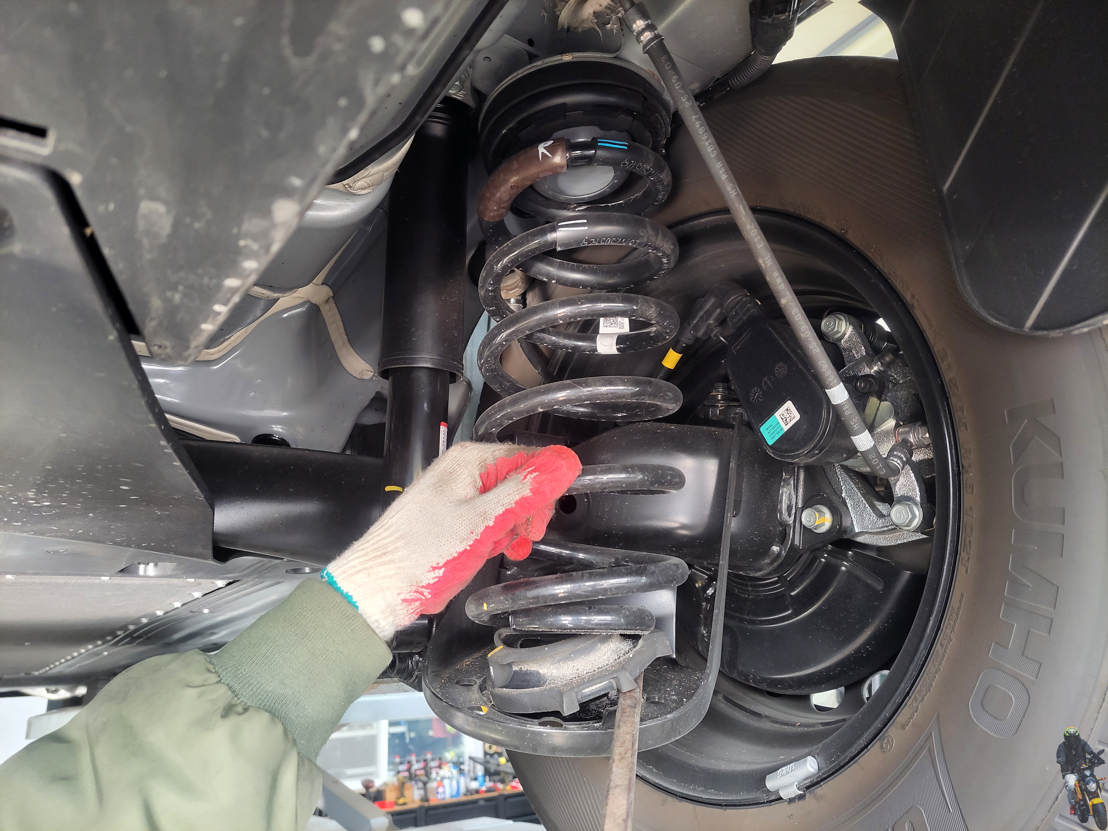 위 사진에서 보면 차량을 리프트에 올려놓고 순정스프링 상태에서의