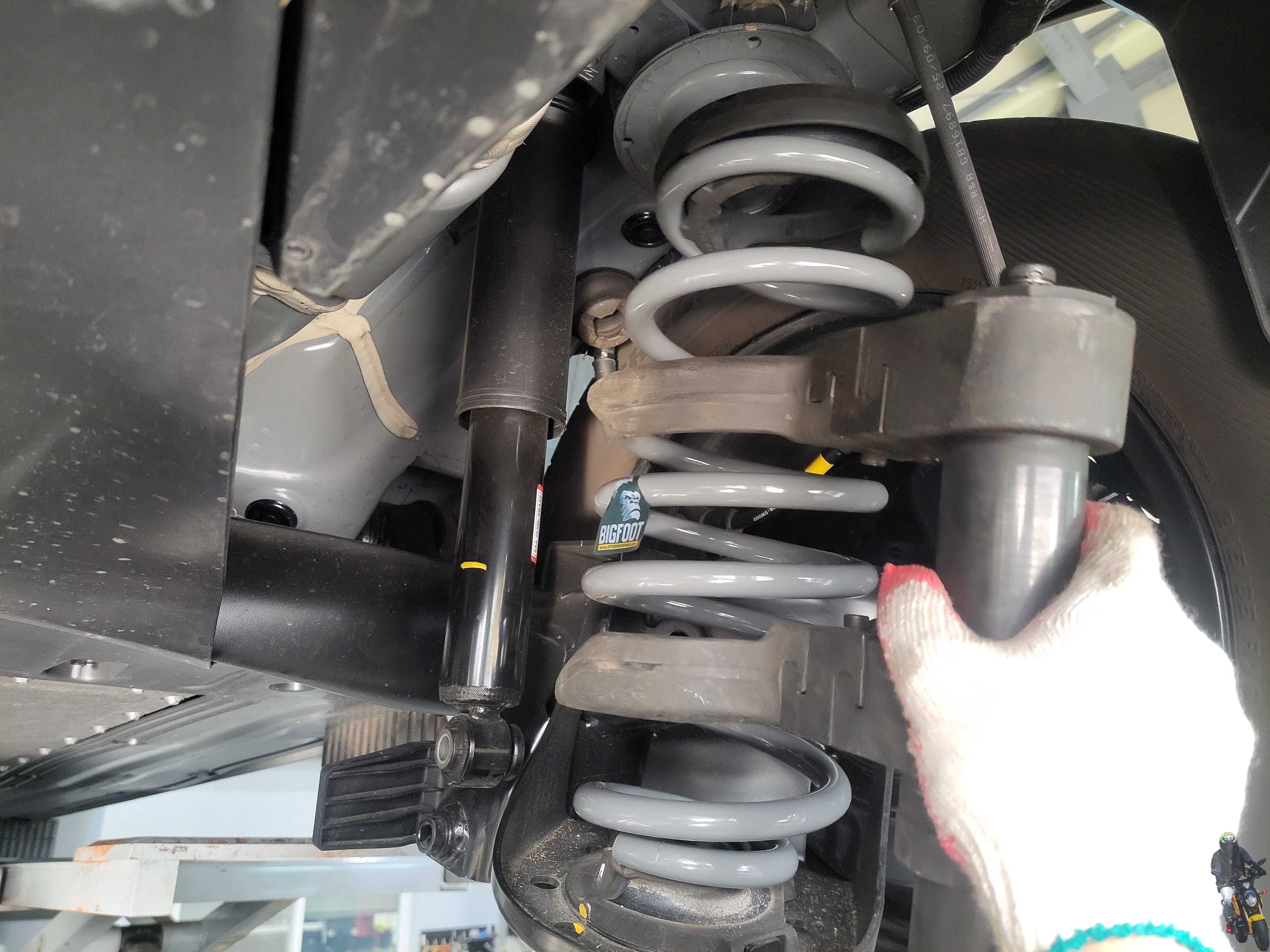 빅풋스프링을 좌우 모두 장착을 하였고 쇼바 하단 고정부까지