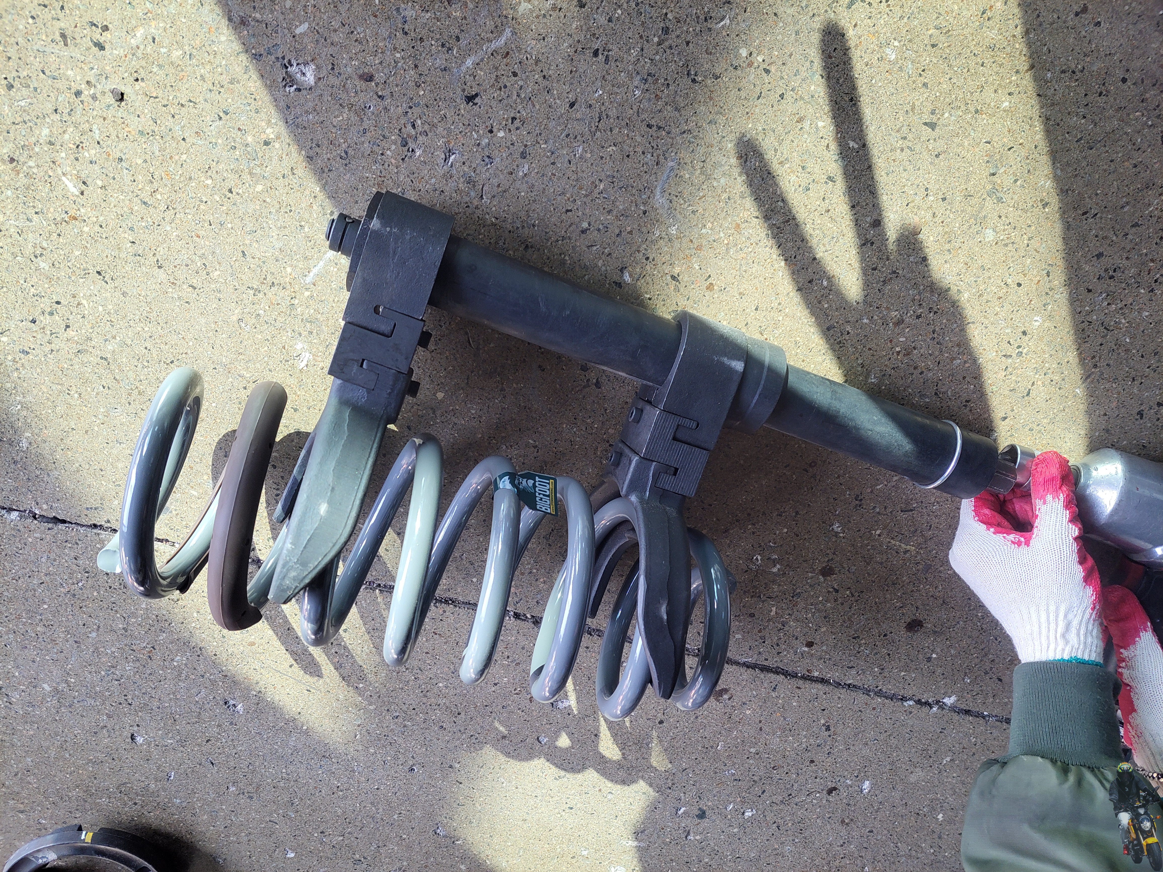 빅풋스프링을 장착하고 있습니다 이렇게 스프링 압축장비가