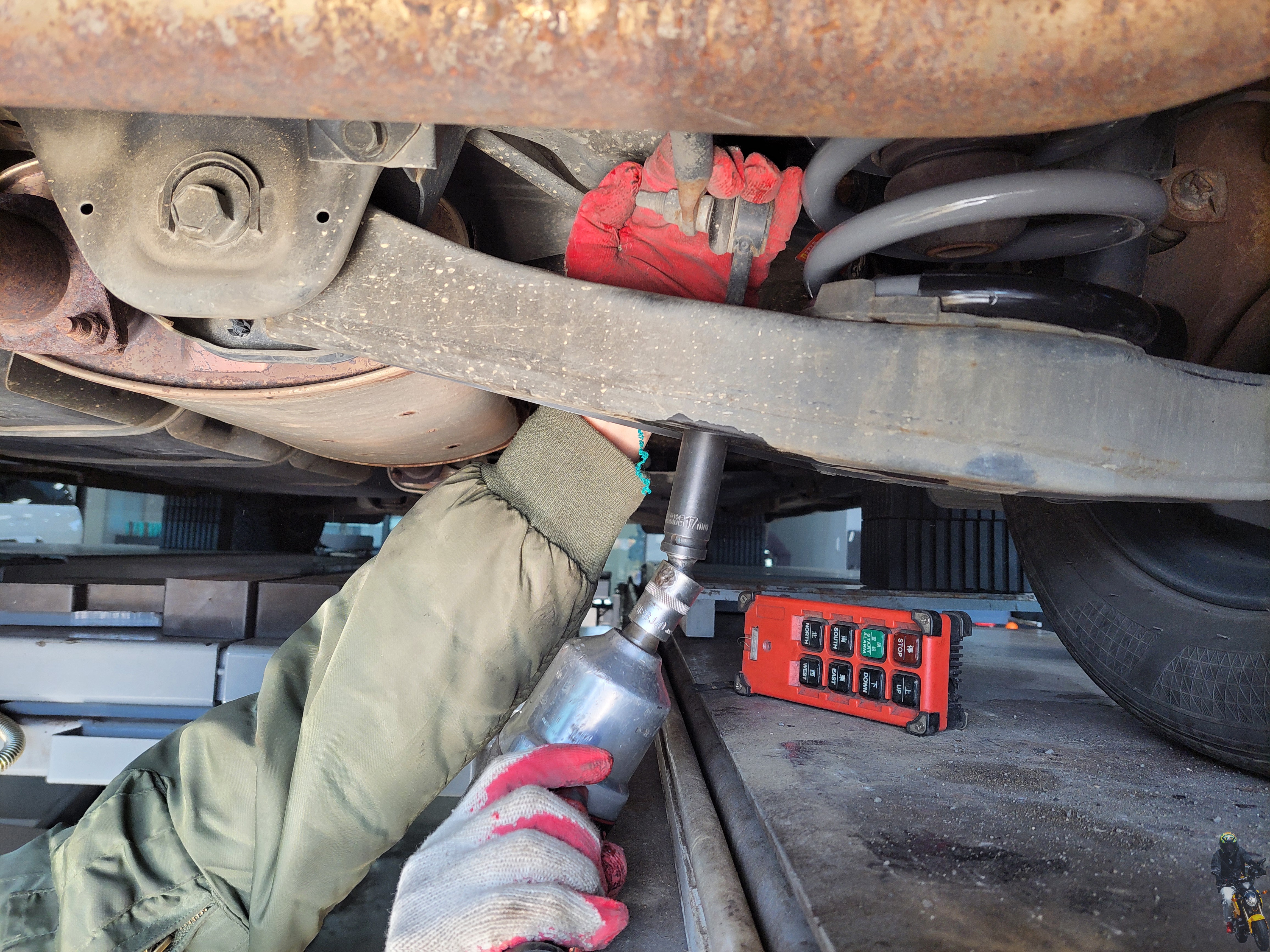 스테빌라이저 링크를 조이고 있습니다 너트는 17mm입니다