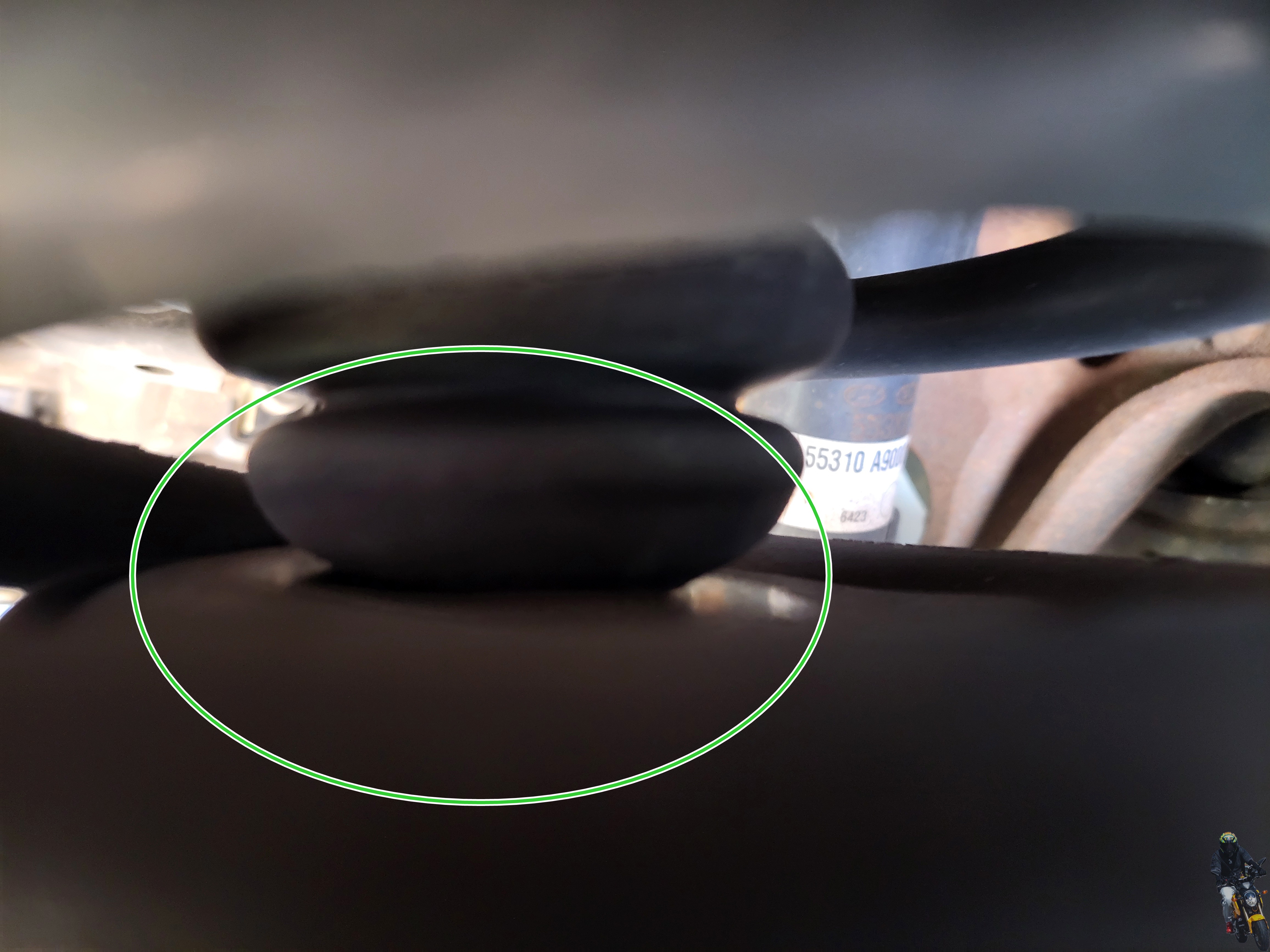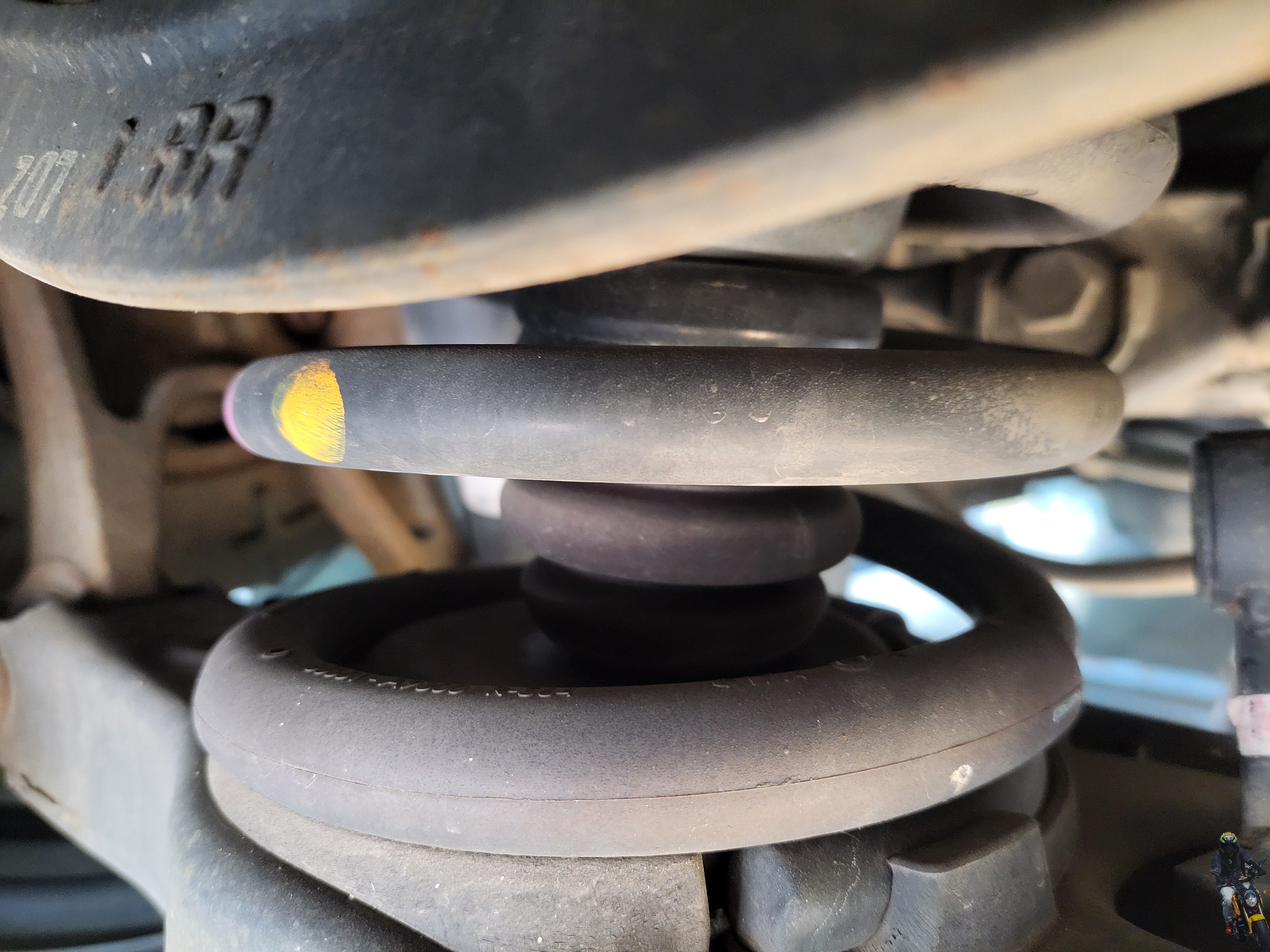 스프링 안쪽의 범프스토퍼를 보게 되면 현재 로우암과 맞닿아 있습니다