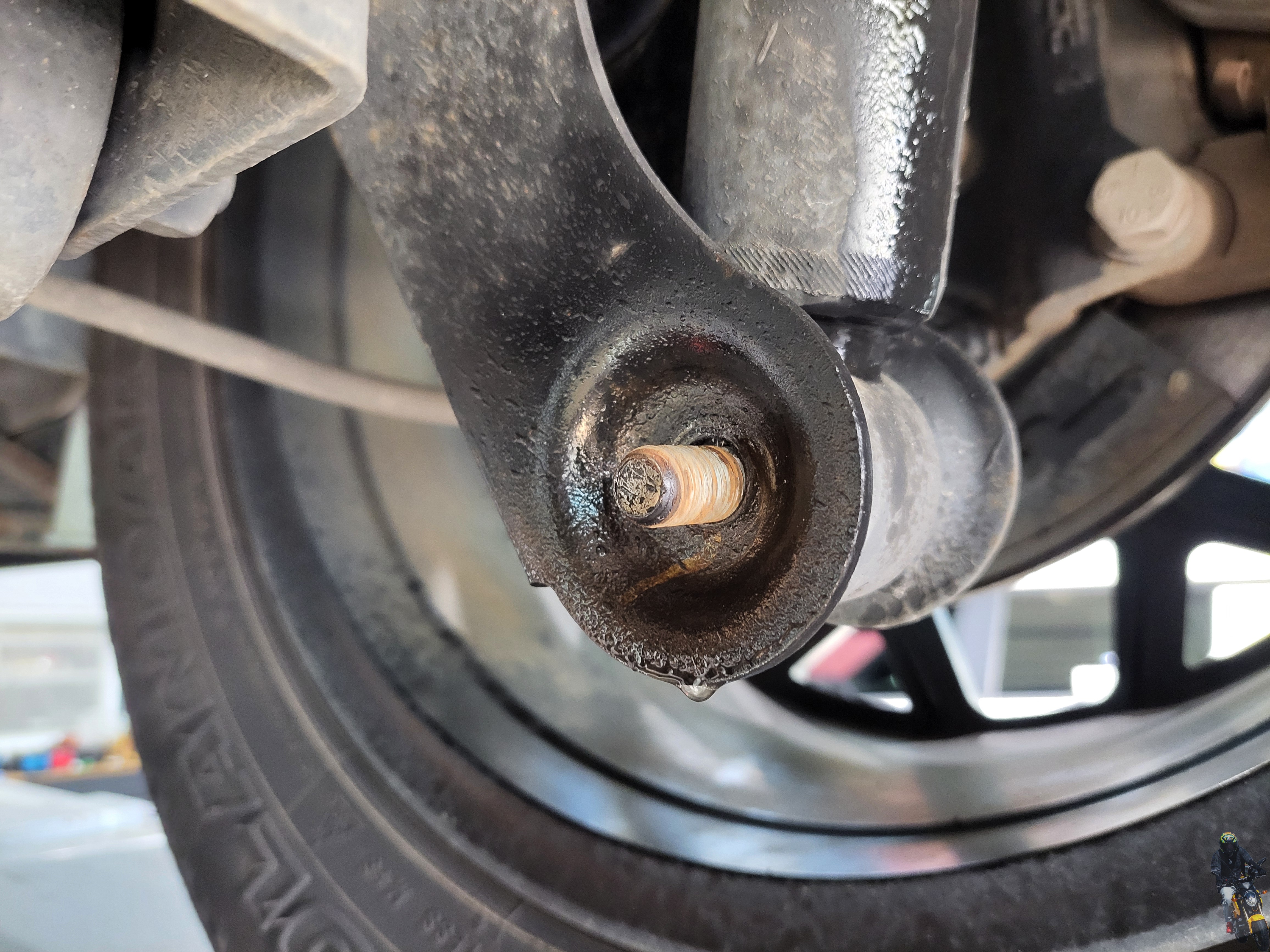 차량의 어퍼암과 너클의 연결부를 탈거하였습니다