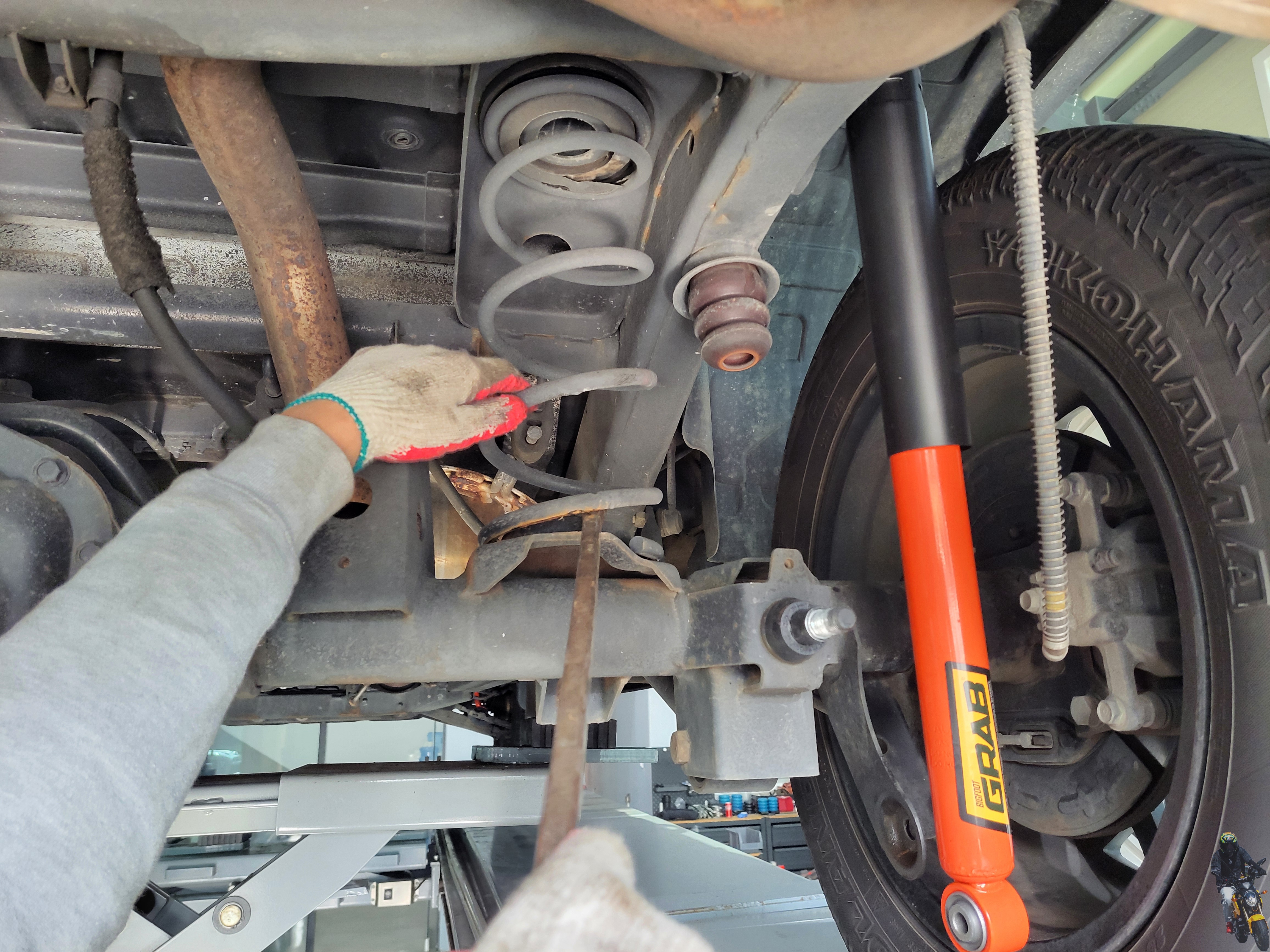 쌍용 KGM 렉스턴스포츠 차량의 쇼바스프링을 교체하기위해