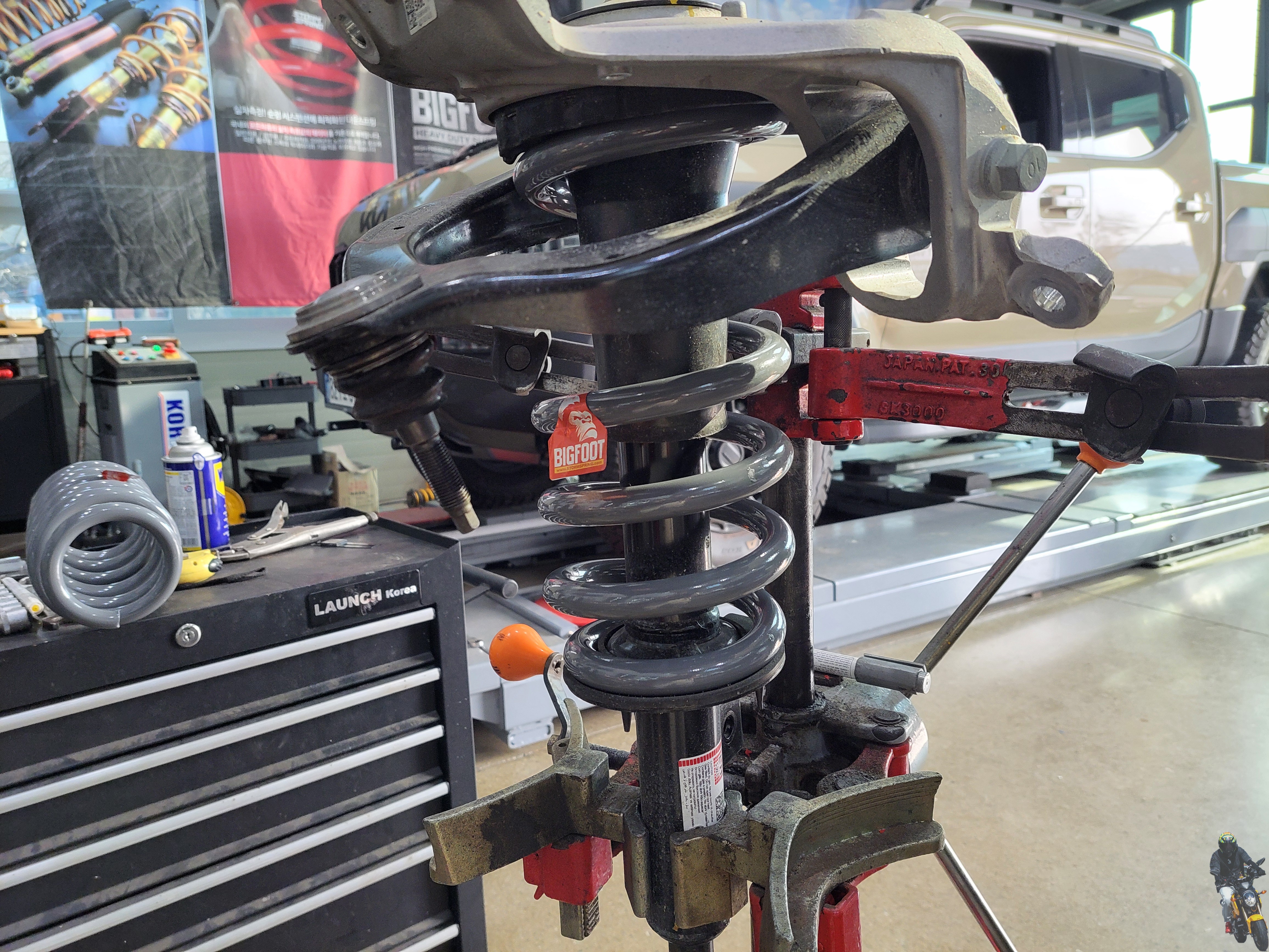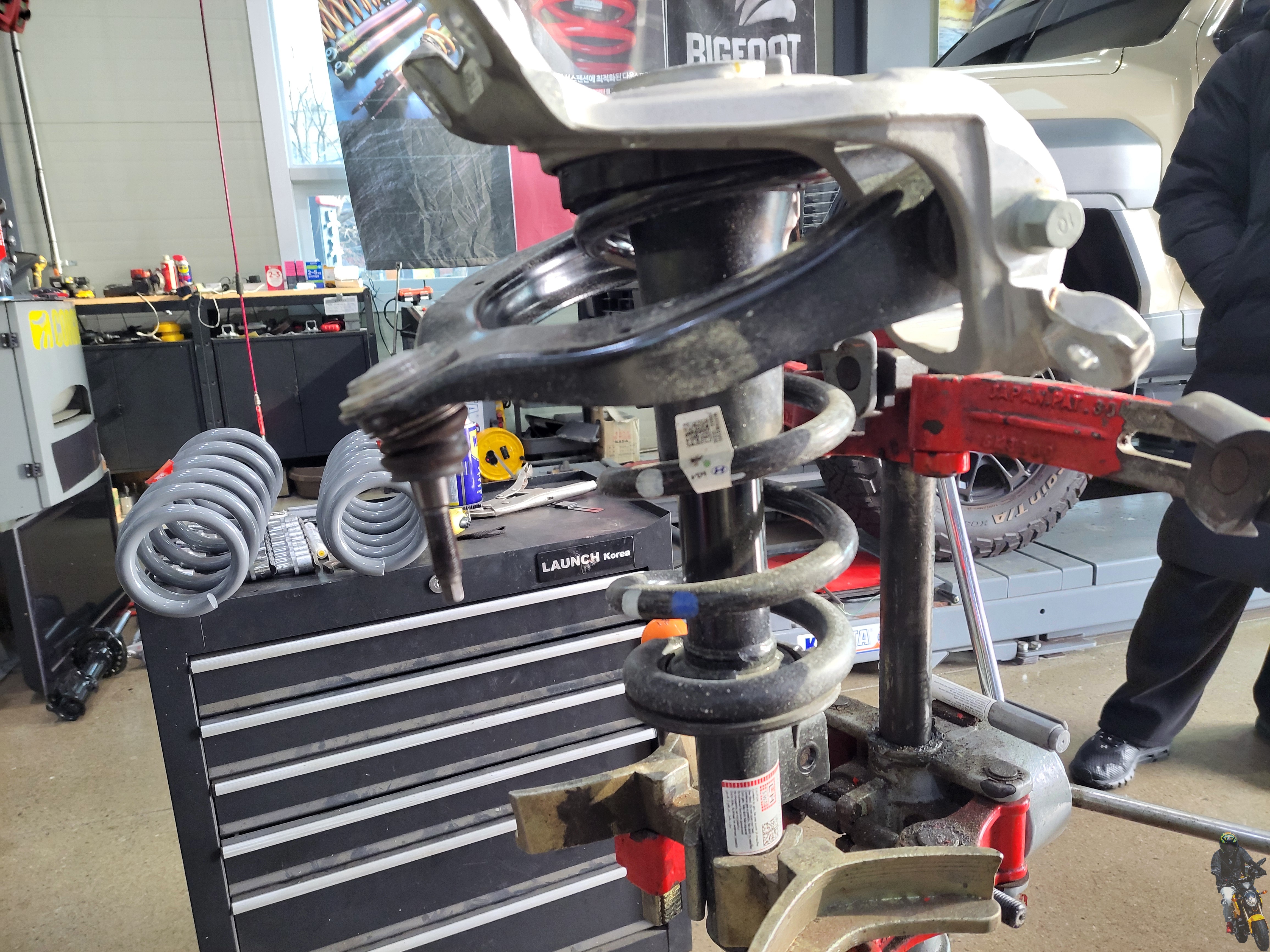 탈거한 프런트 순정쇼바를 스프링 압축기에